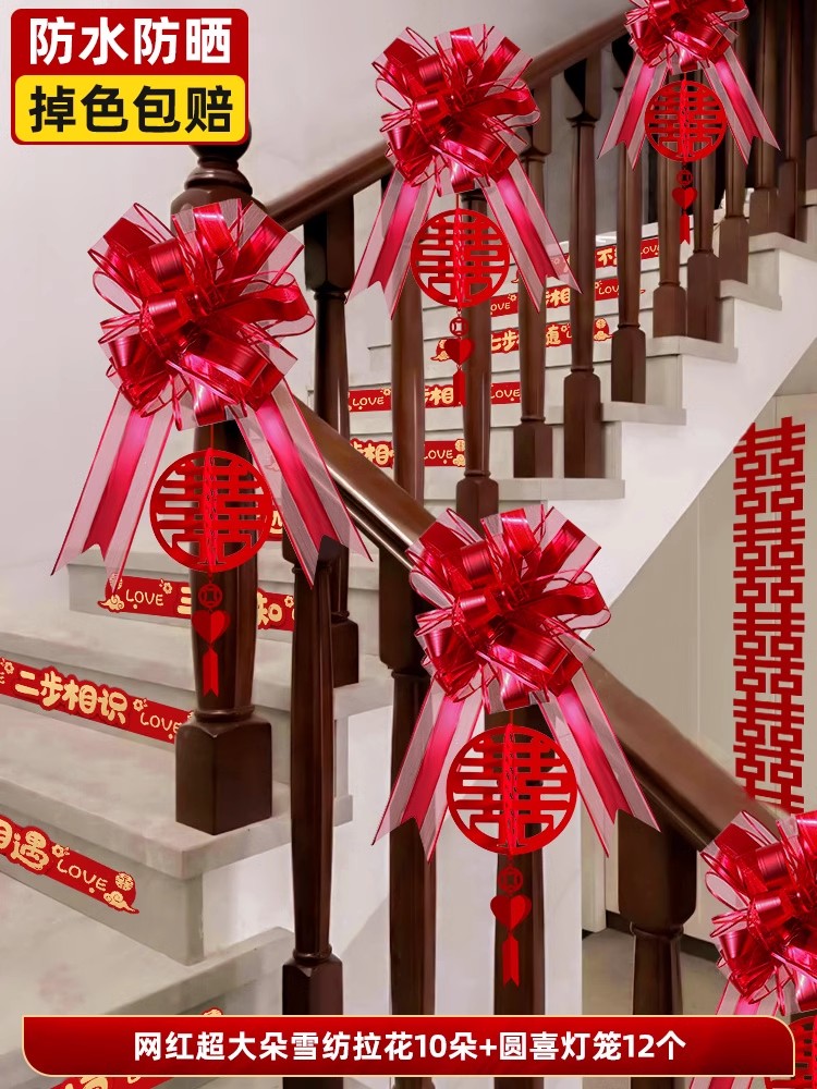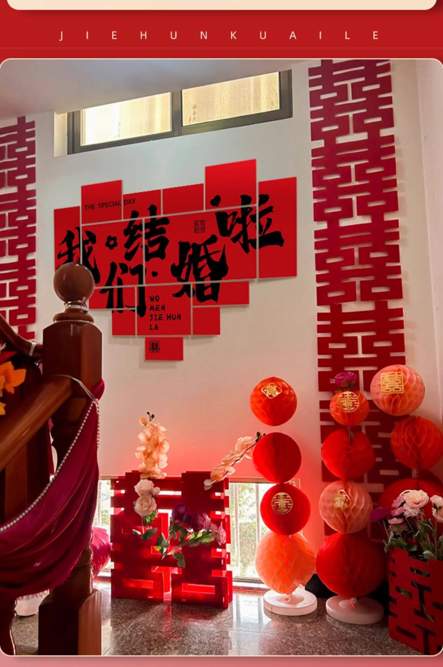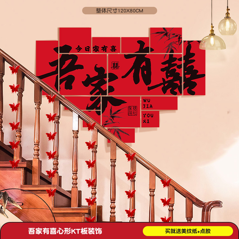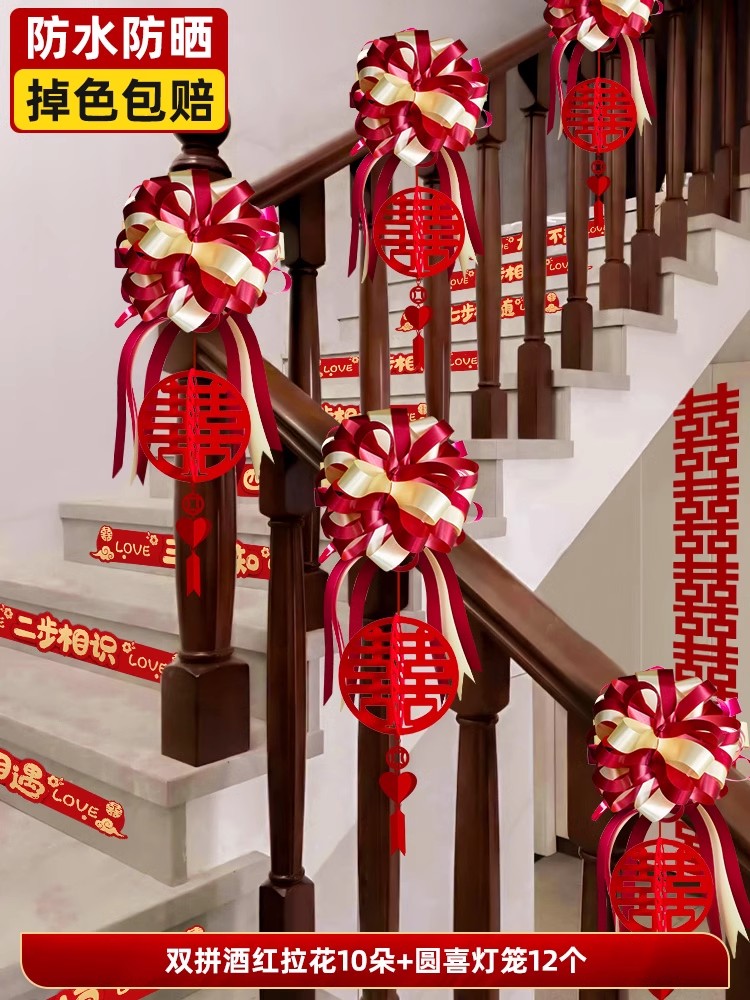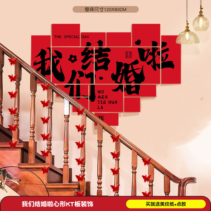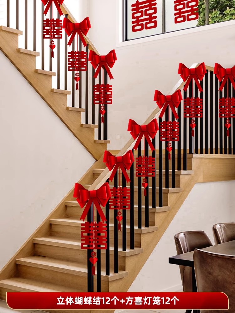 계단 장식 웨딩 장식 벽 코너 핸드레일 단계 남성과 여성을위한 해피 단어 스티커 새로운 웨딩 룸 원피스 배경 벽