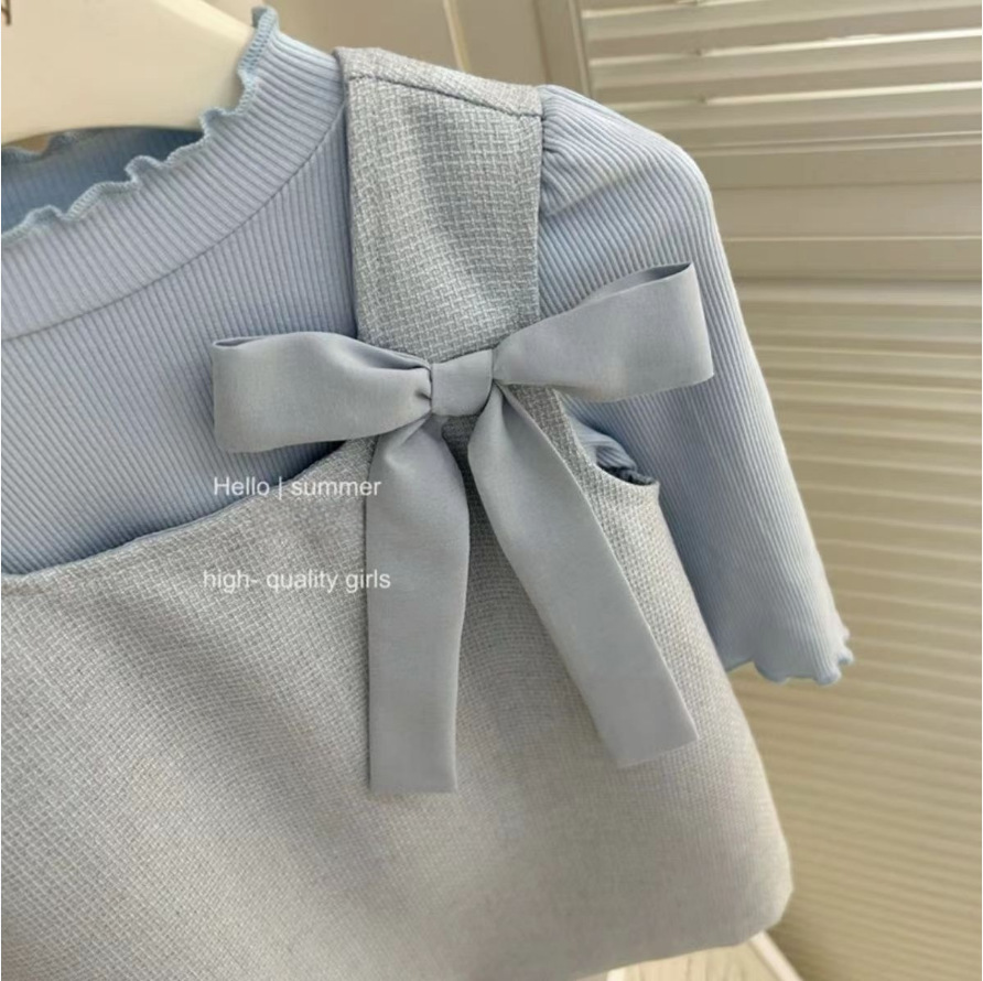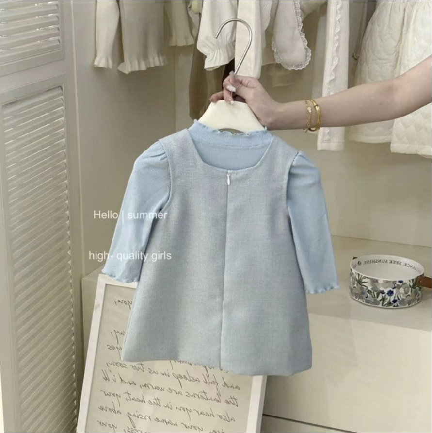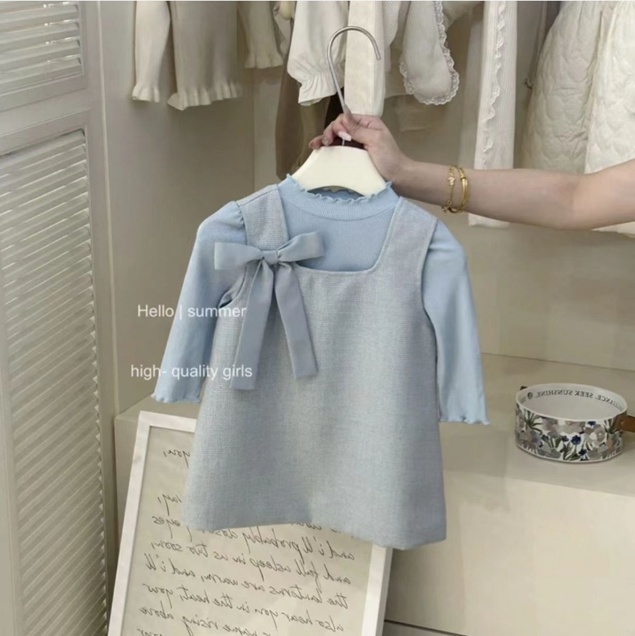 소녀 이른 가을 컬링베이스 활 조끼 원피스 2024 새로운 스타일 향기로운 스타일 아기 서양식 투피스 세트스토어 가기