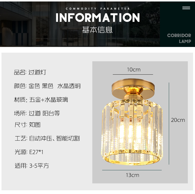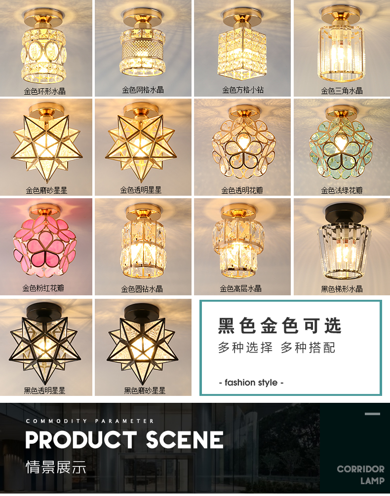 복도 랜턴 북유럽 현대 간단한 입구 발코니 램프 사이버 연예인 라이트 럭셔리 크리스탈 탑 흡수 일몰스토어 가기