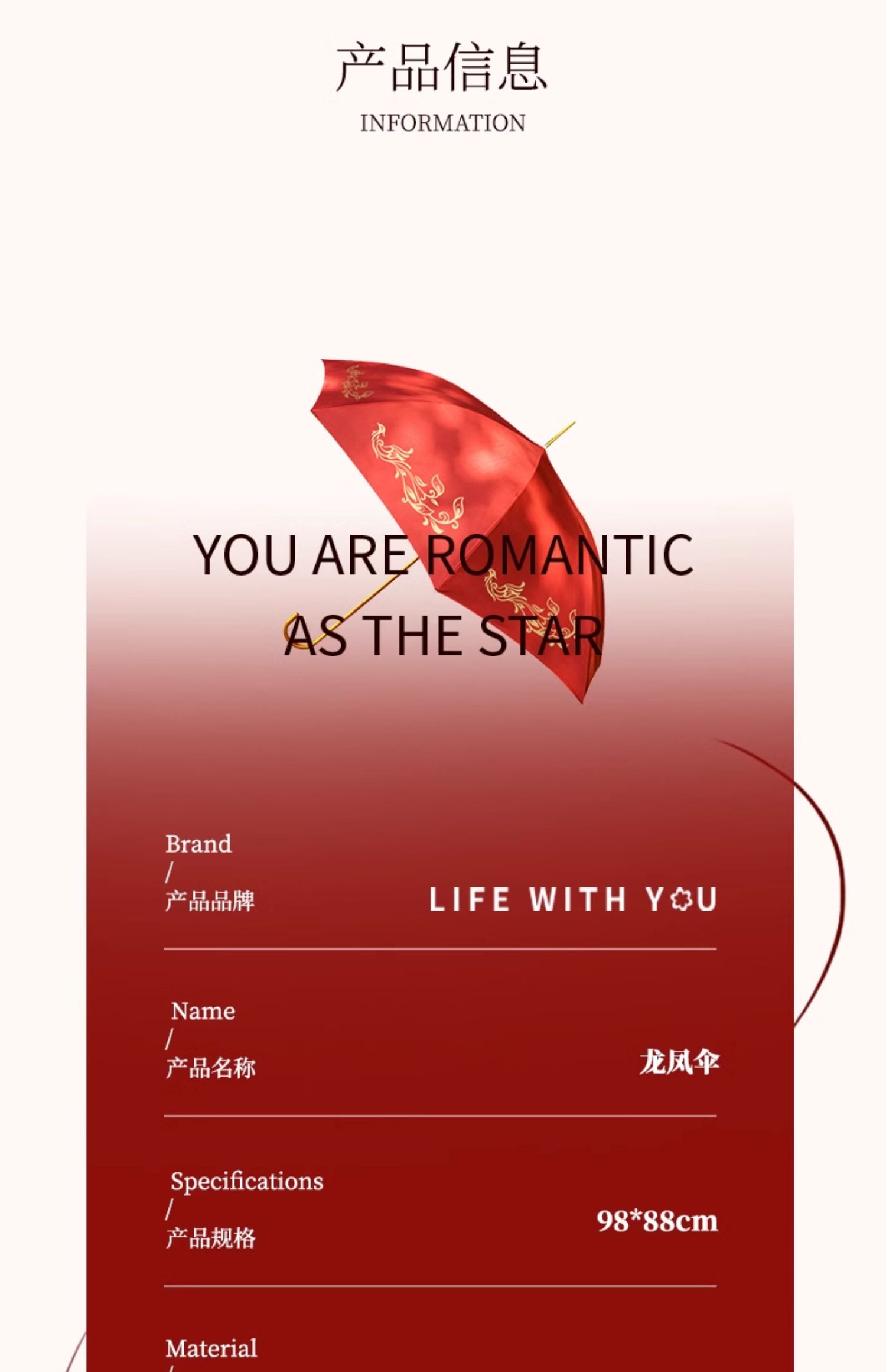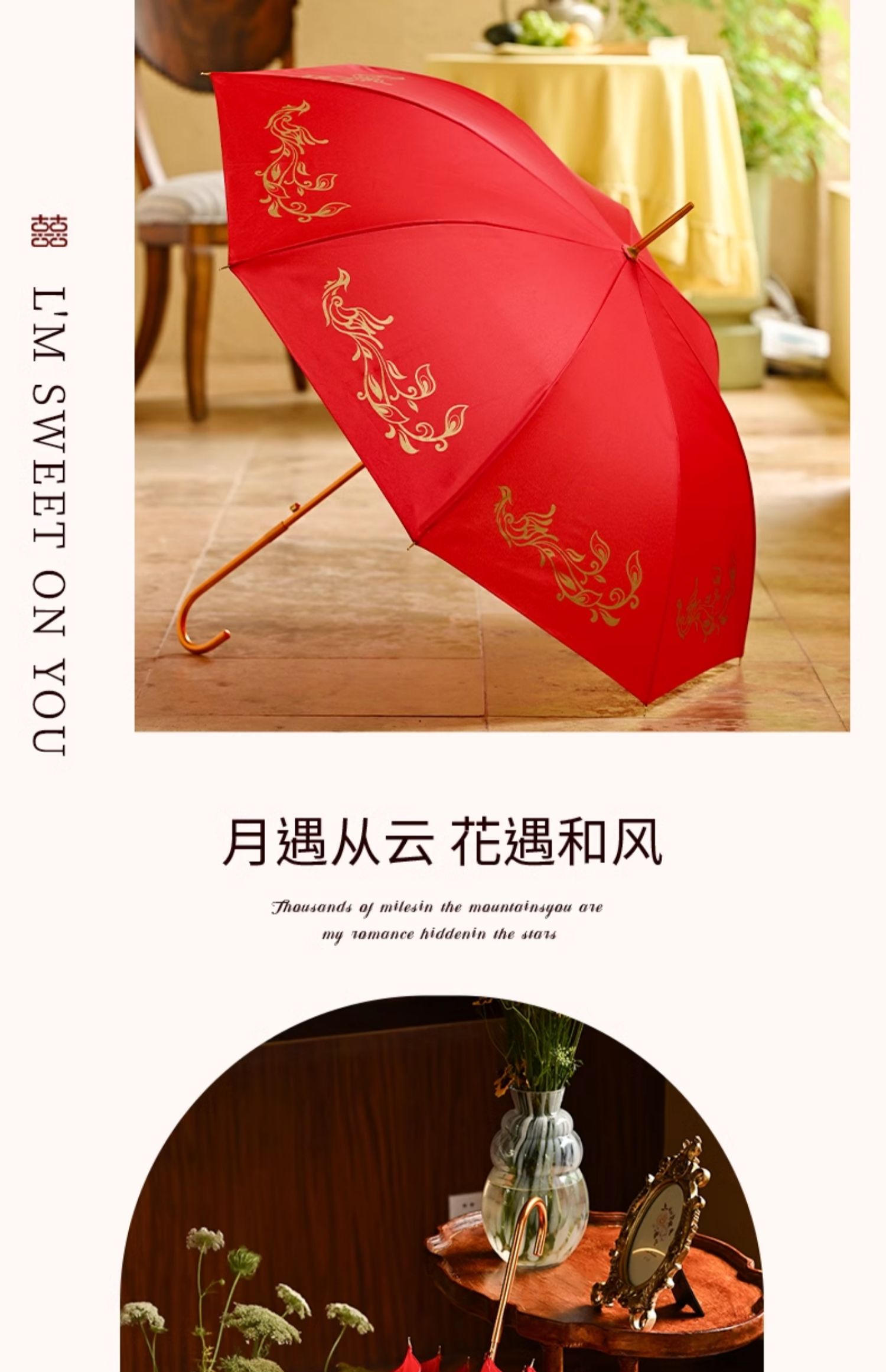 결혼식을위한 GJU8 우산 신부 우산 웨딩 신부 중국 결혼식 동반 우산 레드