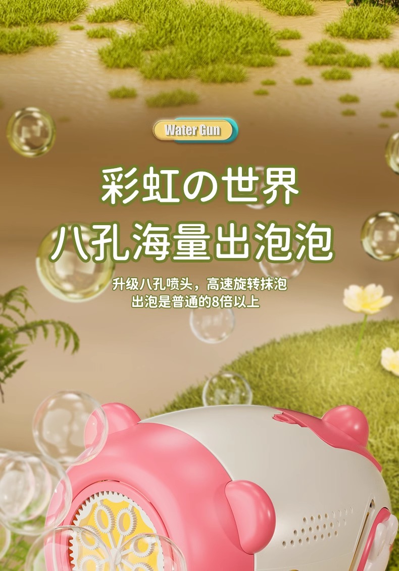 2025 새로운 폭발성 거품 기계 사이버 인기 어린이 휴대용 전기 거품 부는 총 스틱 개틀링 장난감스토어 가기