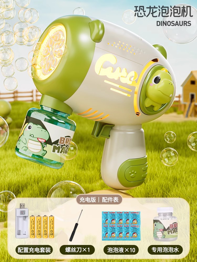 • 공룡 버블건 [충전식 배터리 버전] - 무료 드라이버 + 농축액 10팩 + 버블액 1병