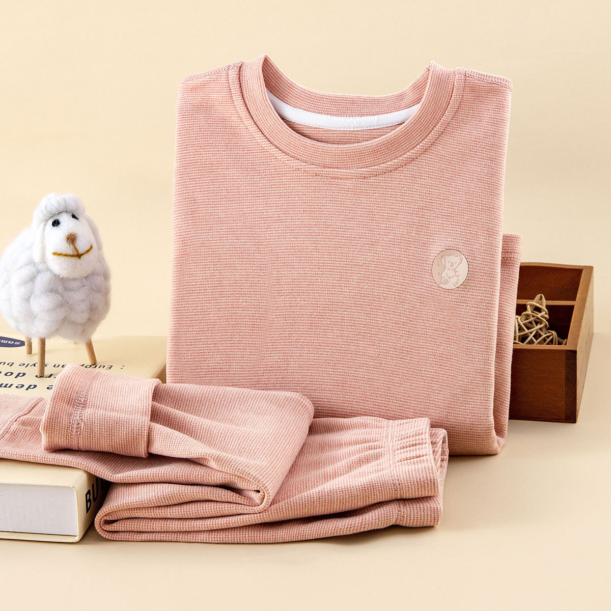 어린이 가을과 겨울 따뜻한 반 높이 칼라 긴팔 홈 의류 소년 소녀 2024 기본 줄무늬 아기 잠옷 세트스토어 가기