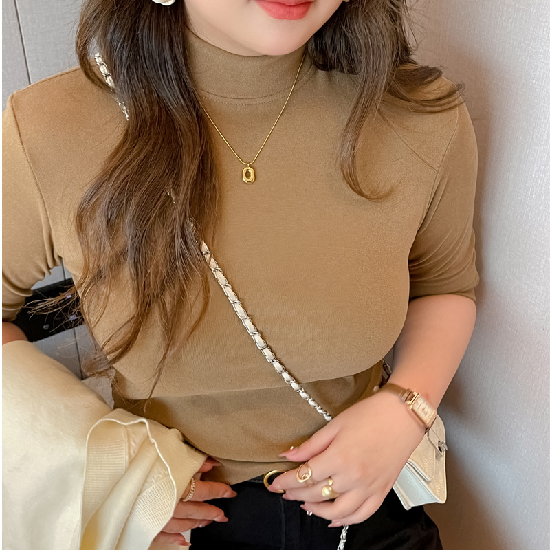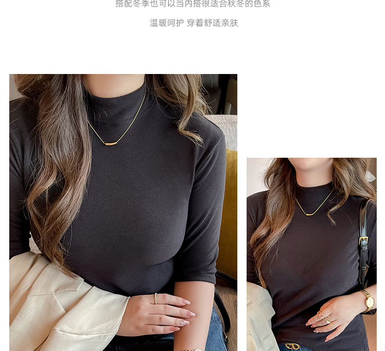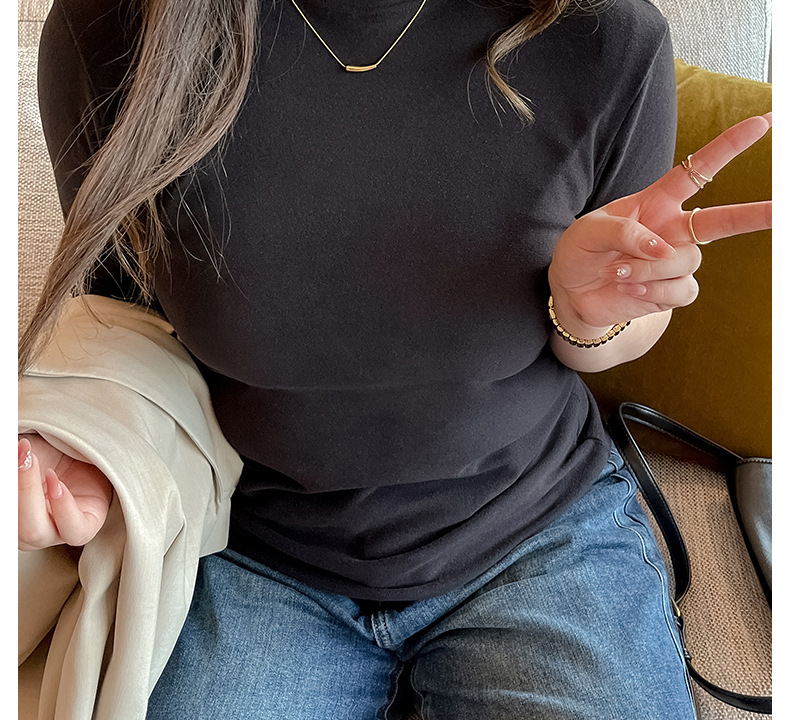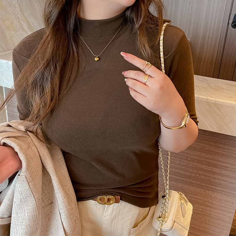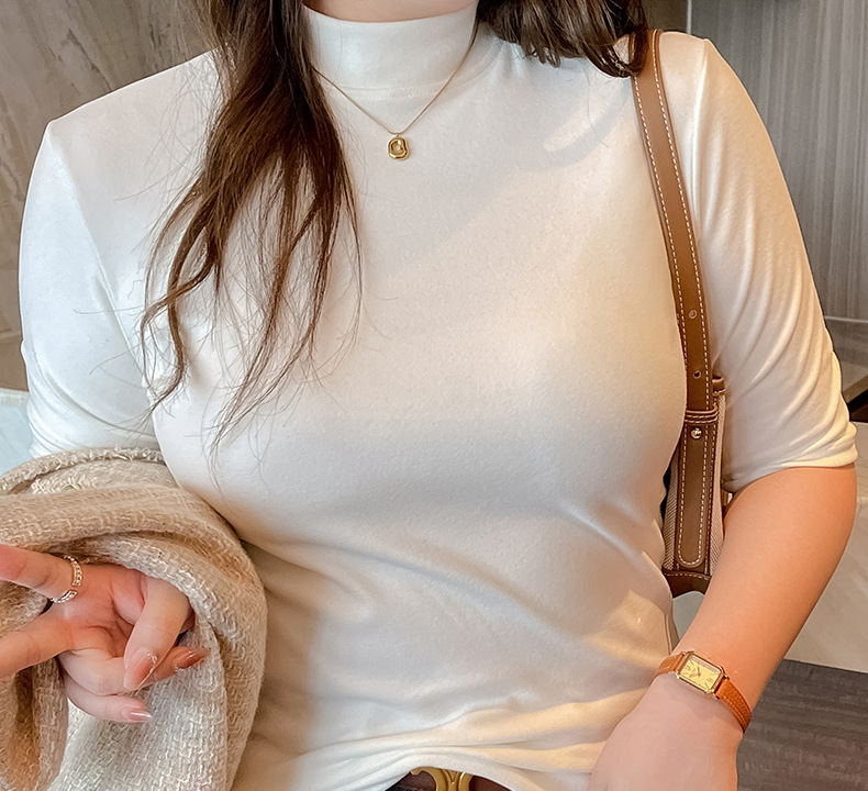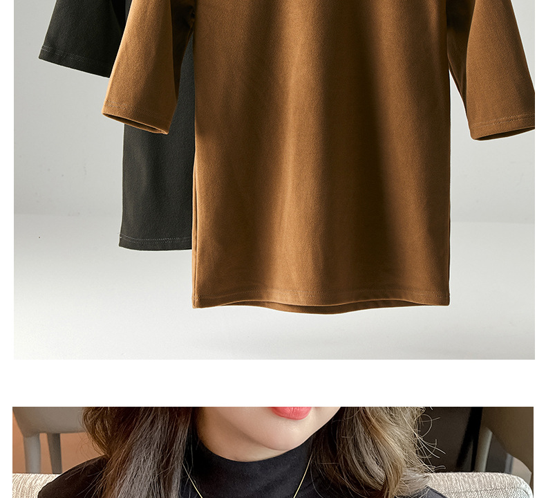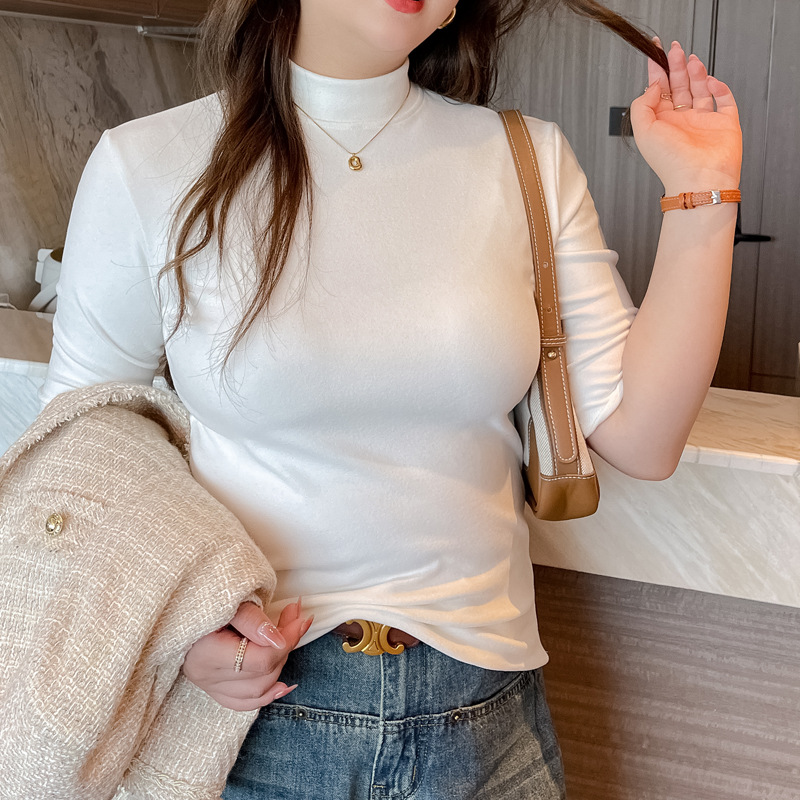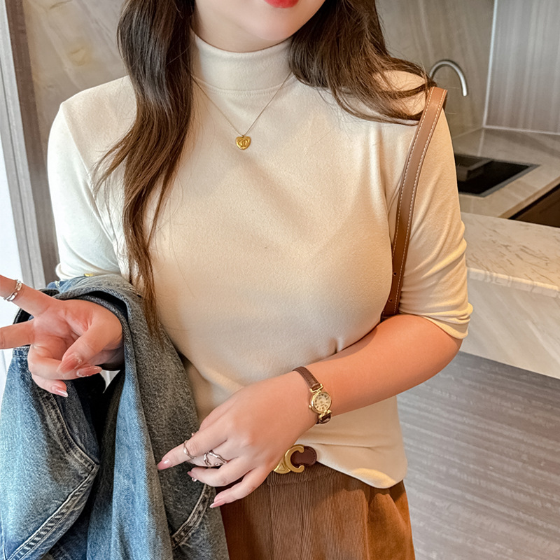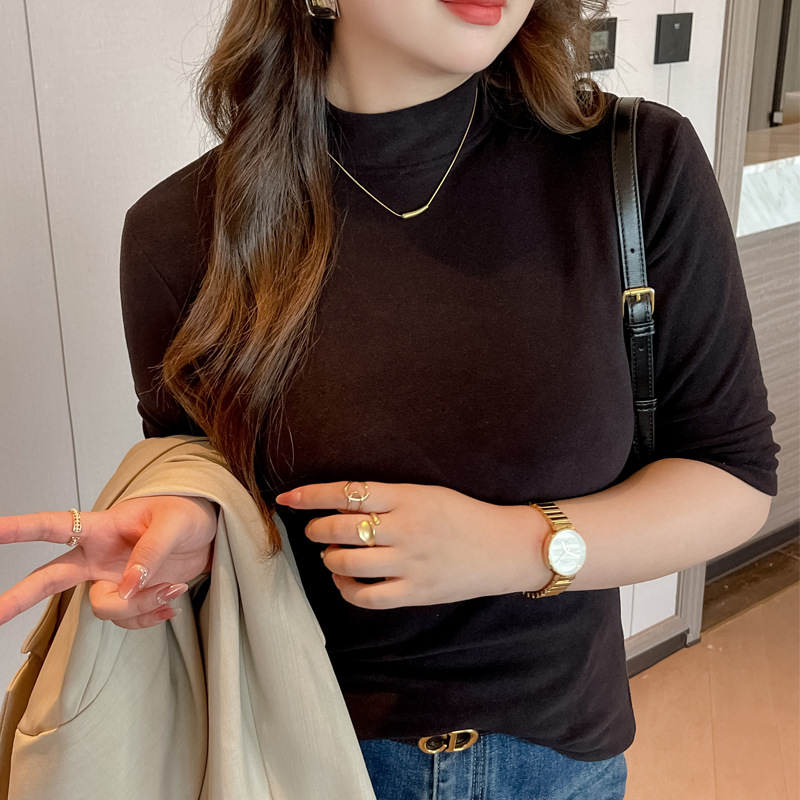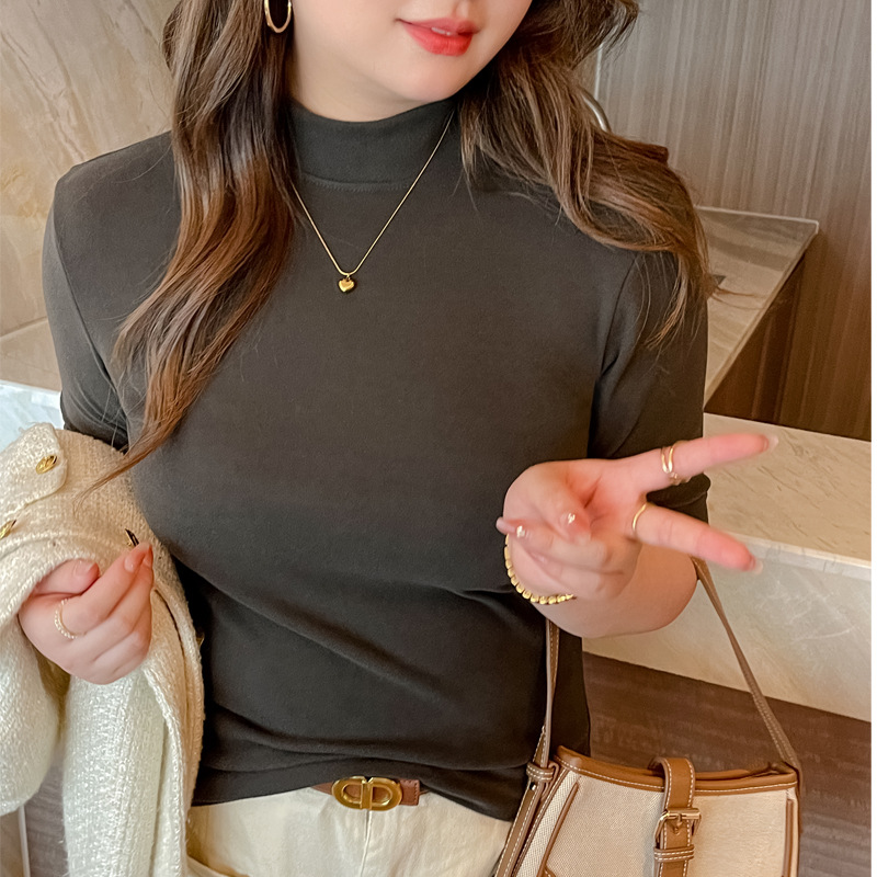 플러스 사이즈 벨벳 5 점 소매베이스 셔츠의 엄격한 선택 여성의 봄 가을 및 겨울 반 높이 칼라 중간 칼라 솔리드 컬러 티셔츠 탑스토어 가기
