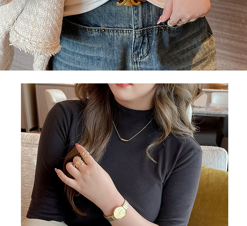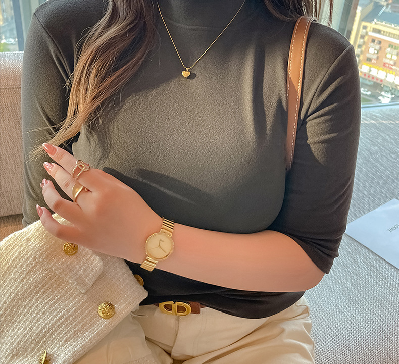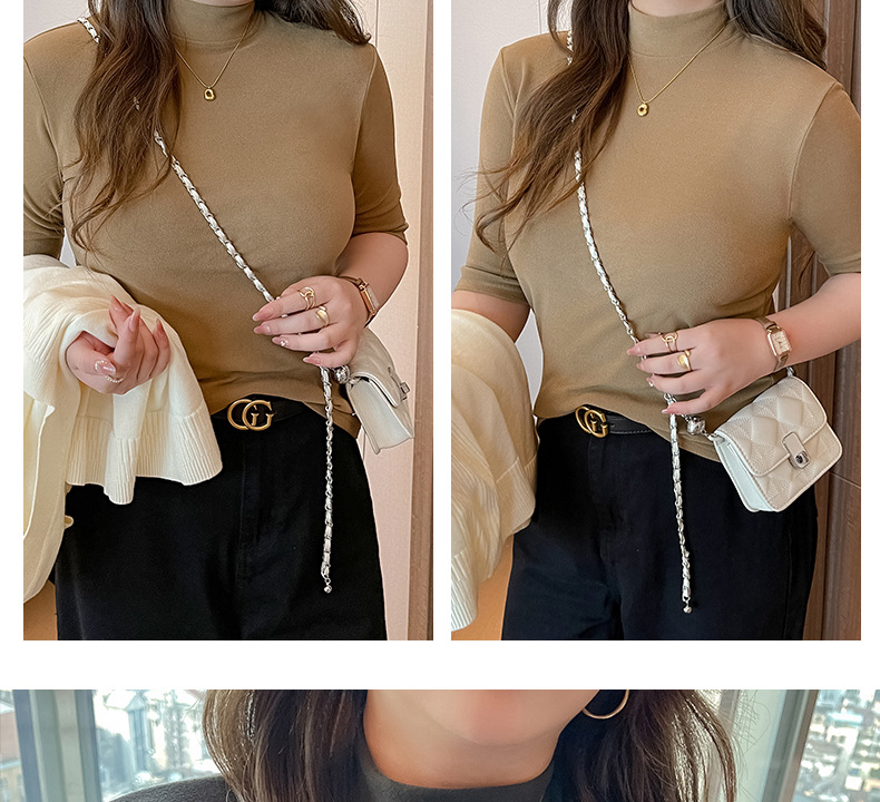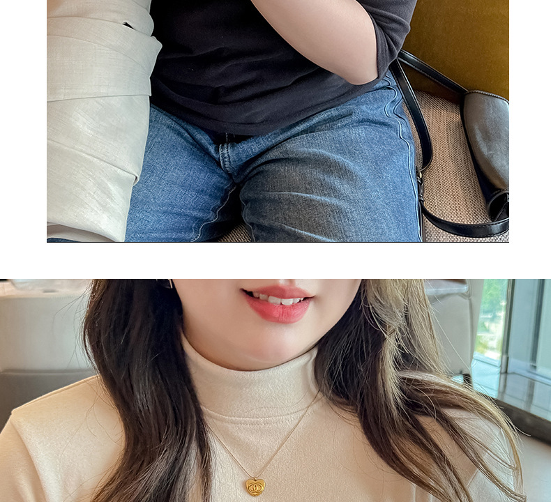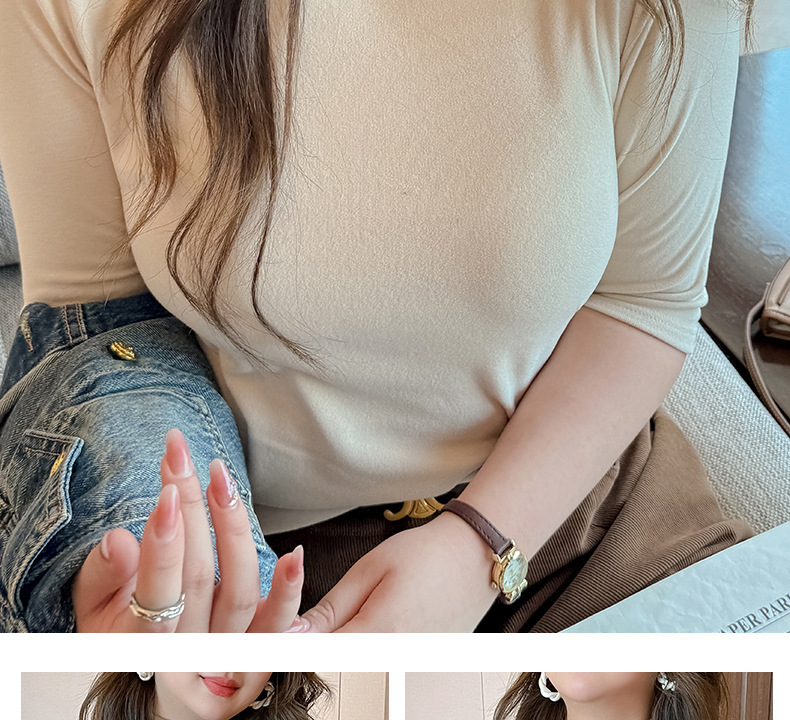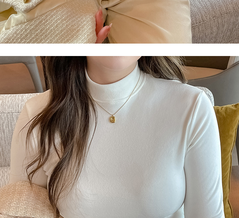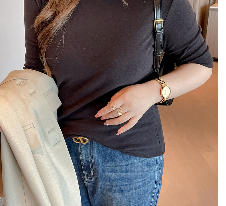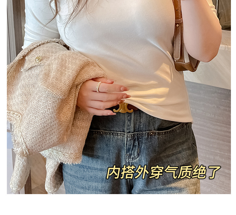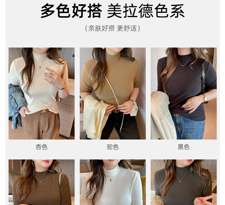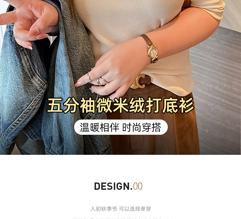 플러스 사이즈 벨벳 5 점 소매베이스 셔츠의 엄격한 선택 여성의 봄 가을 및 겨울 반 높이 칼라 중간 칼라 솔리드 컬러 티셔츠 탑스토어 가기