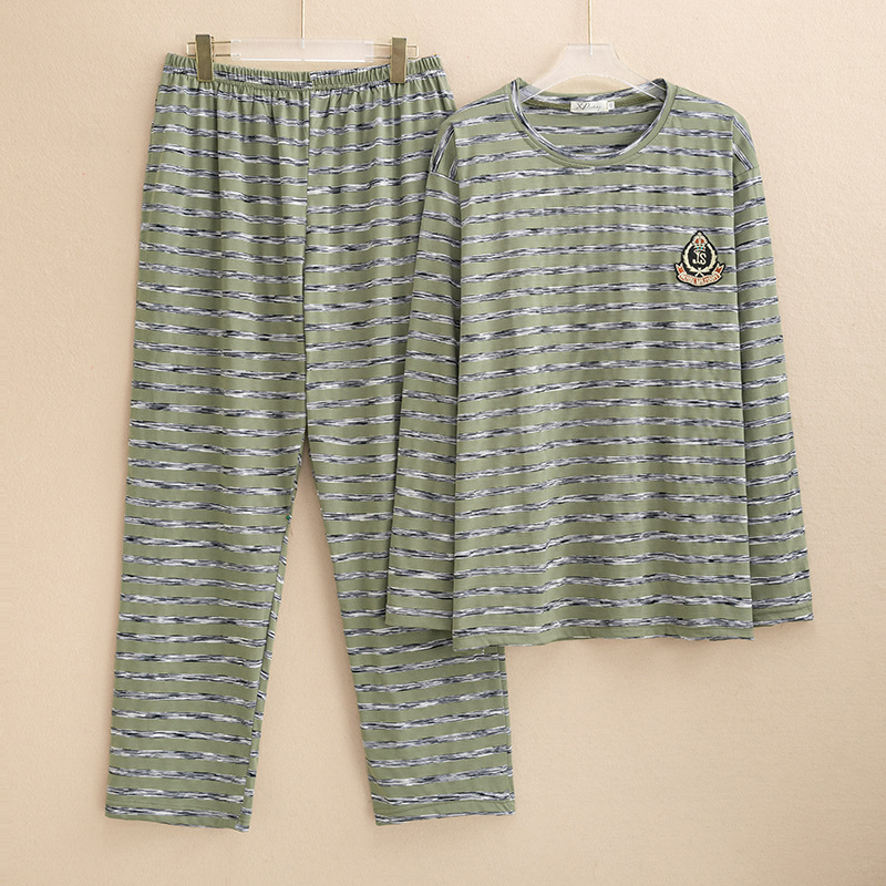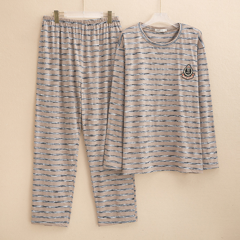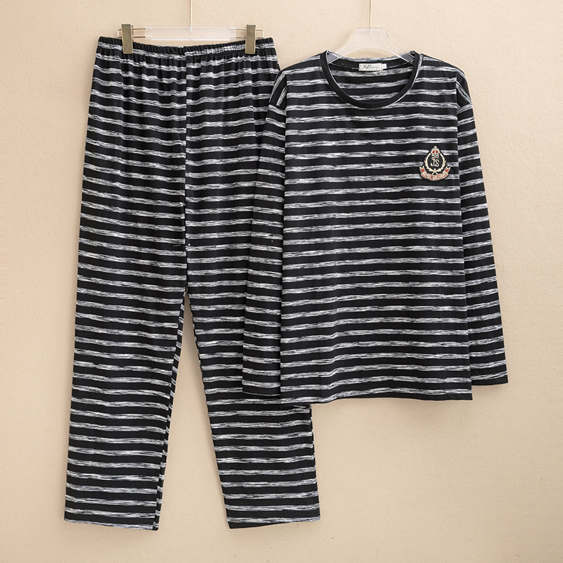 플러스 사이즈 파자마 남자 둥근 목 풀오버 스트라이프 느슨한 긴 소매 바지 홈 옷 여성용 겉옷 캐주얼 커플