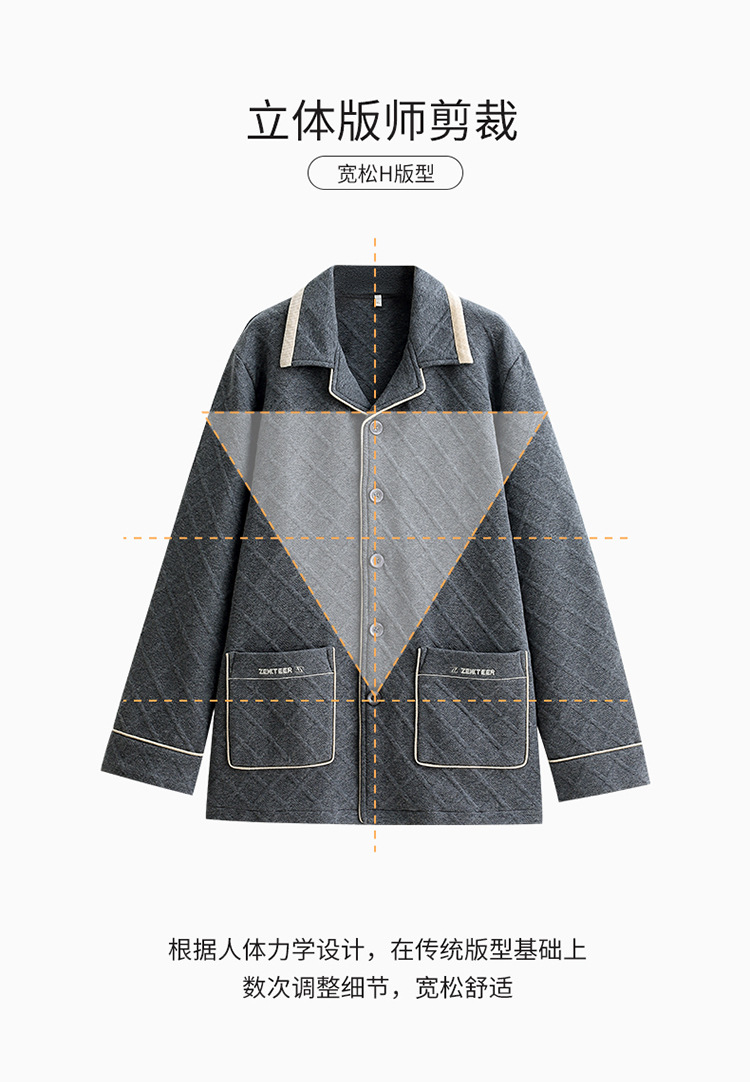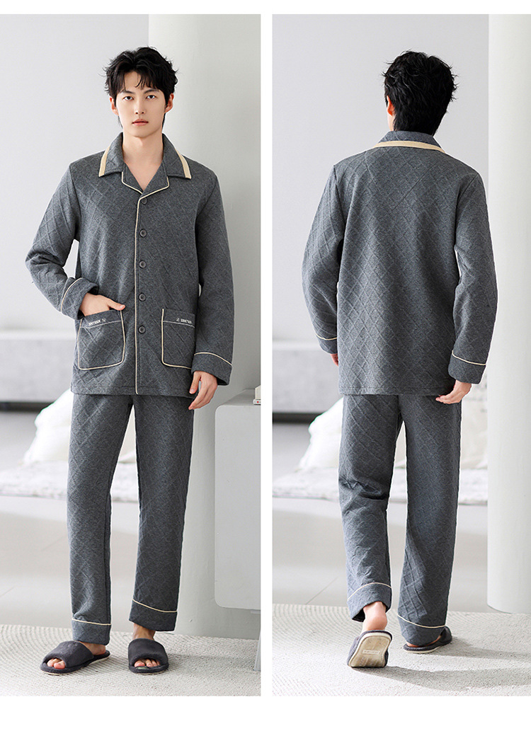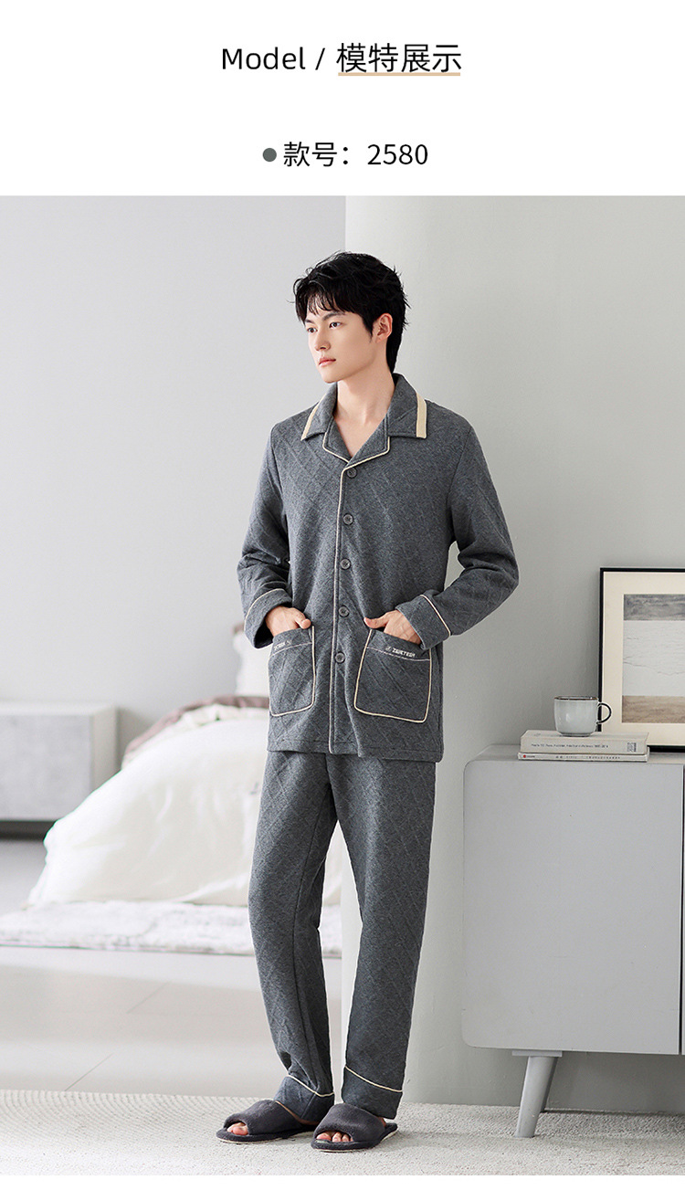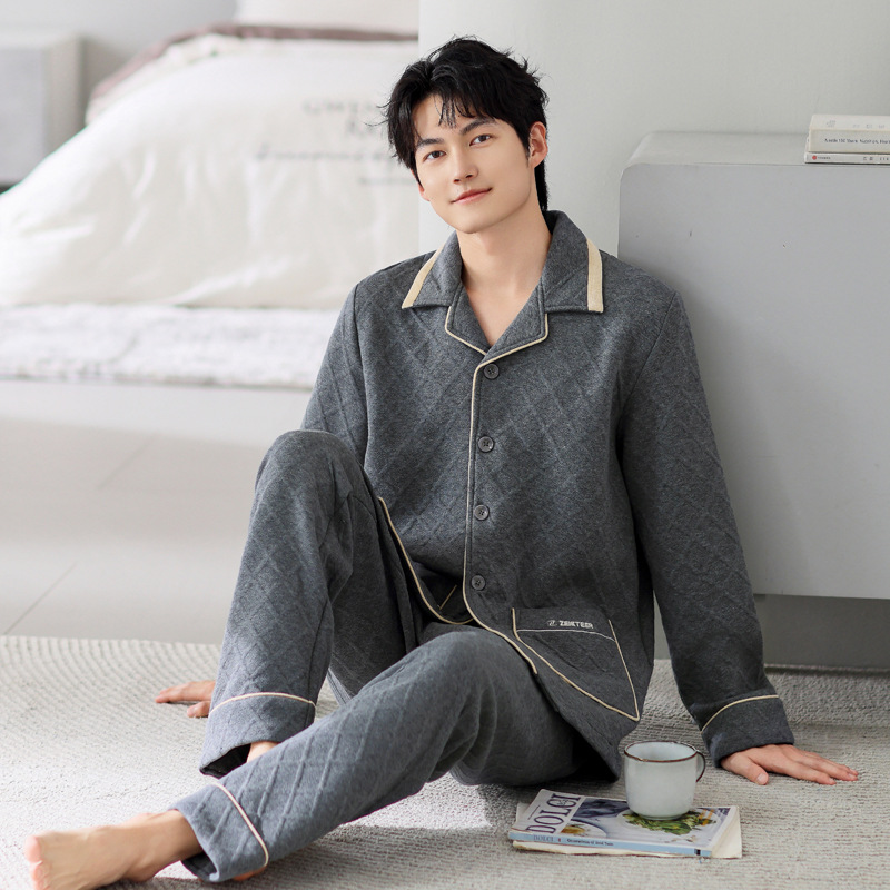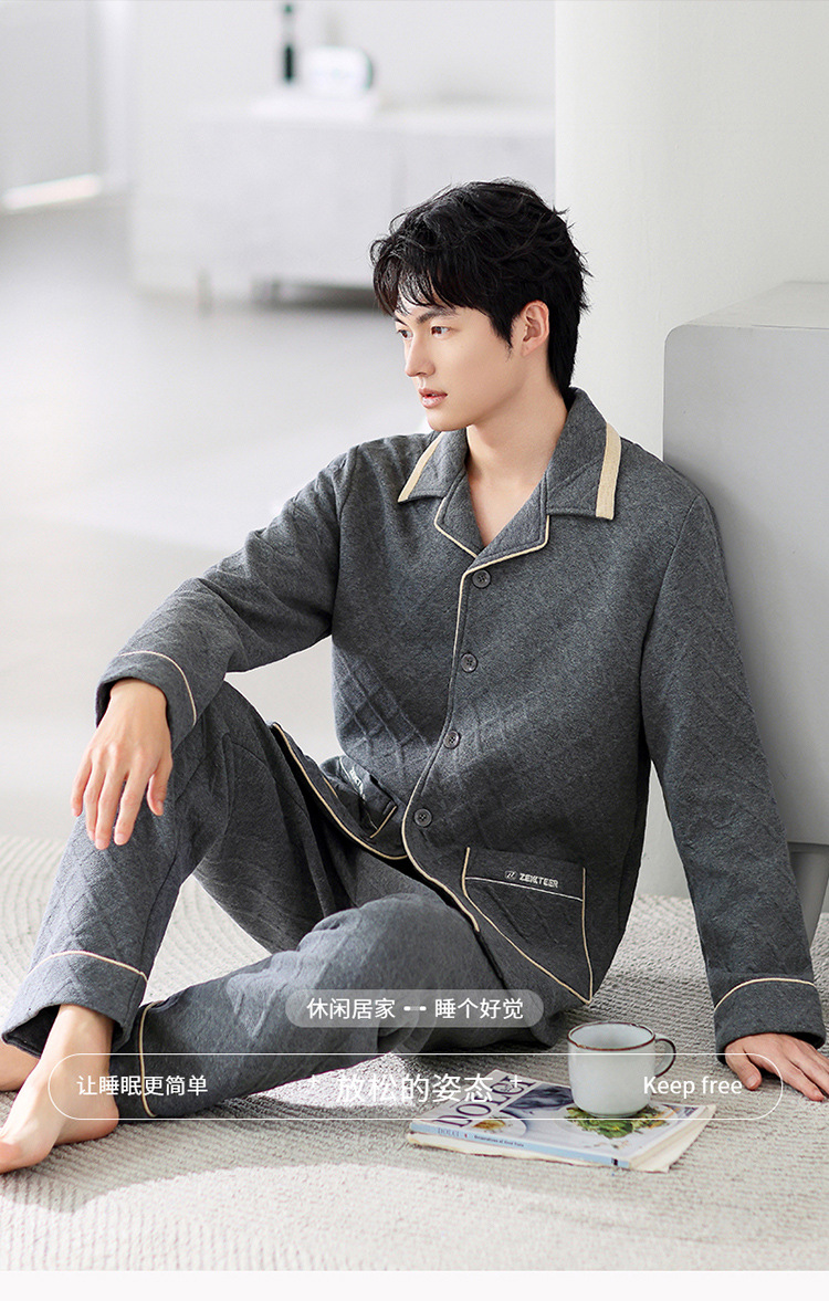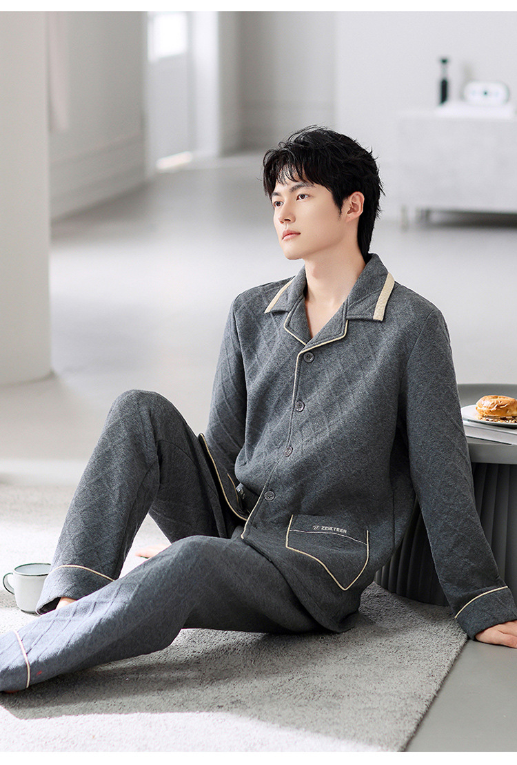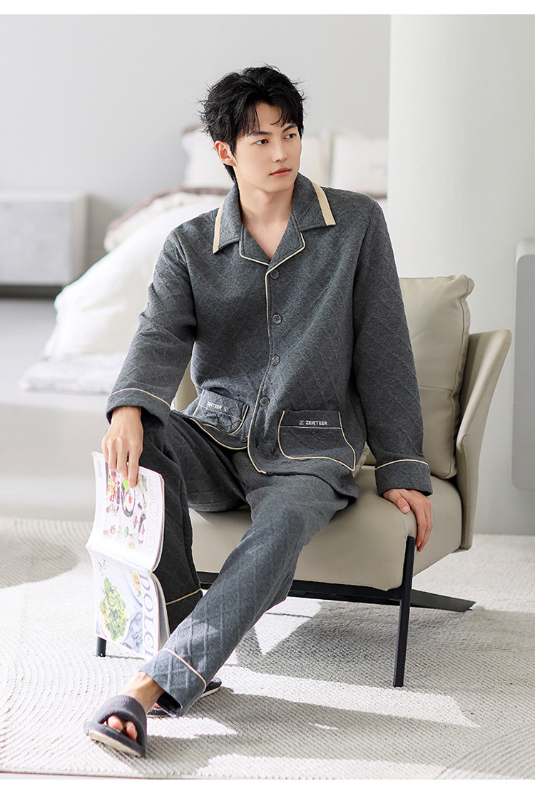 [에어코튼] 가을과 겨울 옷깃 남성용 파자마 코튼 인터레이어 두껍게 따뜻한 느슨한 플러스 사이즈 홈 의류 세트스토어 가기