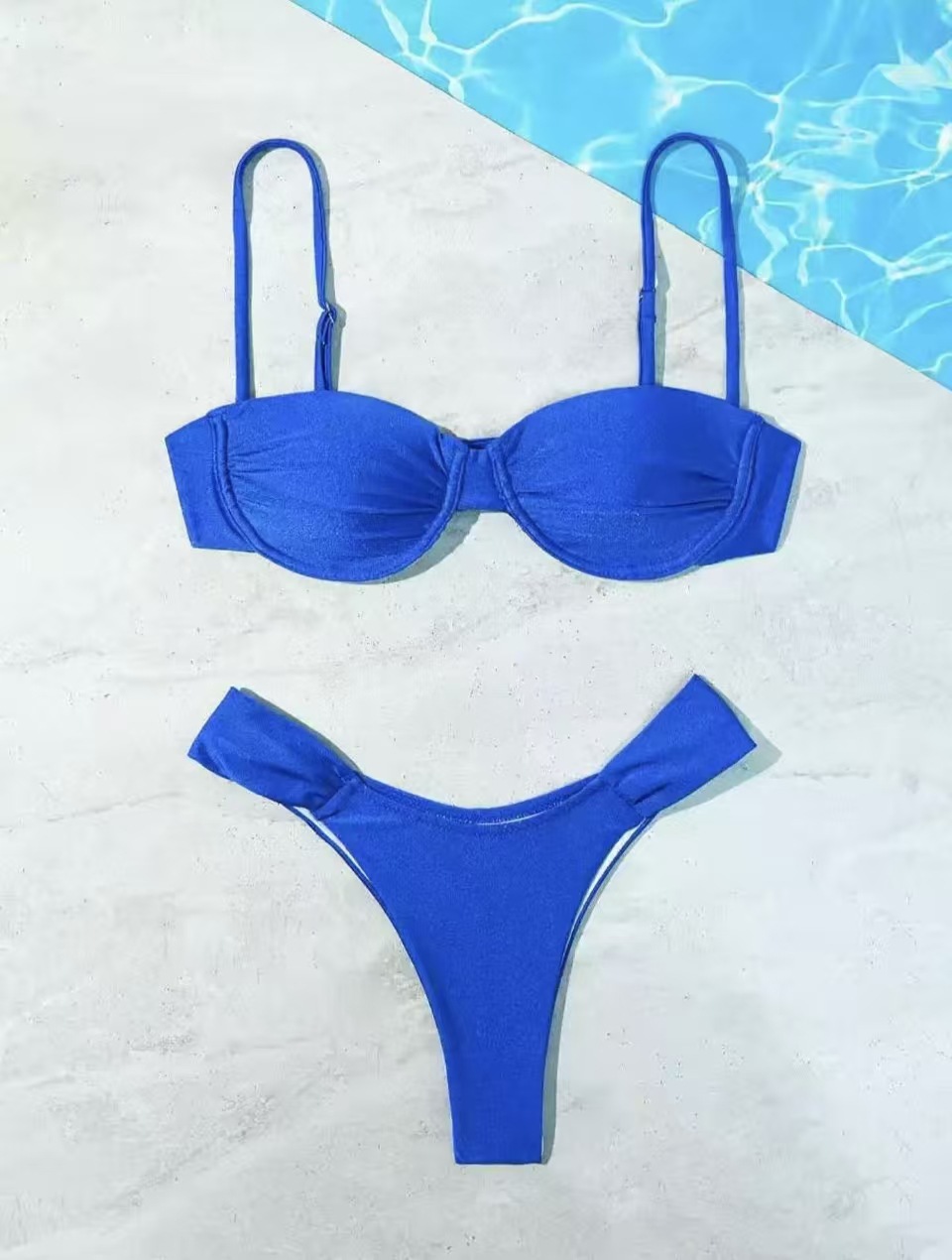 2024 새로운 비키니 대외 무역 아마존 섹시한 단색 수영복 유럽과 미국 여성 분할 수영복 여성 비키니