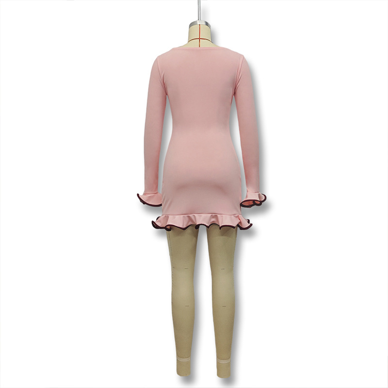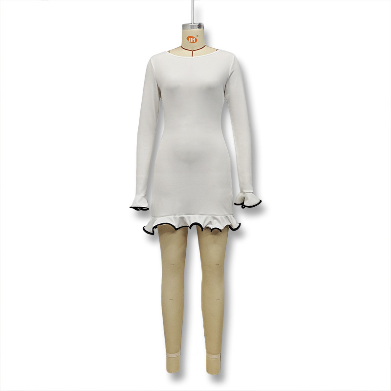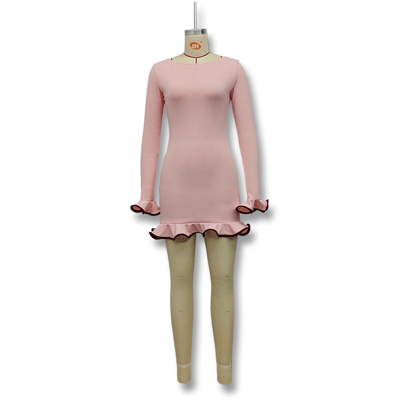 국경 간 아마존 가을과 겨울 새로운 유럽과 미국 여성의 우아한 단색 둥근 목 긴 소매 슬림 핏 원피스 여성