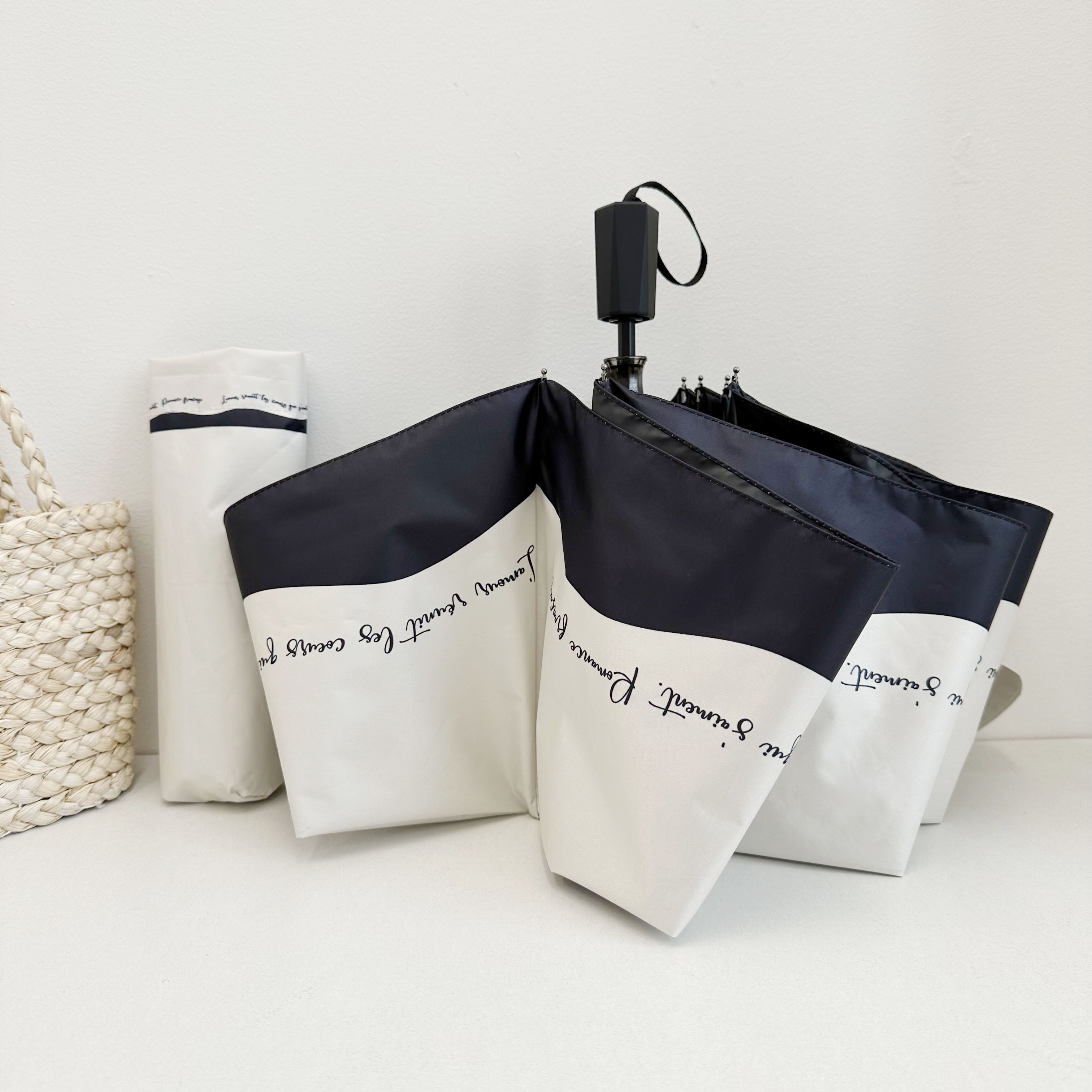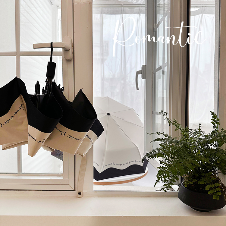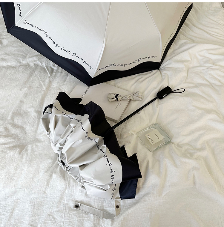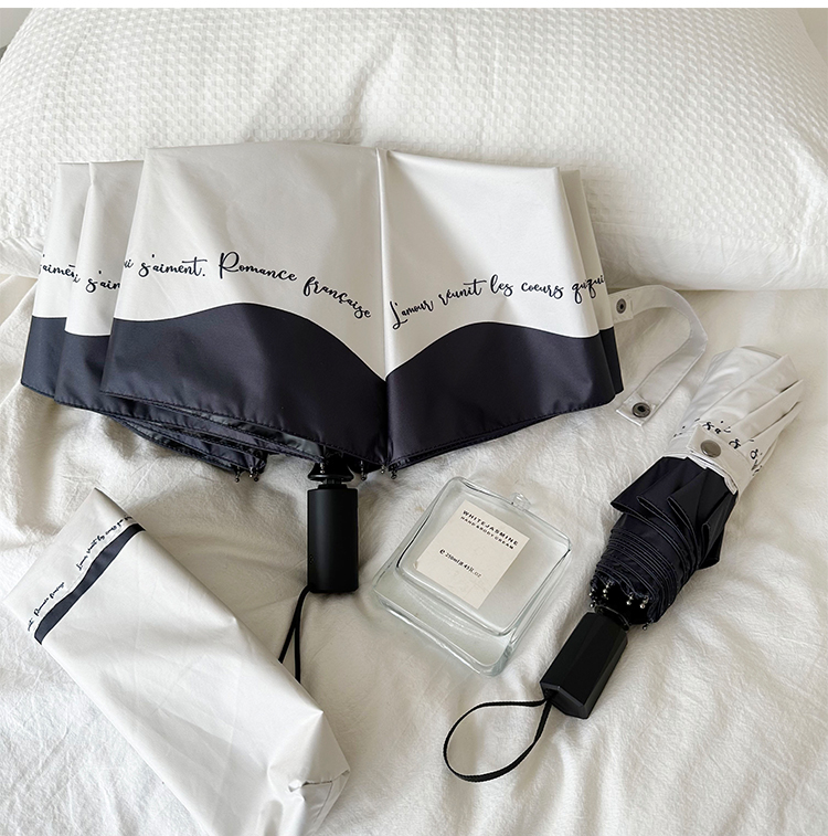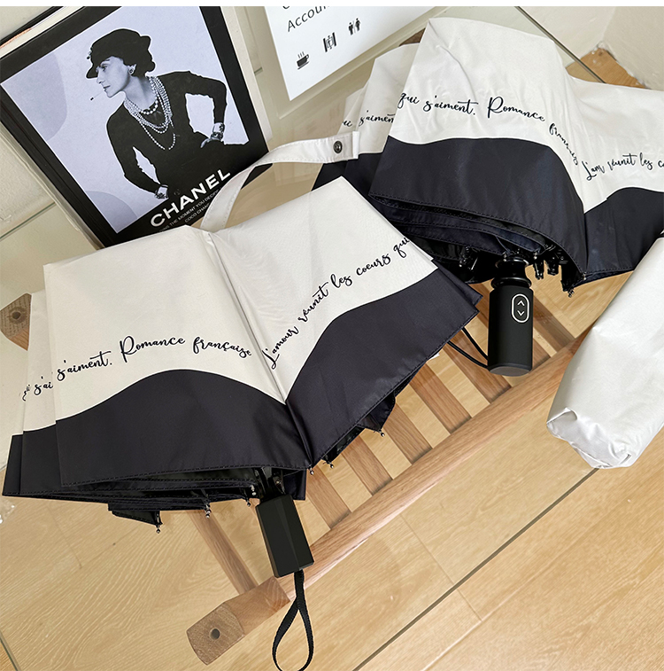 ♡ 로맨틱 프랑스 우산 자동 여성용 비 또는 빛 흑백 접합 틈새 자외선 차단 파라솔스토어 가기