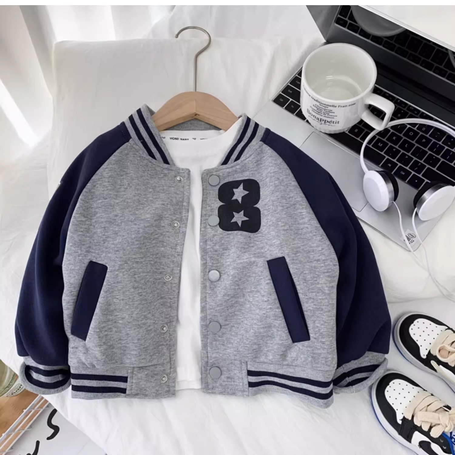 남자들의 잘 생긴 야구 유니폼 2024 한국식 새 봄과 가을 어린이 세련된 대비 컬러 스탠드 칼라 재킷 코트