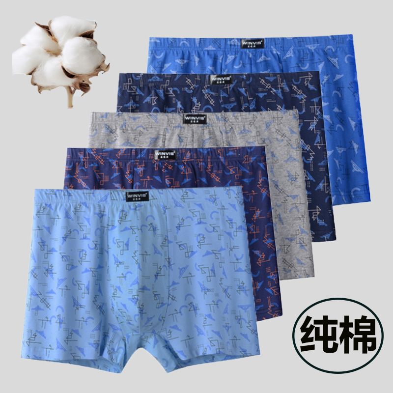 남성 속옷 면화 인쇄 복서 통기성 느슨한 복서 느슨한 플러스 사이즈 뚱뚱한 남자 반바지 도매