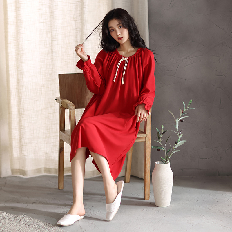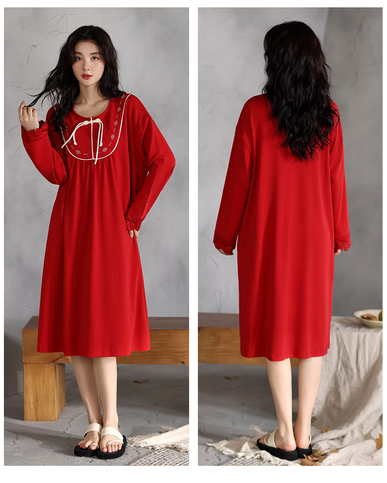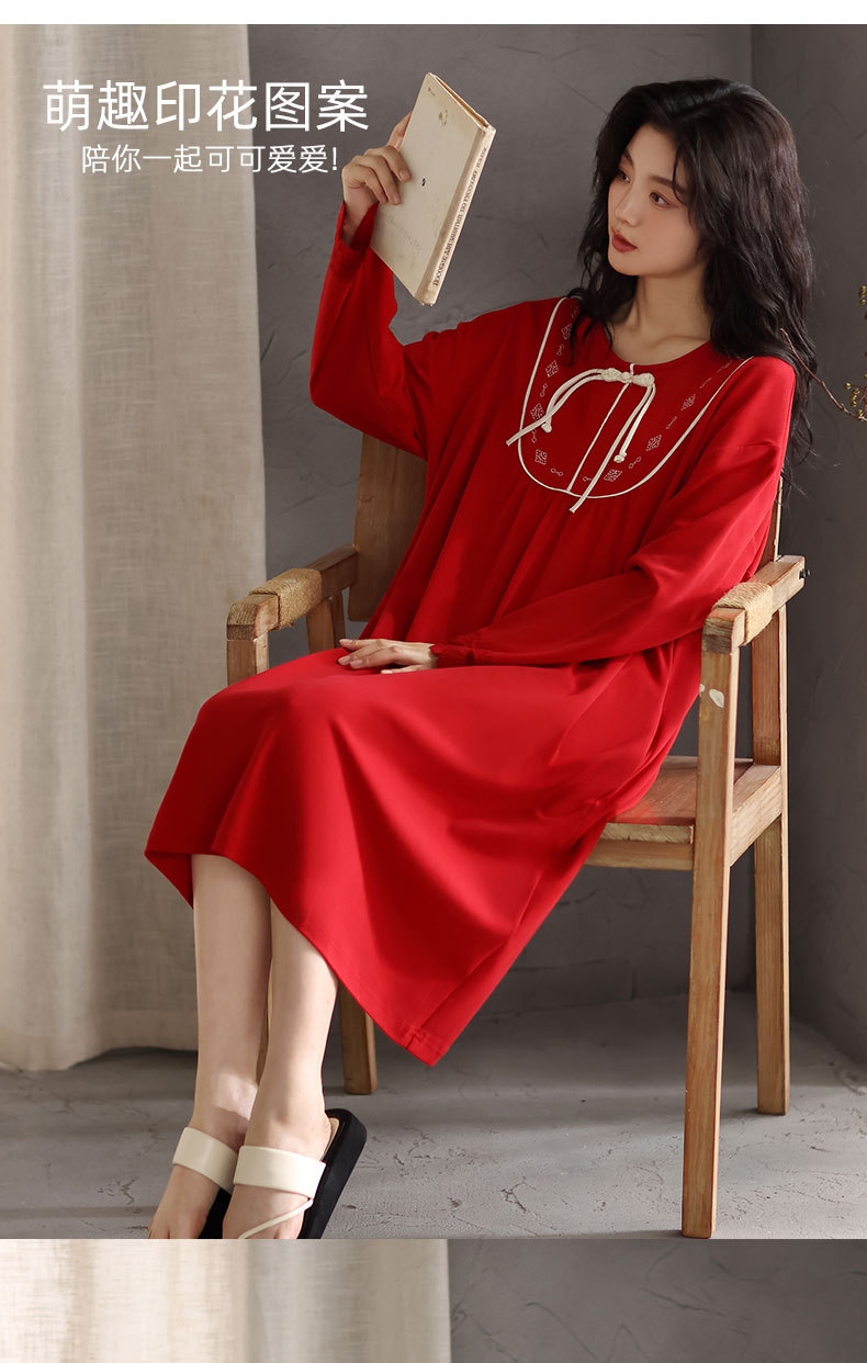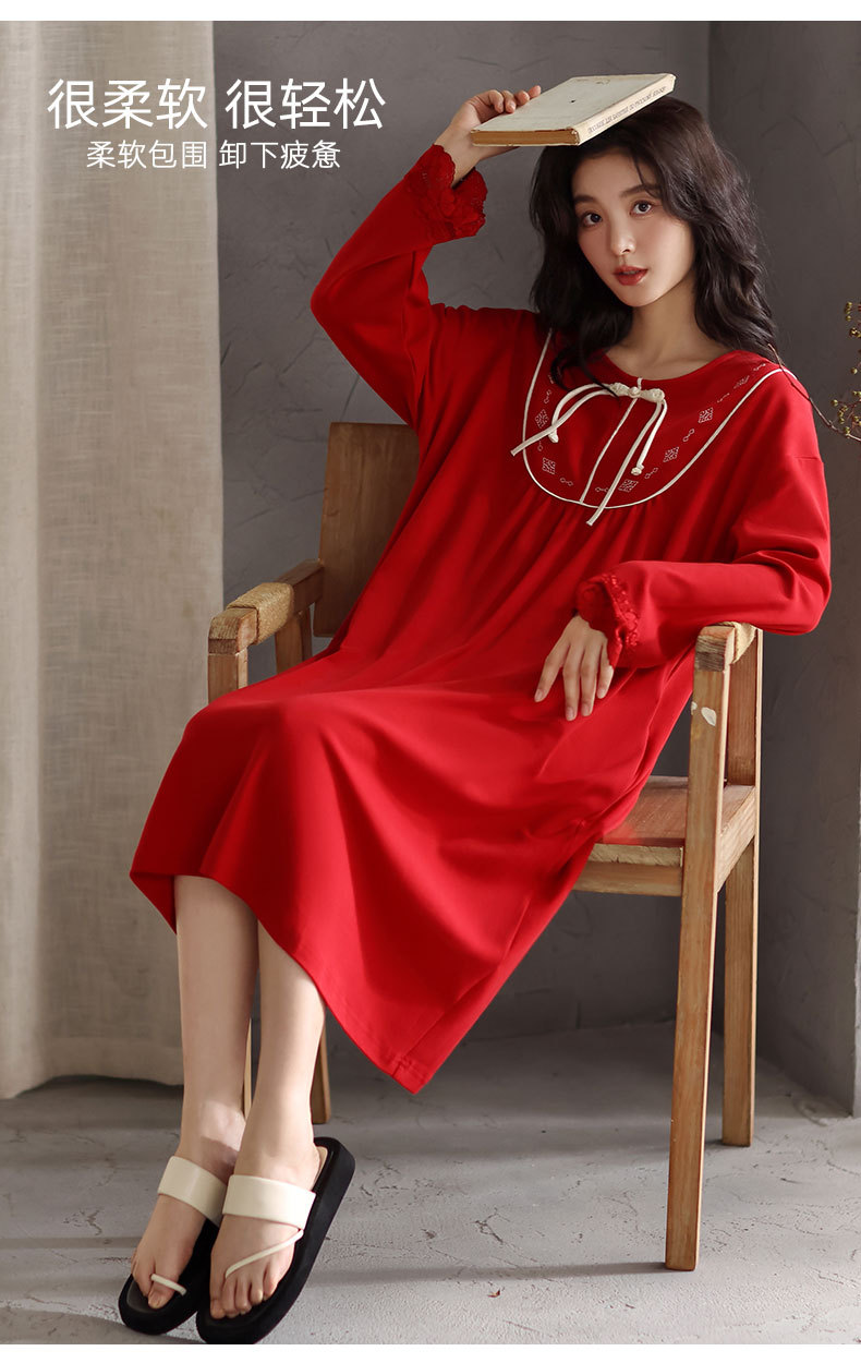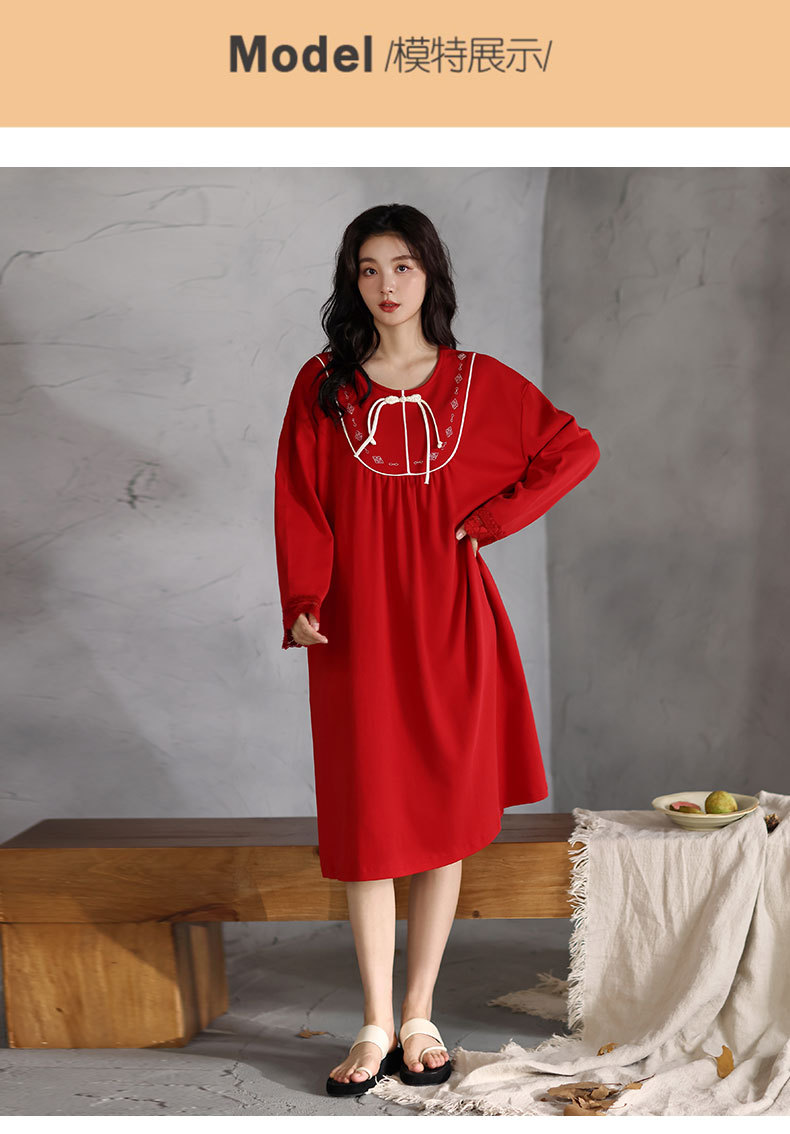 2024 새로운 큰 빨간 중간 길이 코튼 잠옷 중국 스타일 결혼식 신년 코튼 홈 의류스토어 가기