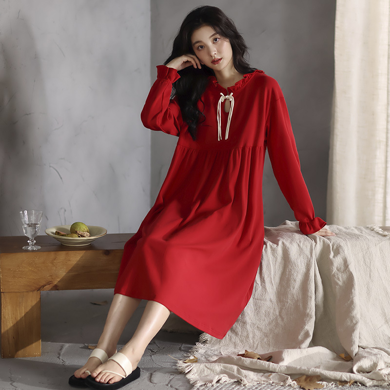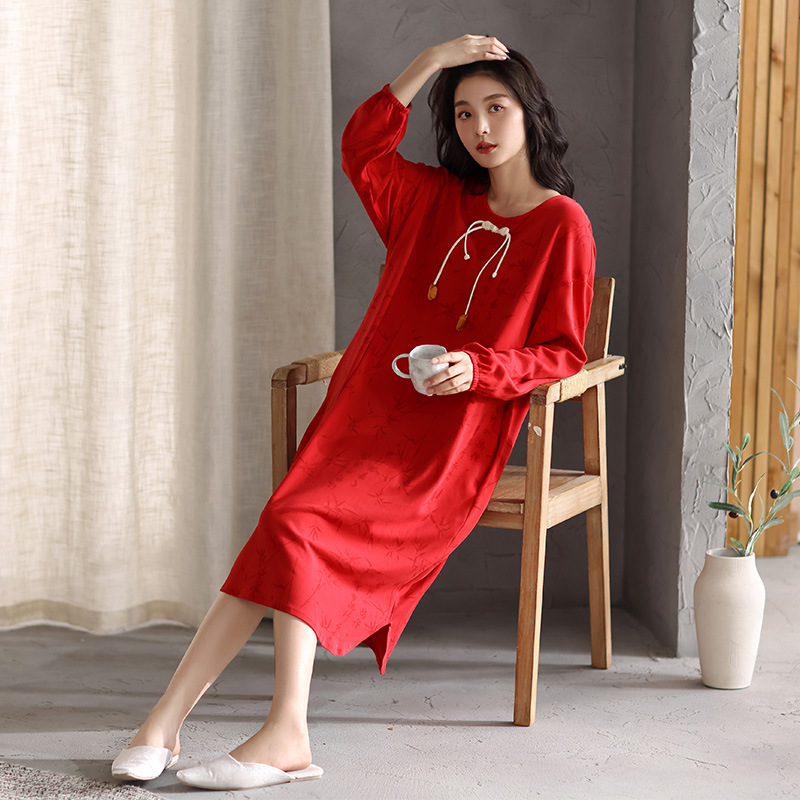 2024 새로운 큰 빨간 중간 길이 코튼 잠옷 중국 스타일 결혼식 신년 코튼 홈 의류