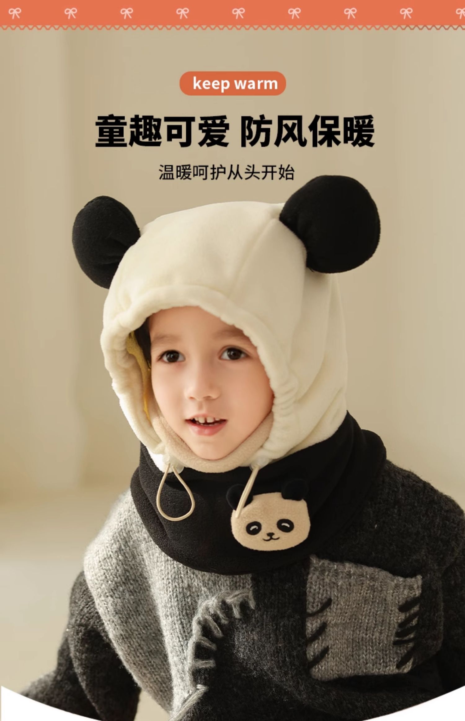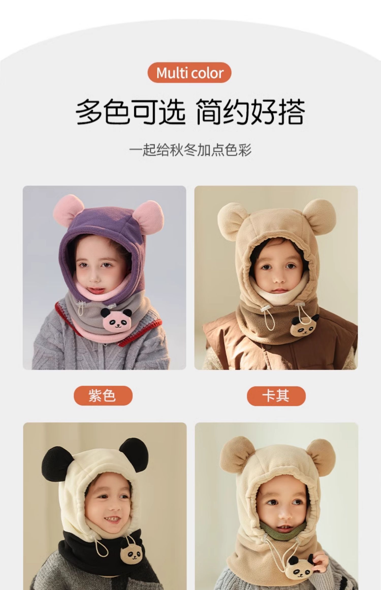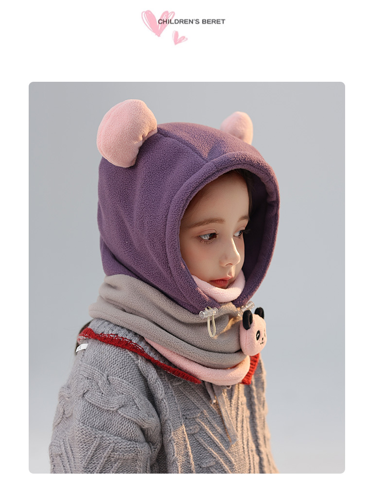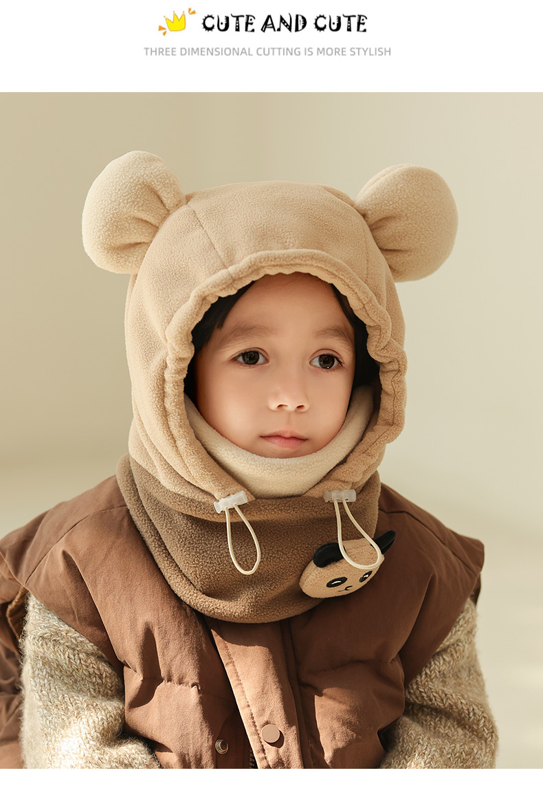 어린이 풀오버 모자 스카프 통합 방풍 마스크 소년 소녀 아기 가을과 겨울 두꺼운 따뜻한 2024 새로운