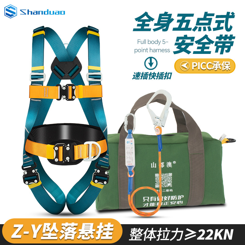 풀 바디 5 포인트 안전 벨트 공중 작업 야외 보험 안전 로프 풀 세트 더블 후크 내마모성 국가 표준스토어 가기