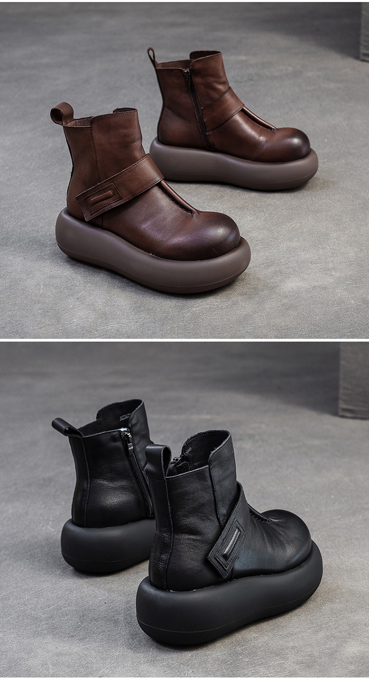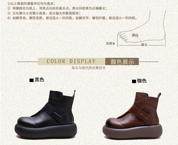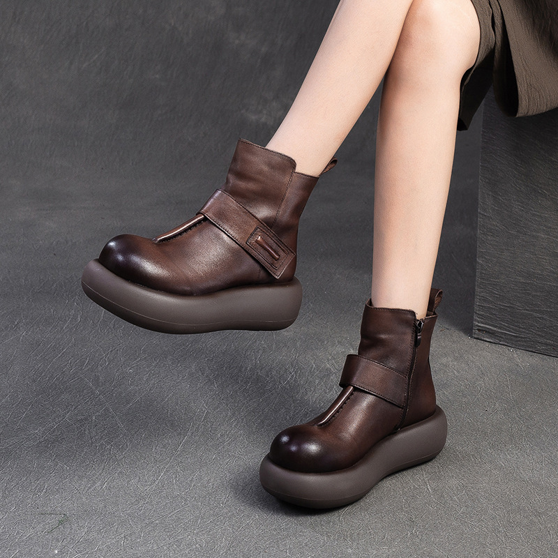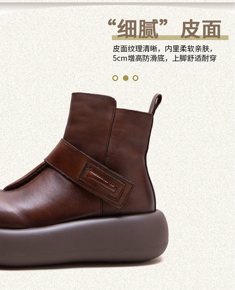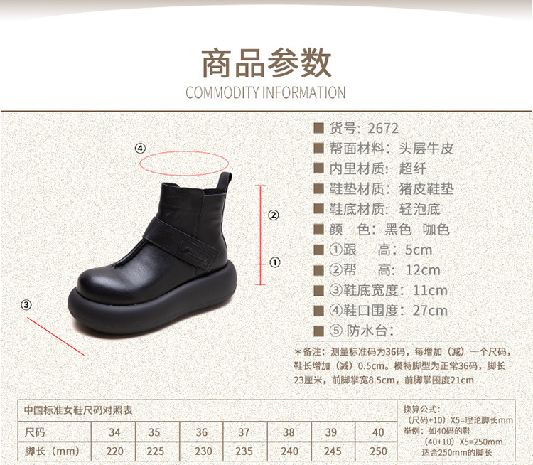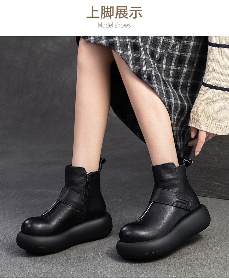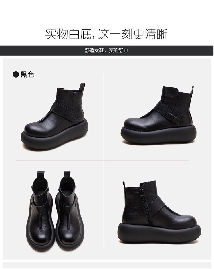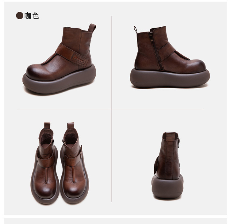 2024 가을과 겨울 새로운 첫 번째 레이어 소 가죽 둥근 발가락 두꺼운 밑창 한국식 짧은 부츠 복고풍 캐주얼 다용도 여성 신발 부츠스토어 가기