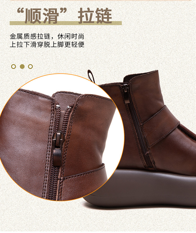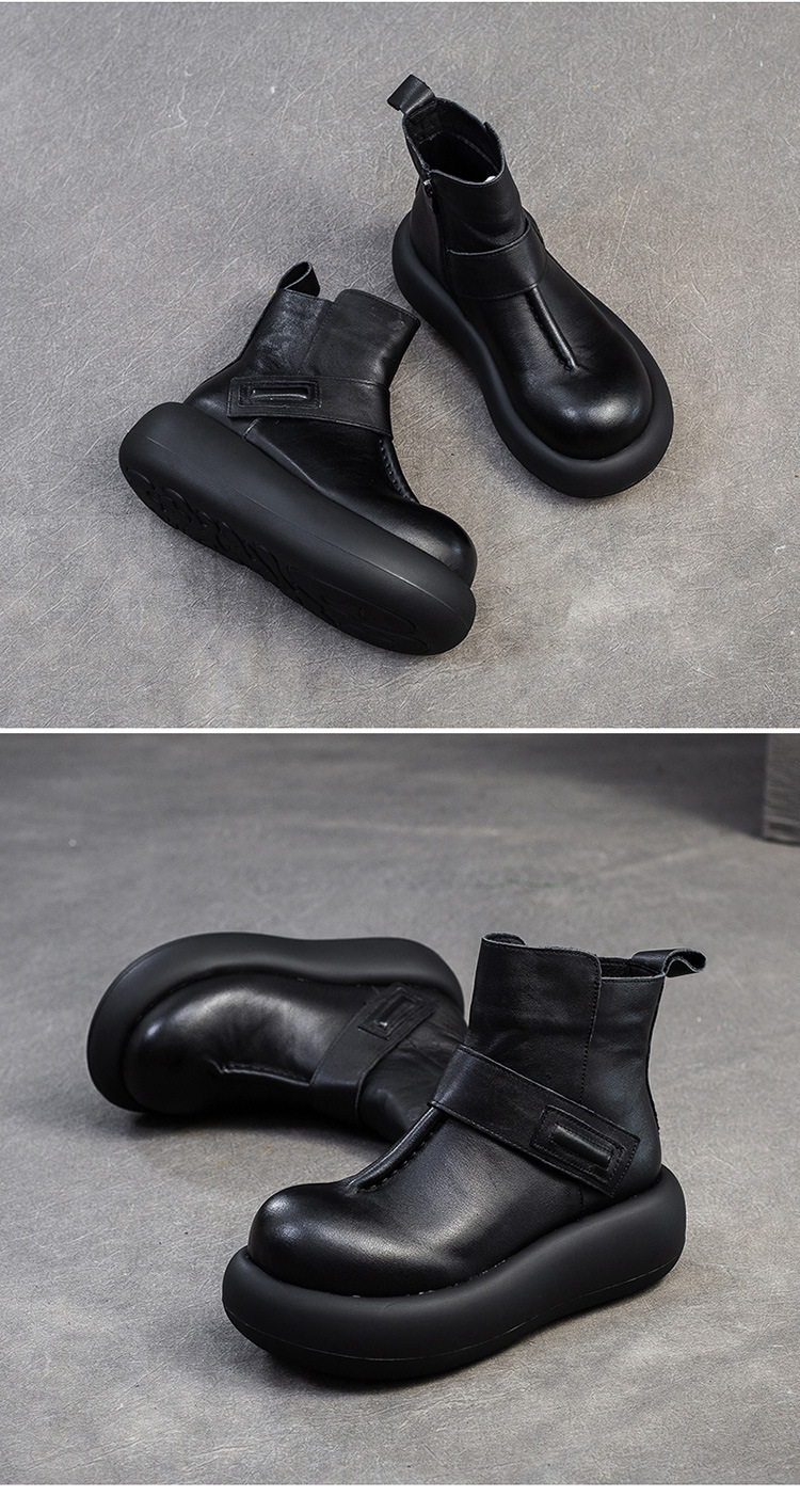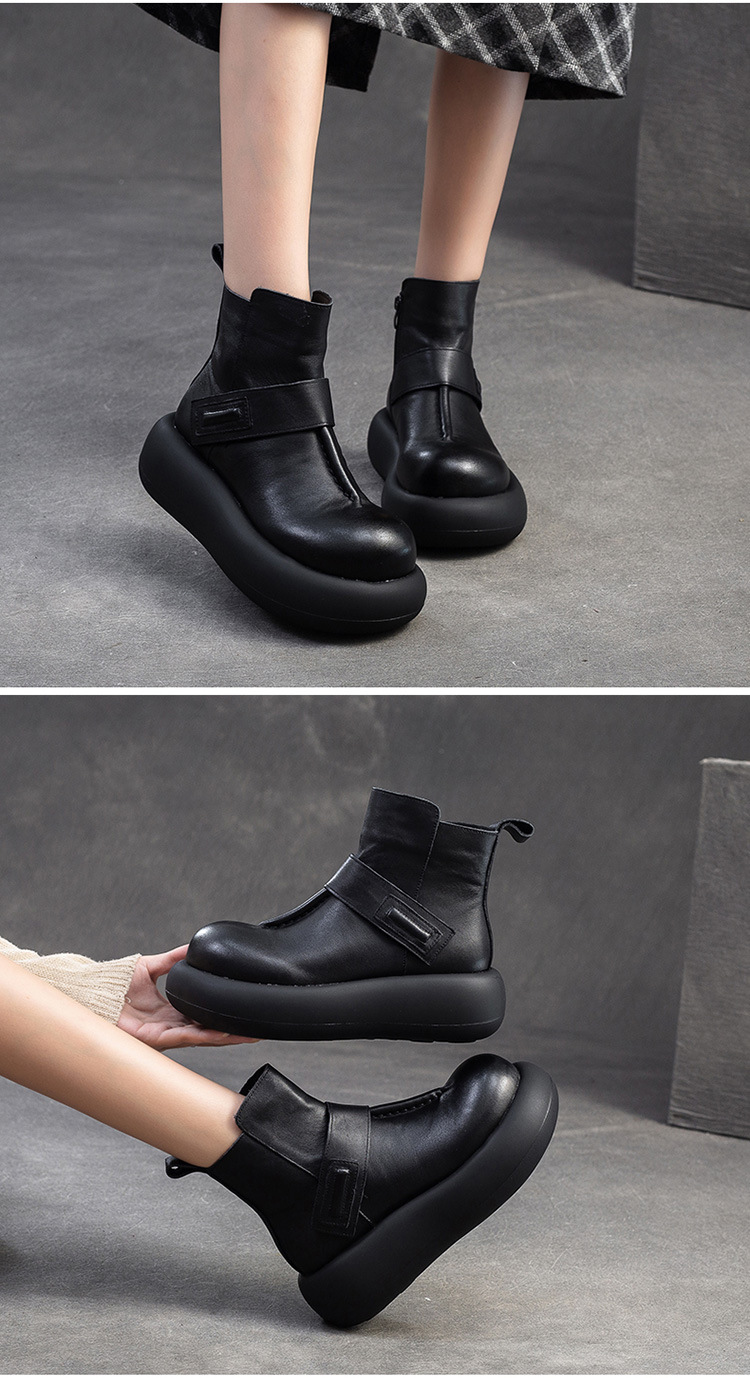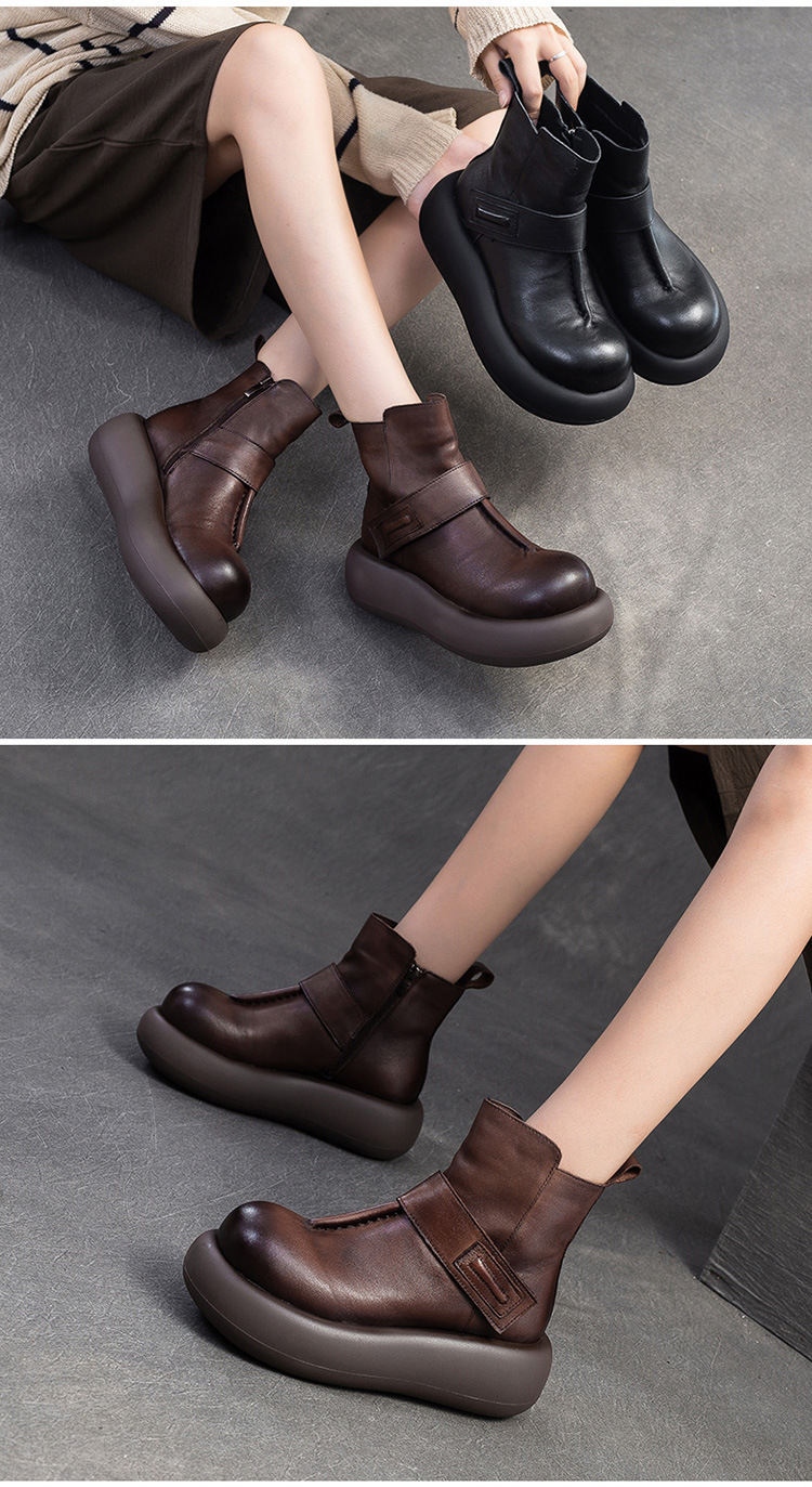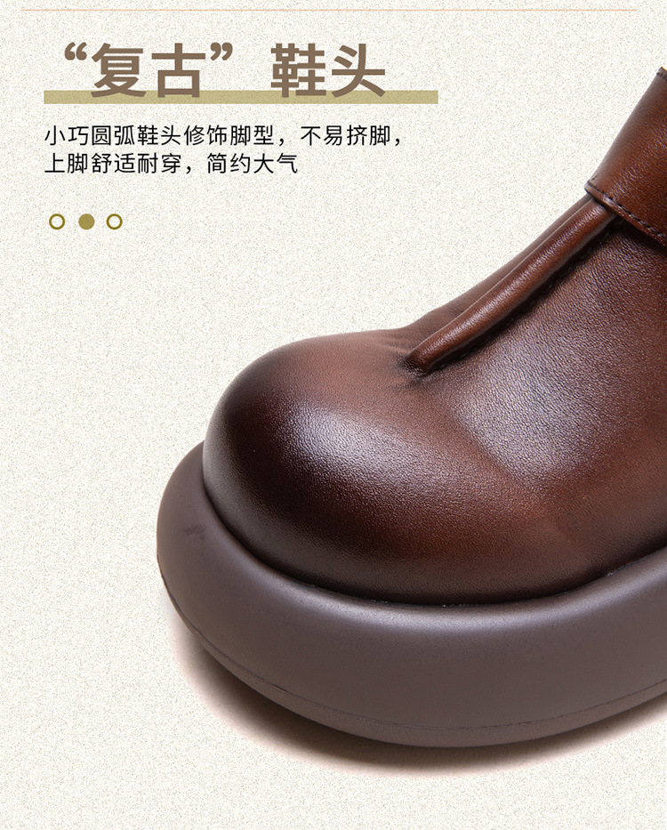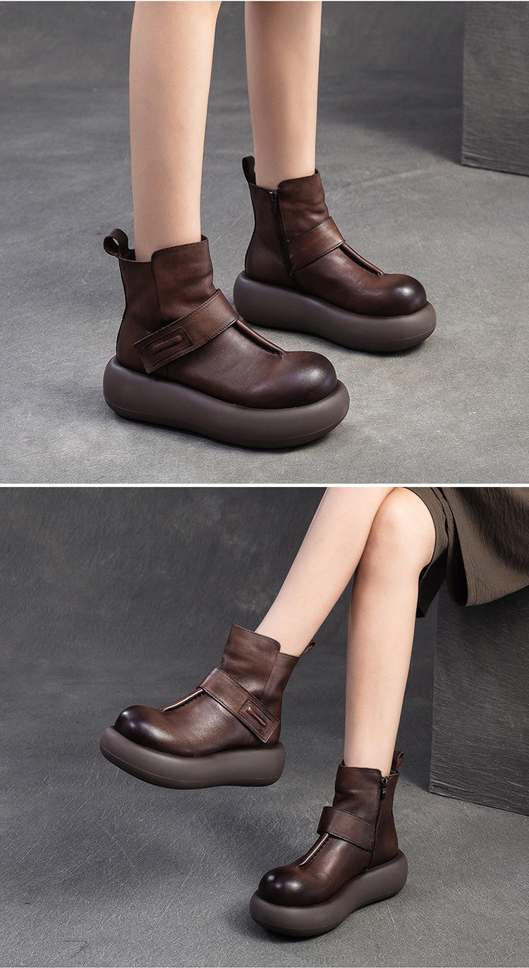 2024 가을과 겨울 새로운 첫 번째 레이어 소 가죽 둥근 발가락 두꺼운 밑창 한국식 짧은 부츠 복고풍 캐주얼 다용도 여성 신발 부츠스토어 가기