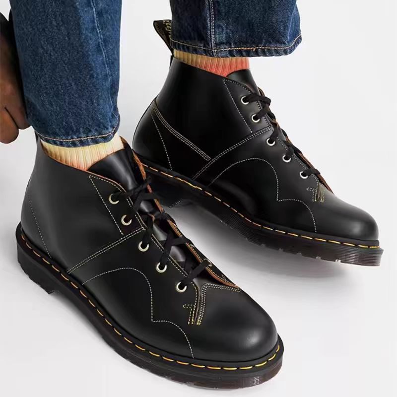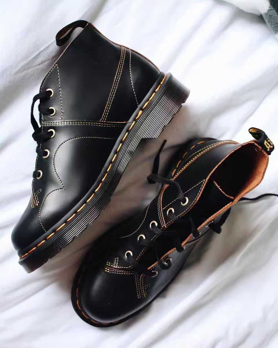 5홀 원숭이 얼굴 마틴 부츠 여성용 영국 스타일 천연 가죽 숏부츠 미끄럼 방지 내구성 라운드 토 남녀 커플 작업복 영국 스타일