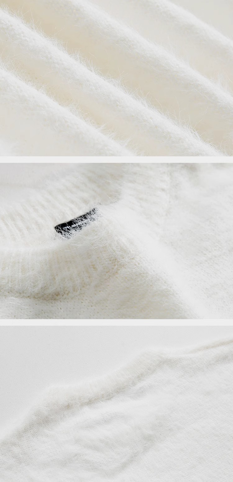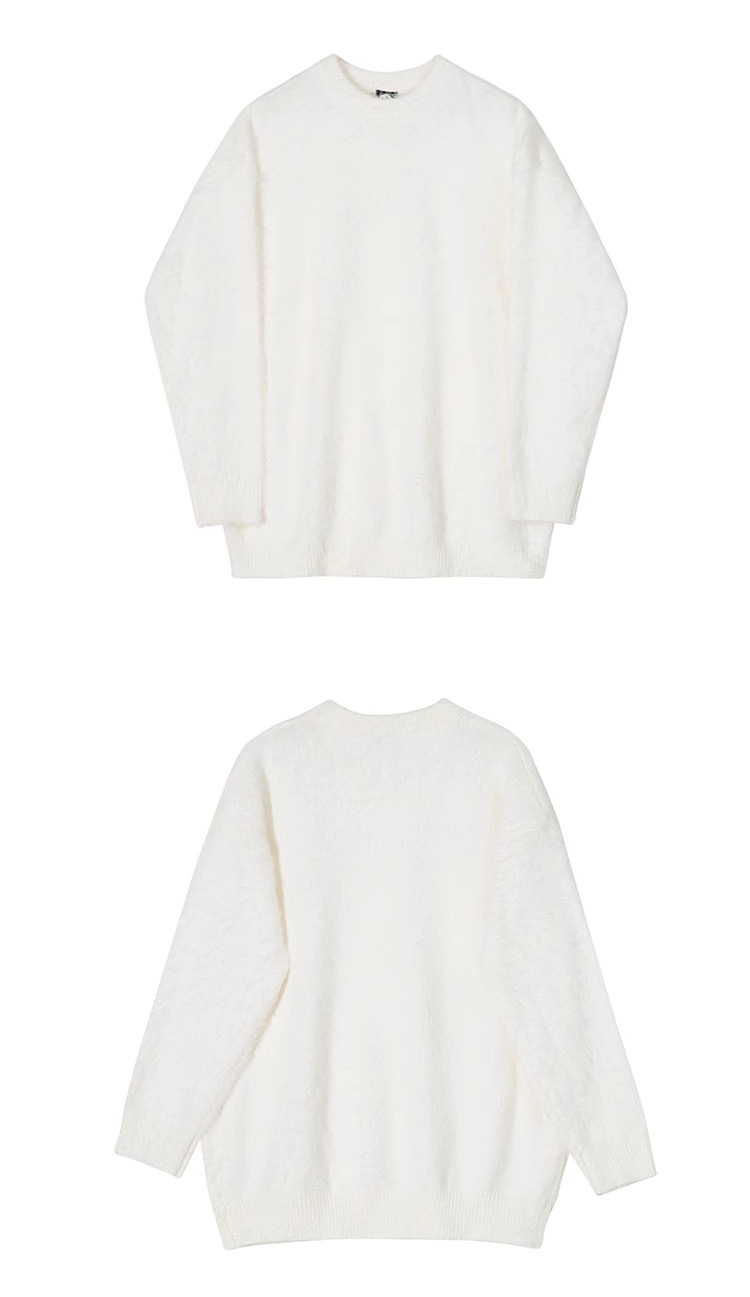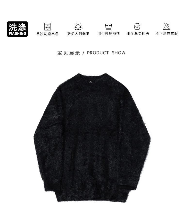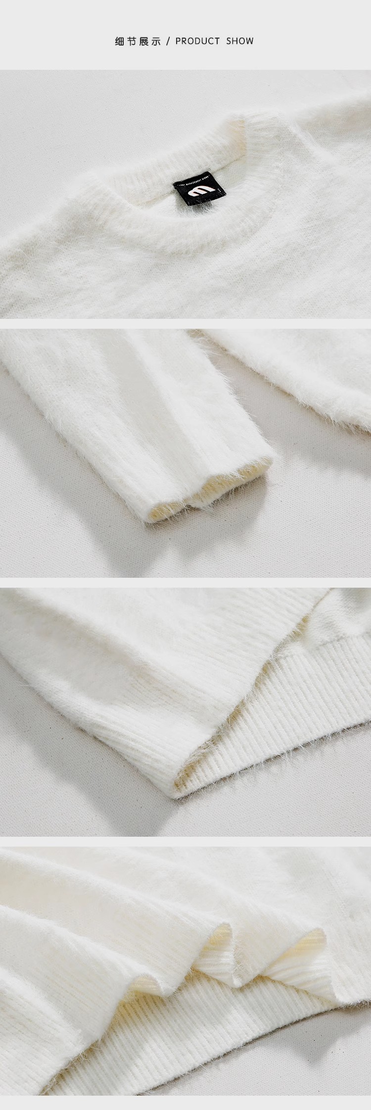 밍크 헤어 게으른 니트웨어 남자 가을 겨울 한국 느슨한 단색 탑 소프트 왁스 크루 넥 두꺼운 스웨터