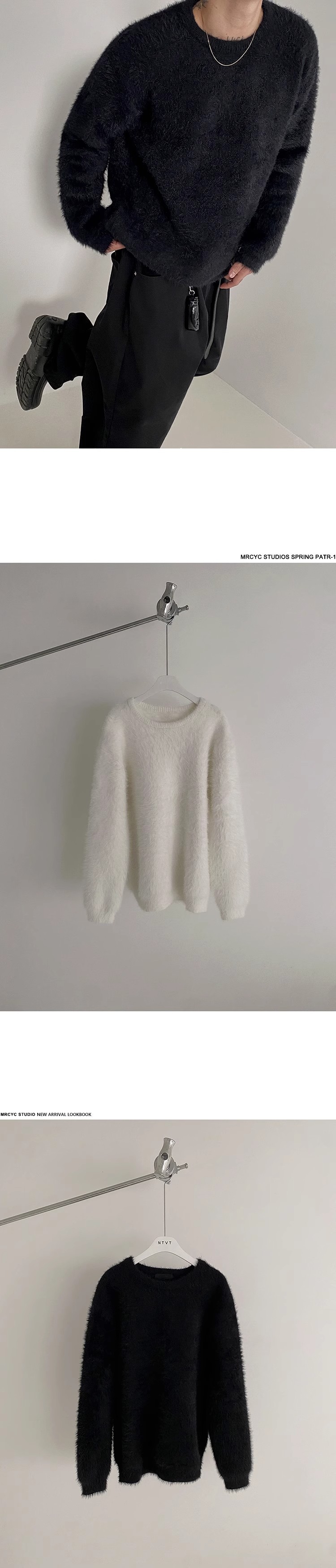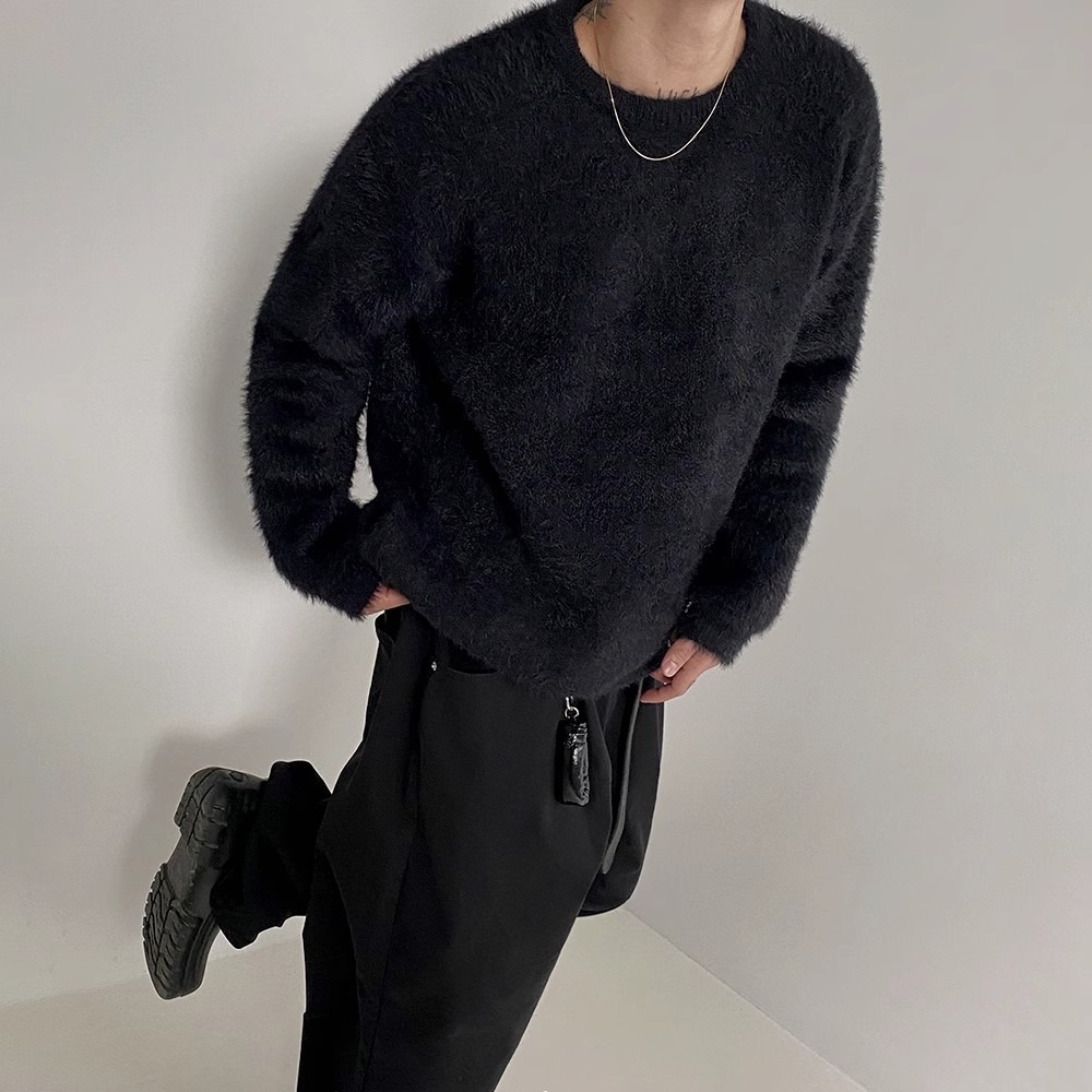 밍크 헤어 게으른 니트웨어 남자 가을 겨울 한국 느슨한 단색 탑 소프트 왁스 크루 넥 두꺼운 스웨터스토어 가기