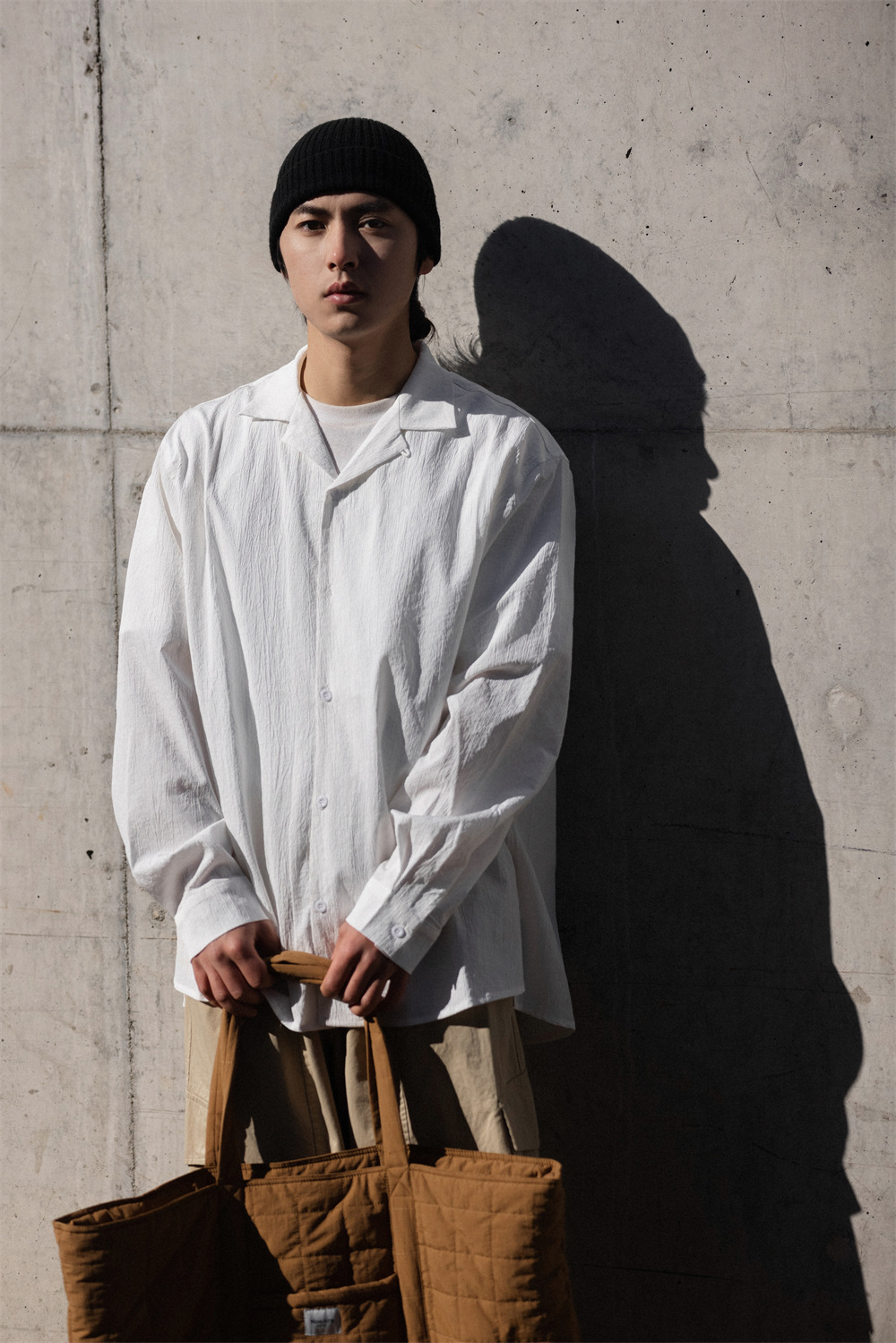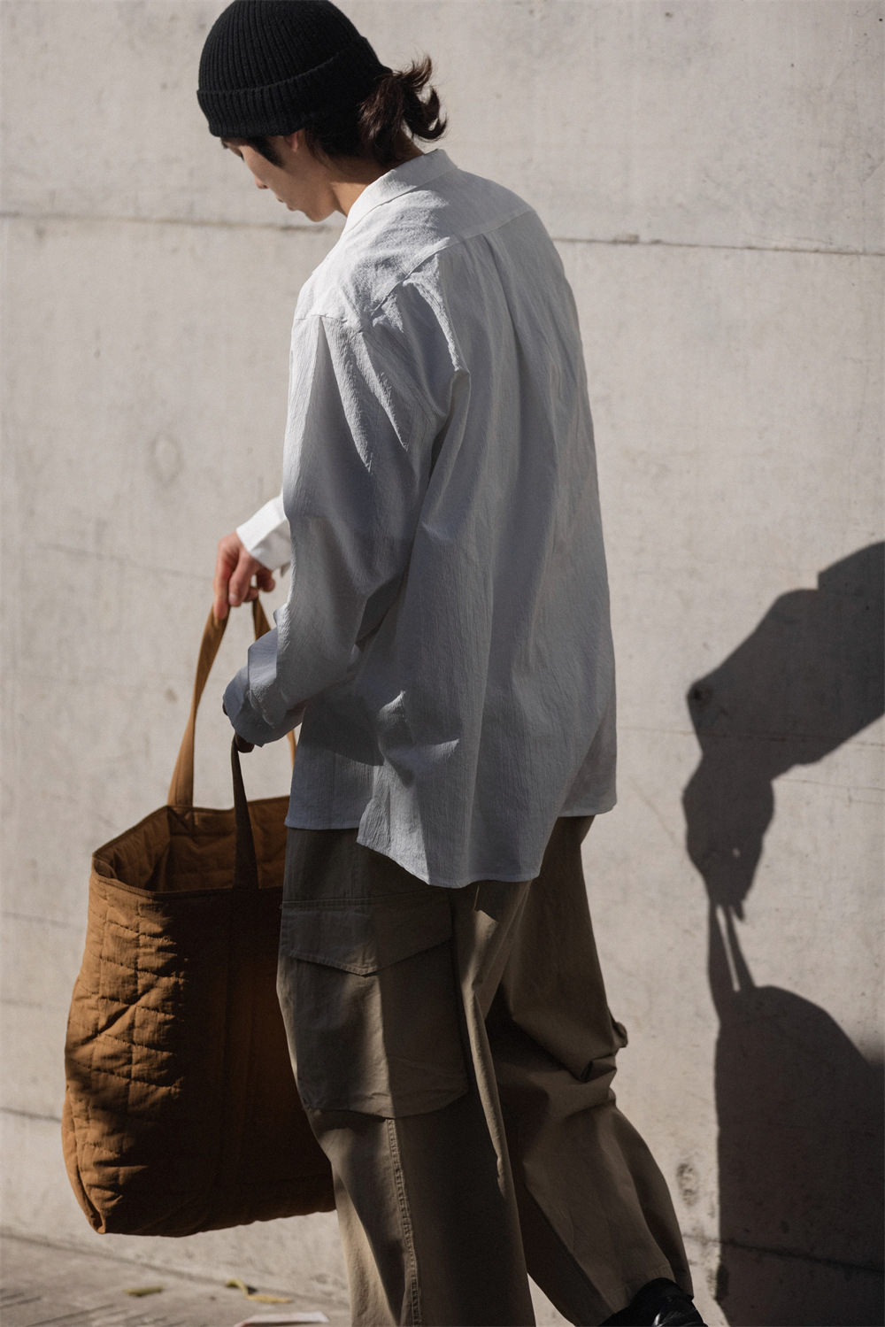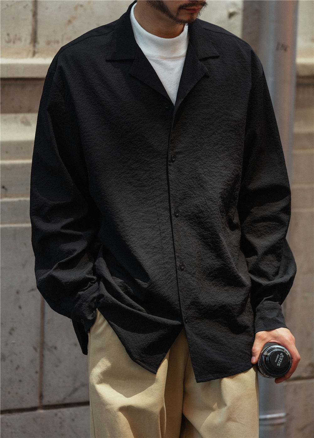 일본 복고풍 봄과 가을 도시 화이트 셔츠 남성 디자인 감각 느슨한 쿠바 옷깃 긴팔 셔츠 재킷스토어 가기