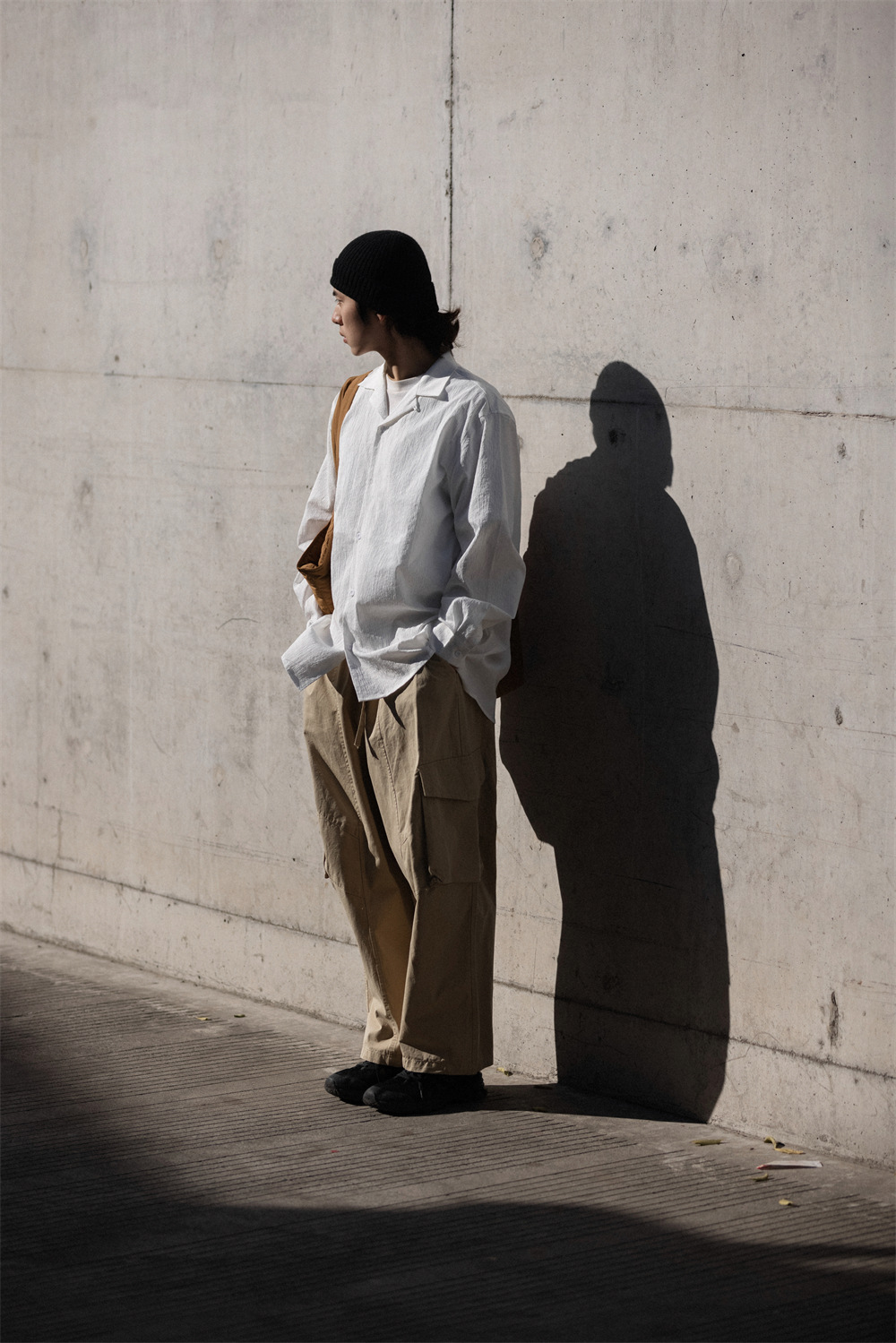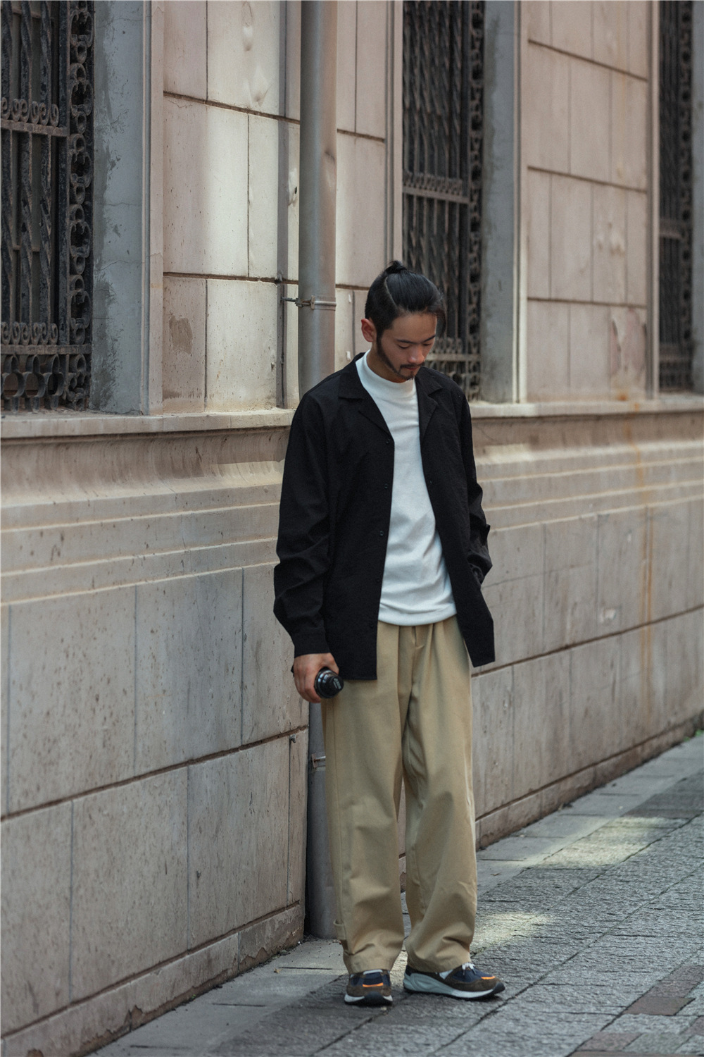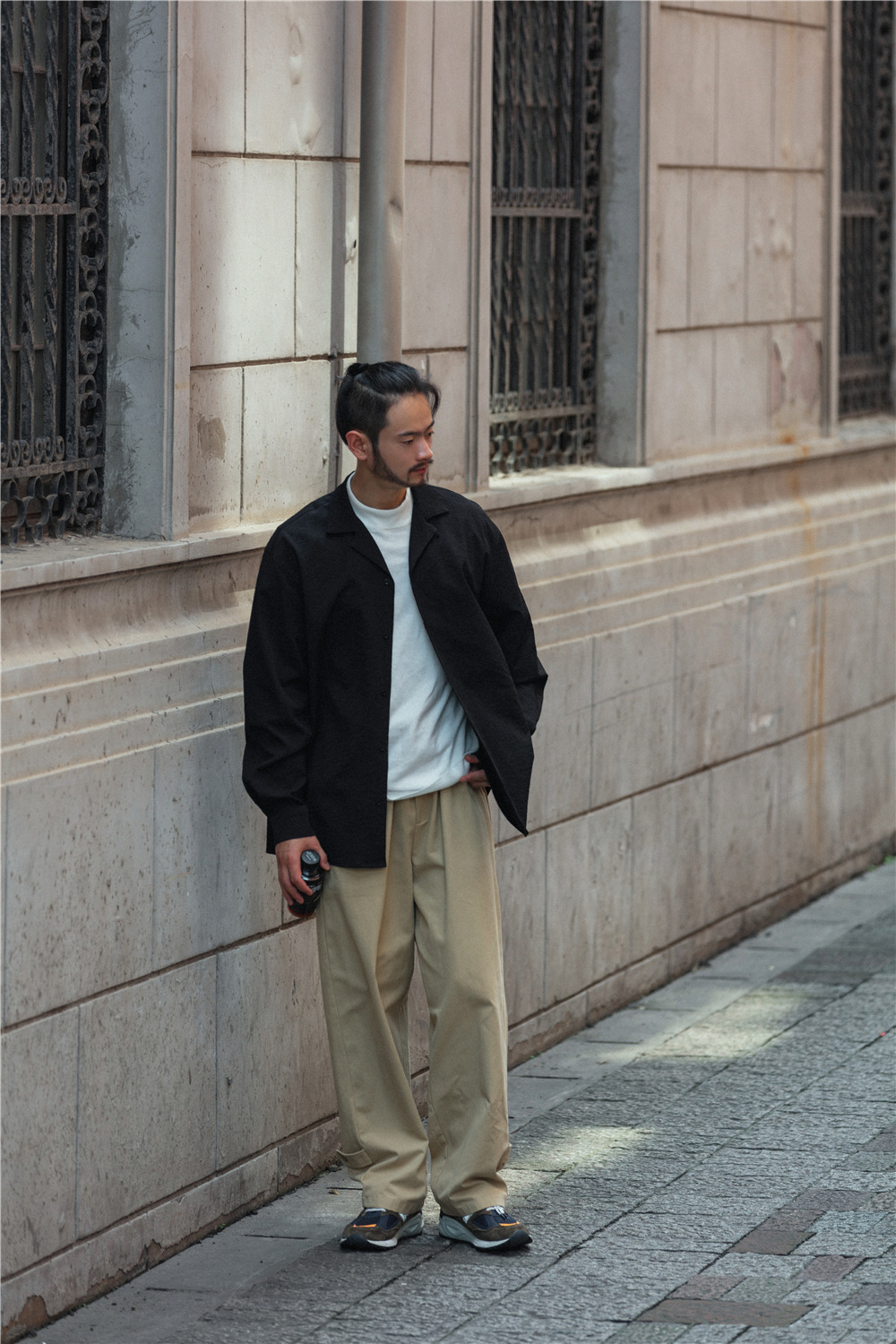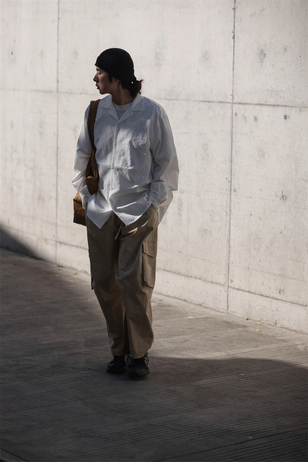 일본 복고풍 봄과 가을 도시 화이트 셔츠 남성 디자인 감각 느슨한 쿠바 옷깃 긴팔 셔츠 재킷스토어 가기