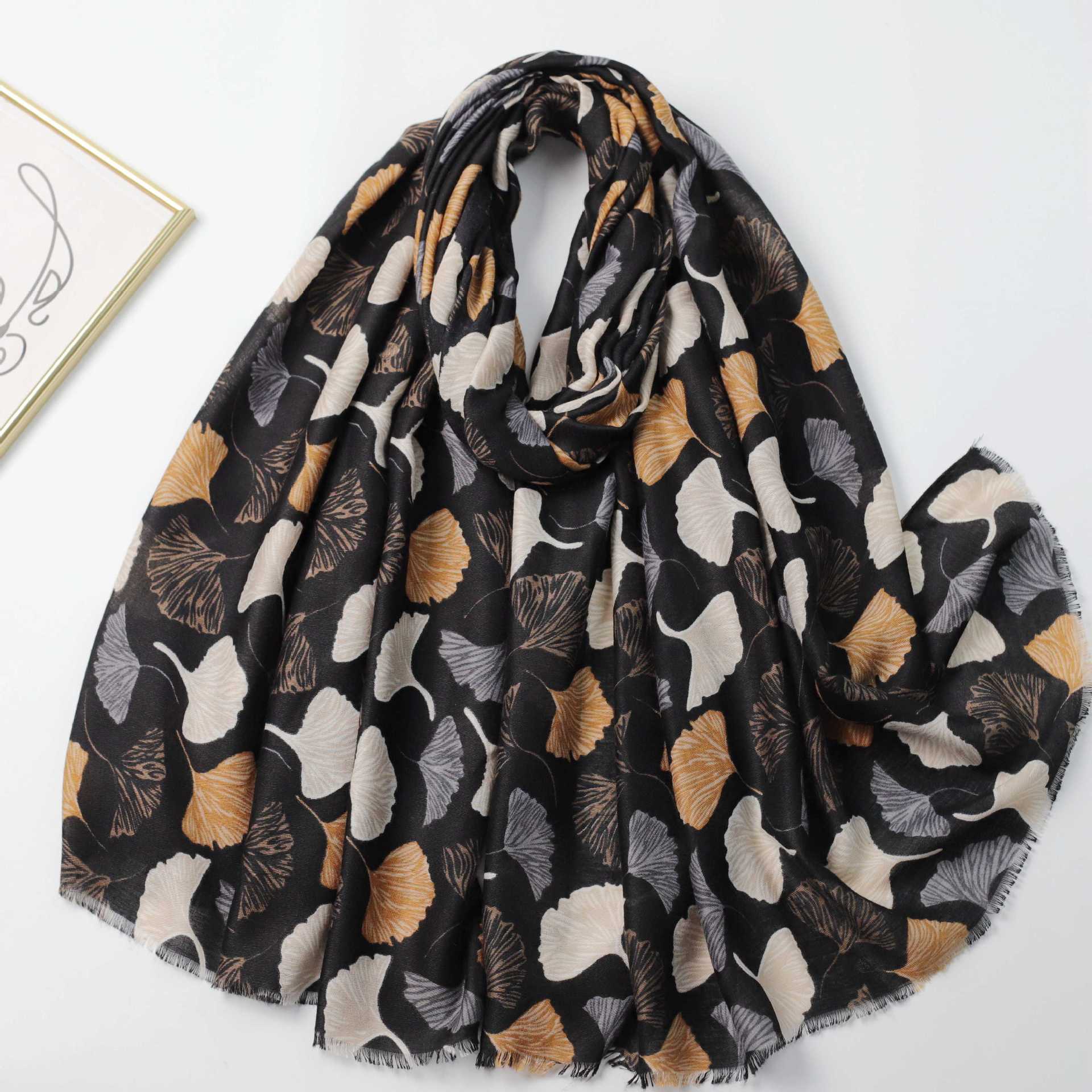 공장 판매 해외 무역 국경 간 라이브 방송 컬러 은행나무 인쇄 스카프 가을과 겨울 모든 경기 따뜻한 스카프 목도리 남성과 여성