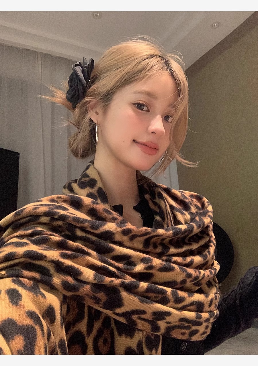 가을과 겨울 광장 같은 스타일 틈새 디자인 레오파드 무늬 긴 스카프 여성 아메리칸 스타일 핫 스타일 유행 목도리 트렌디