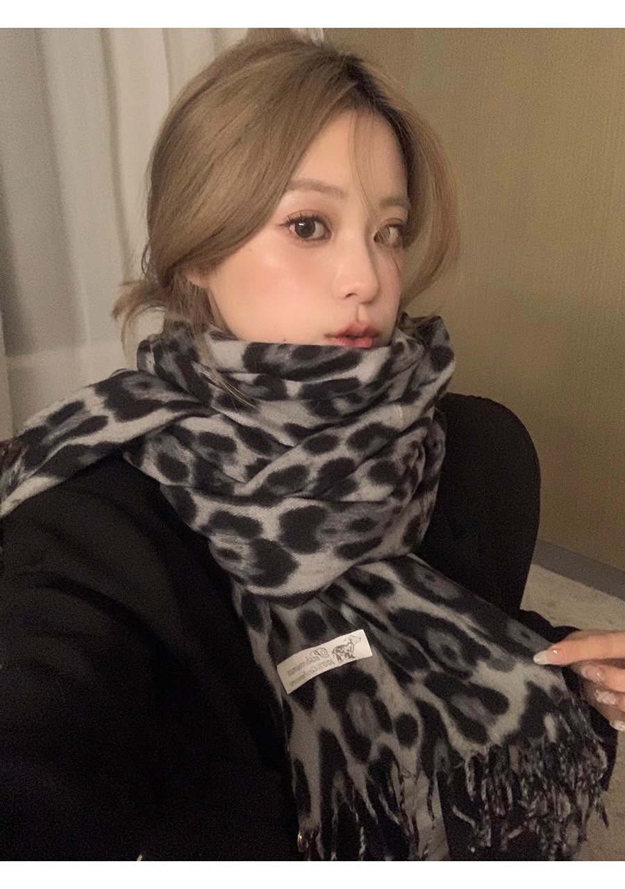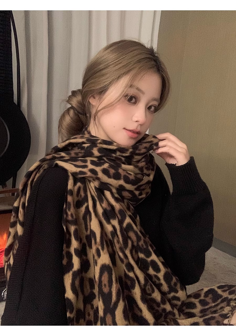 가을과 겨울 광장 같은 스타일 틈새 디자인 레오파드 무늬 긴 스카프 여성 아메리칸 스타일 핫 스타일 유행 목도리 트렌디스토어 가기
