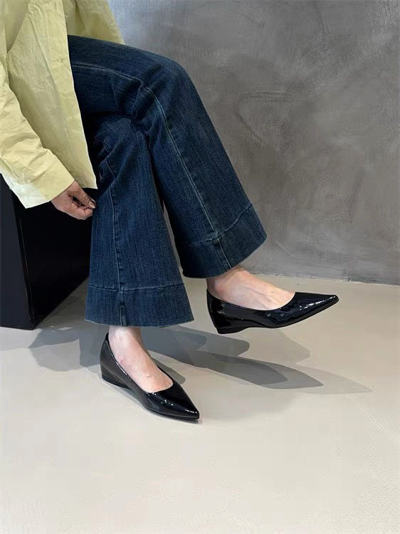 작은 프랑스 뾰족한 높이 5CM 얕은 입 외부 착용 2024 여성을위한 새로운 우아한 슬립 온 패션 신발스토어 가기