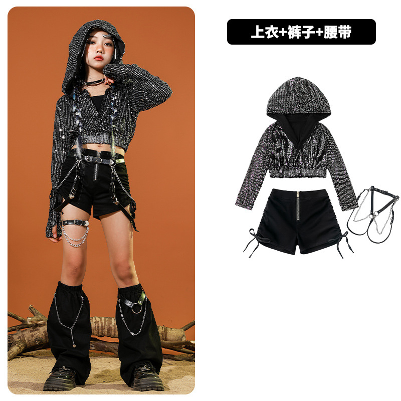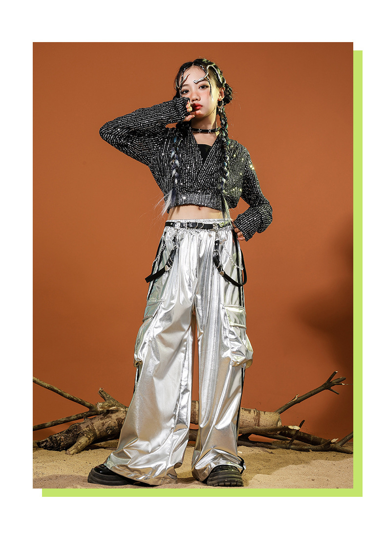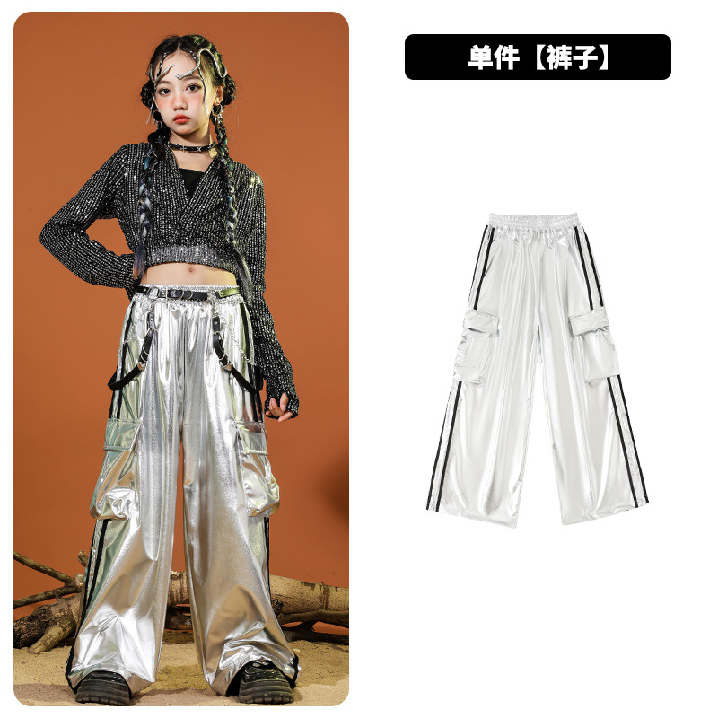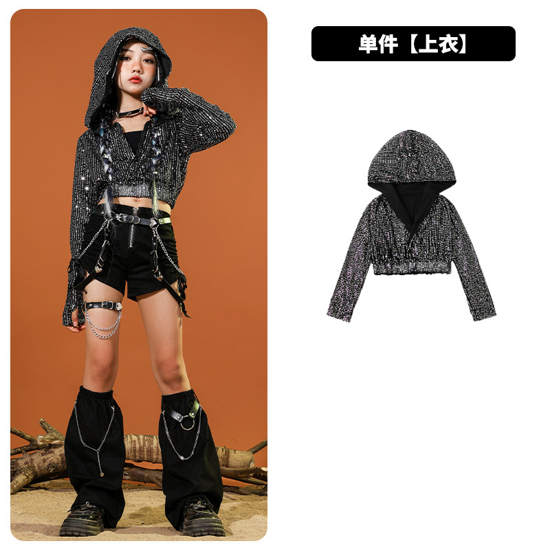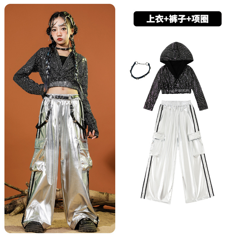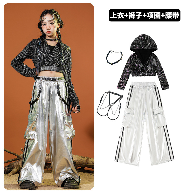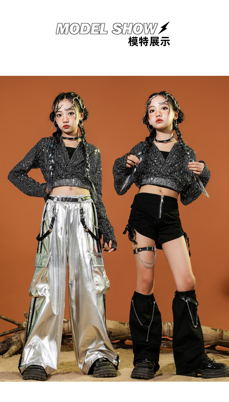 어린이 재즈 댄스 의상 소녀 흑백 실버 스팽글 쇼 재즈 댄스 의상 어린이 스트리트 댄스 의상 여성스토어 가기