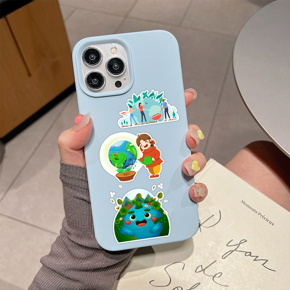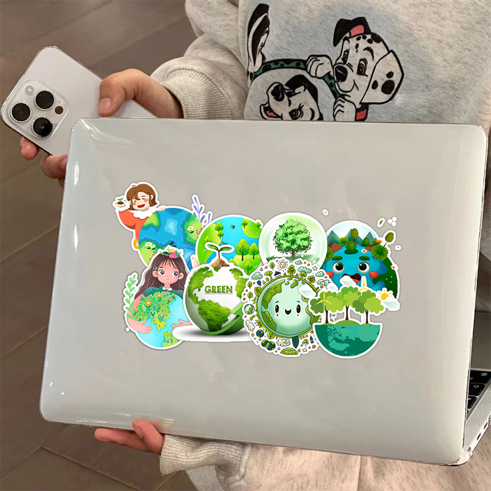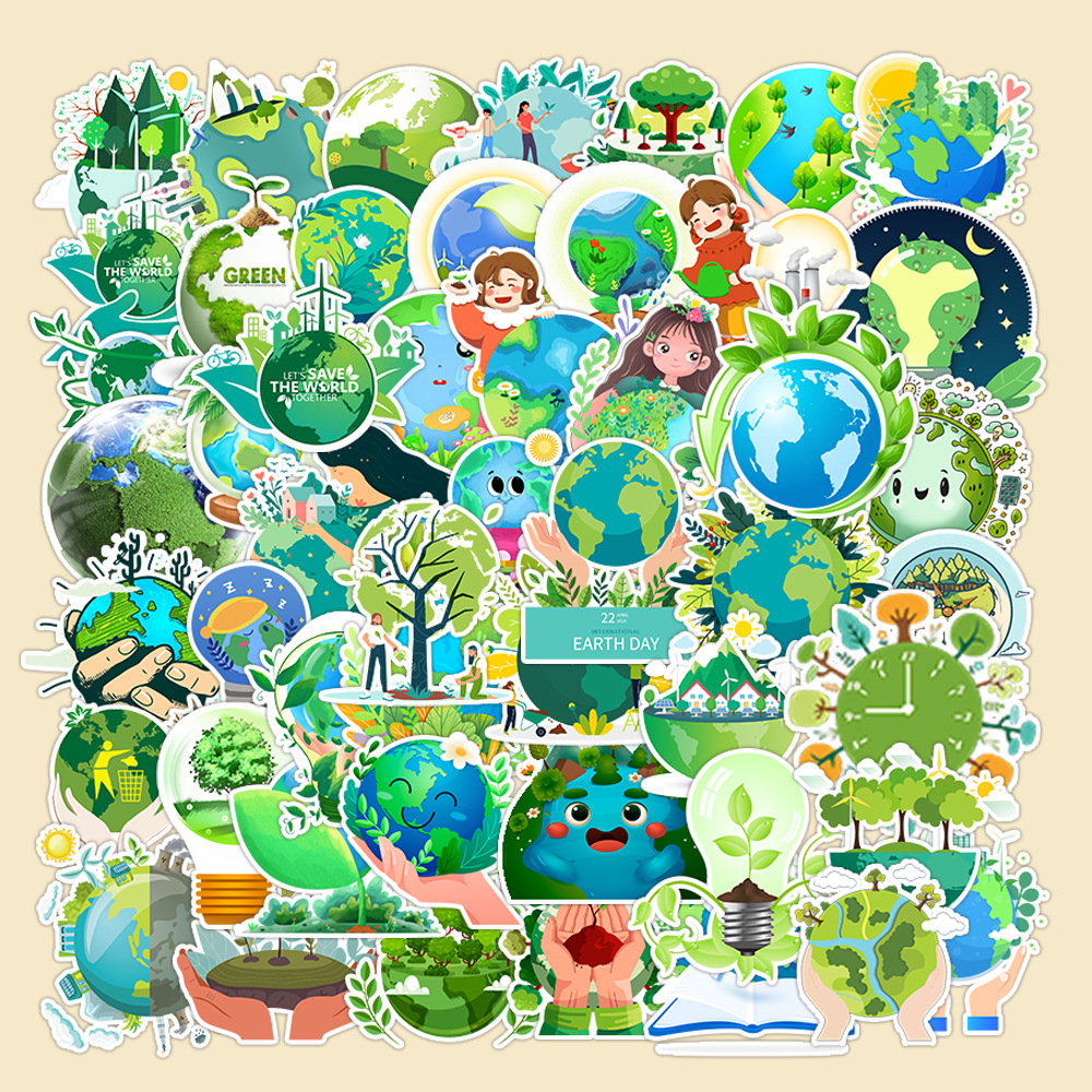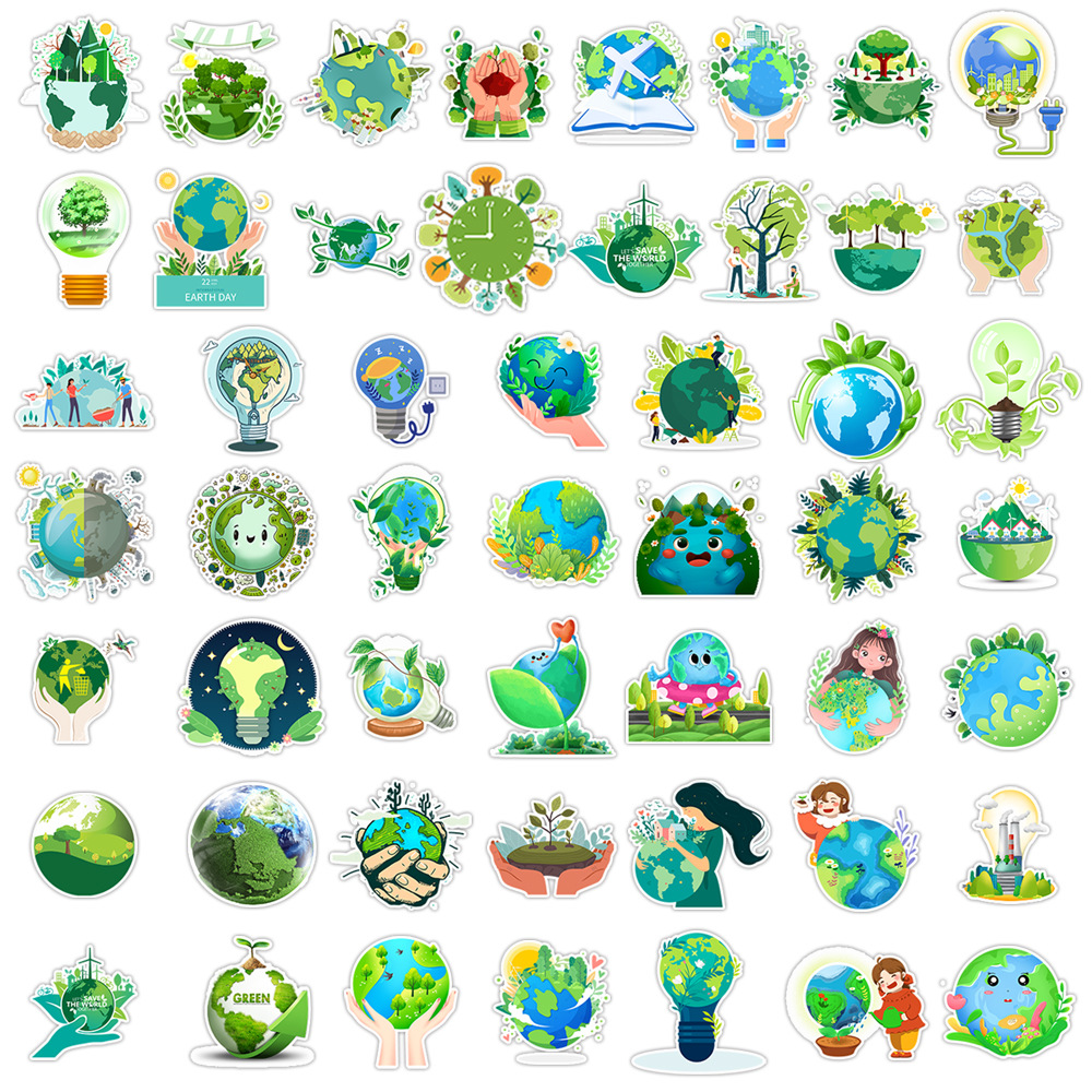 50 녹색 생태 환경 보호 작은 신선한 낙서 스티커 가방 창조적 인 컵 수하물 컴퓨터 문구 스티커