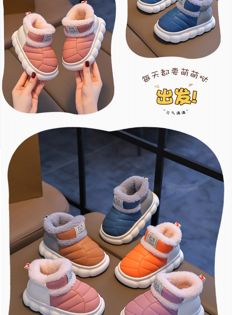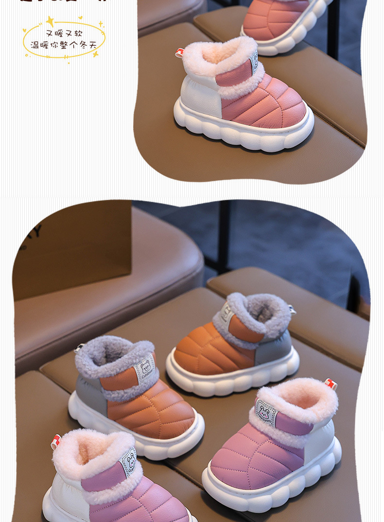 어린이 면화 슬리퍼 소녀 PU 가죽 방수 겨울 소년 미끄럼 방지 아기 겉옷 홈 신발 부모-자식 아기 면화 신발스토어 가기