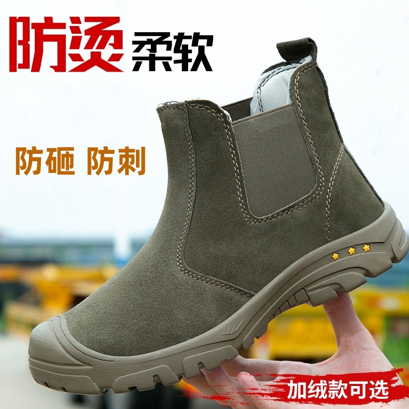하이 탑 남성용 스매싱 방지 및 찌르기 방지 바오 터우 작업 신발 용접기의 1 단계 스웨이드 건설 현장 노동 보호 신발스토어 가기