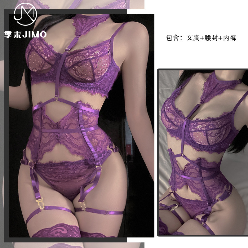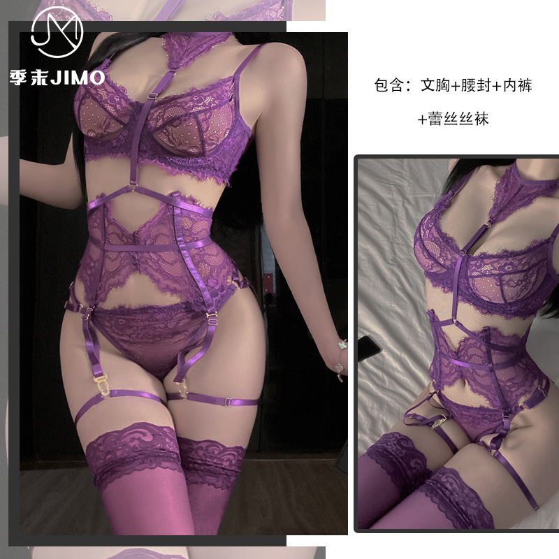 Season End New Style Heavy Industry 다크 퍼플 Waist Fishbone 수집 섹시한 브래지어 세트 섹시한 란제리 여성용 스트랩 유혹스토어 가기