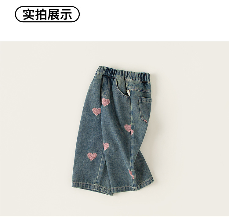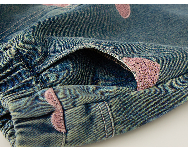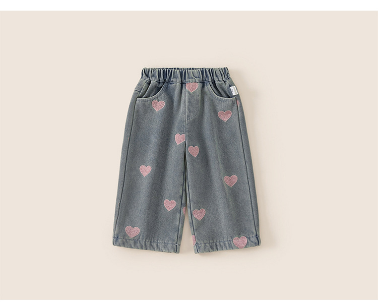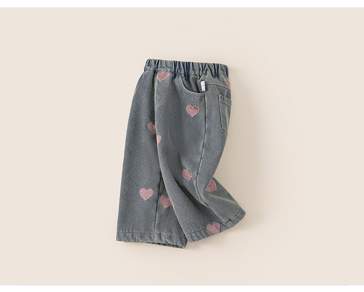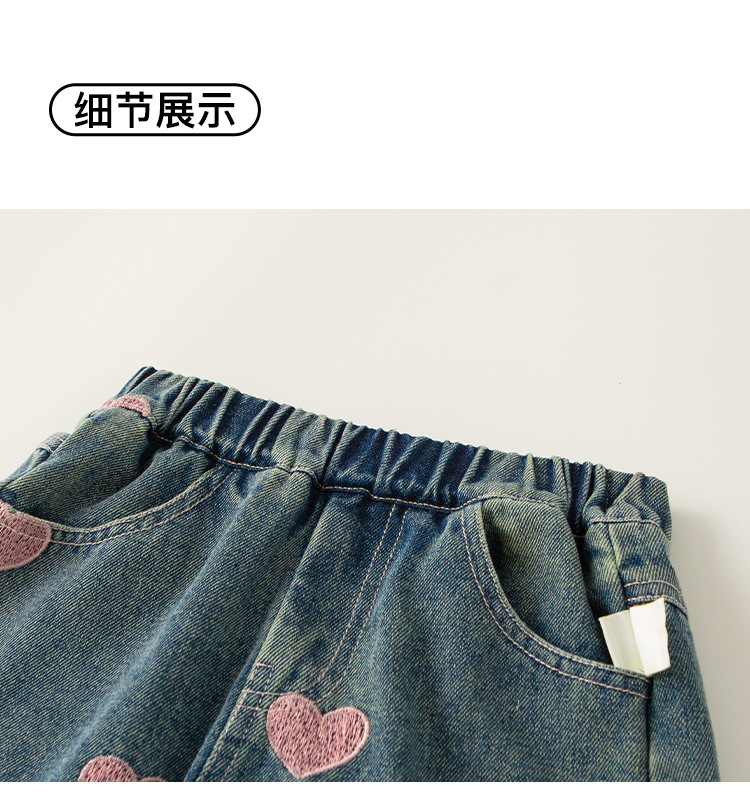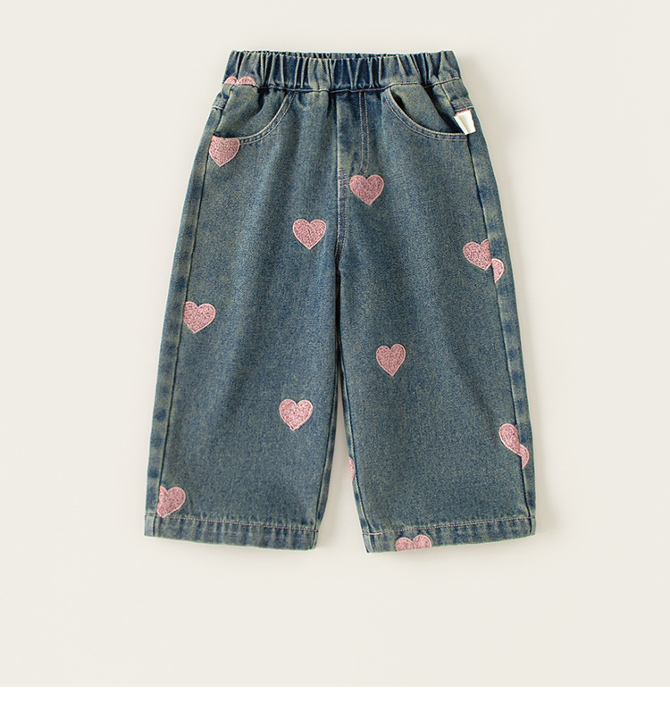 유바오 아동복 여아 사랑 청바지 가을 신식 소녀 와이드 레그 스트레이트 다리 바지 한국 스타일 느슨한 바지스토어 가기