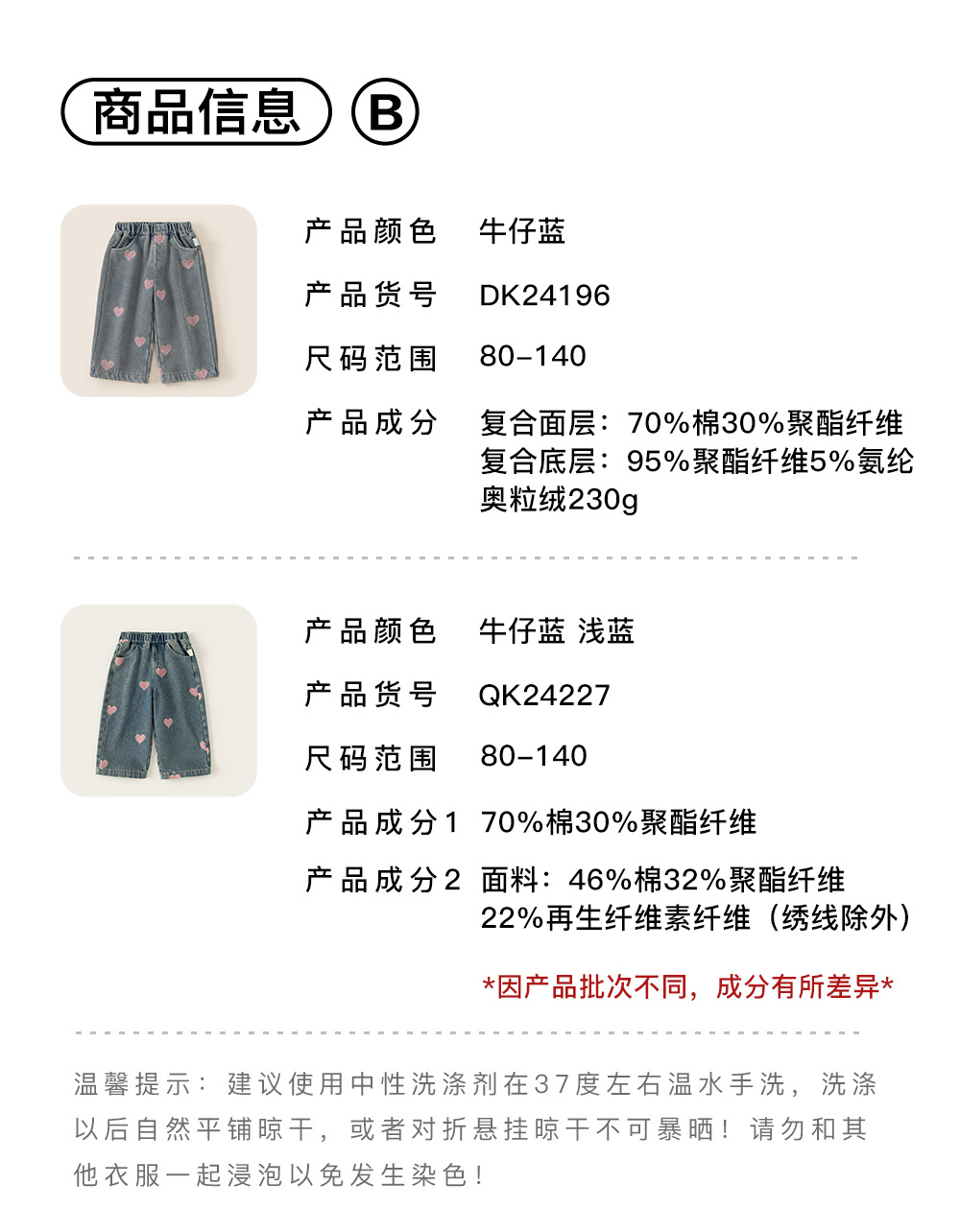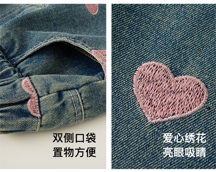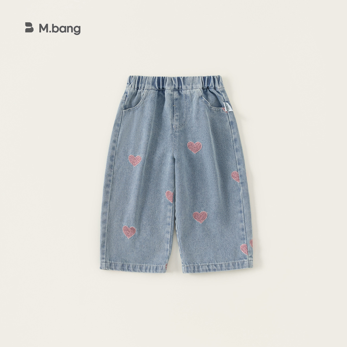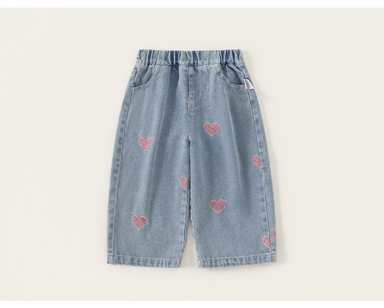 유바오 아동복 여아 사랑 청바지 가을 신식 소녀 와이드 레그 스트레이트 다리 바지 한국 스타일 느슨한 바지스토어 가기