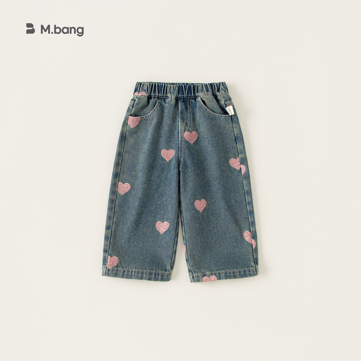 유바오 아동복 여아 사랑 청바지 가을 신식 소녀 와이드 레그 스트레이트 다리 바지 한국 스타일 느슨한 바지