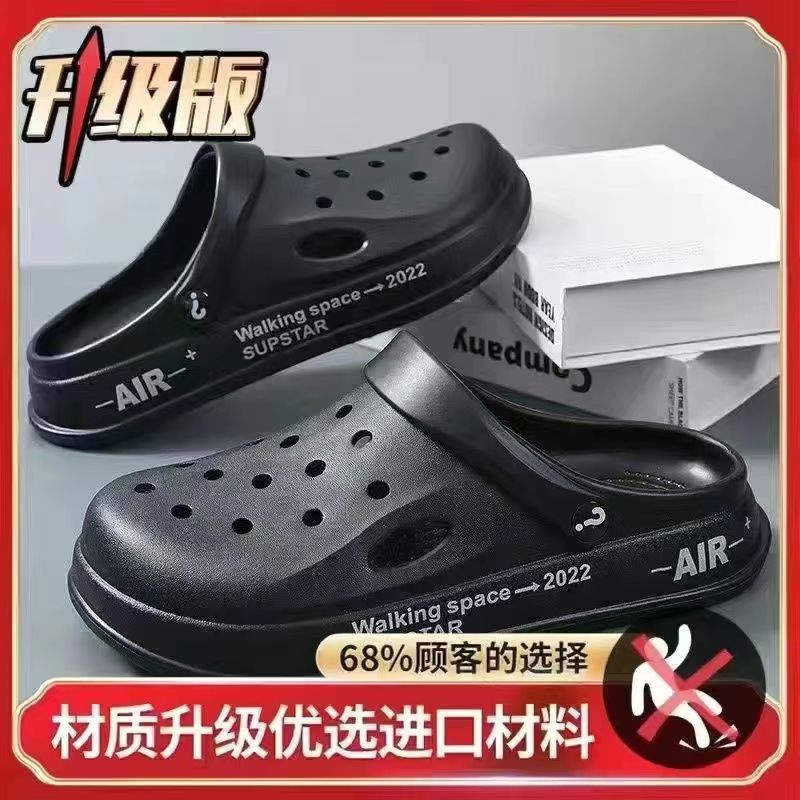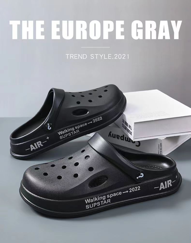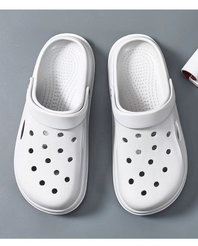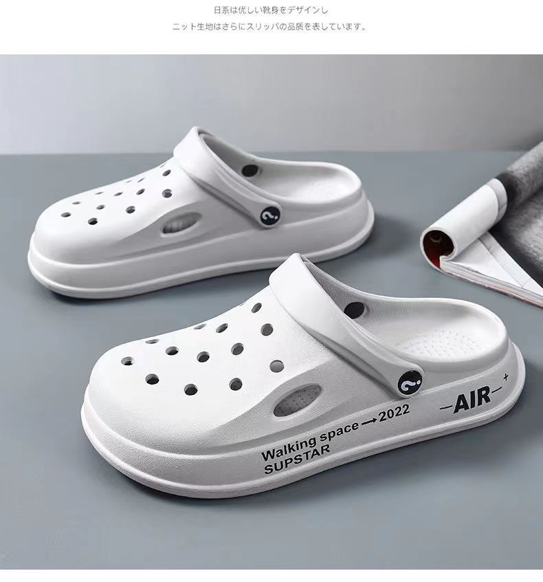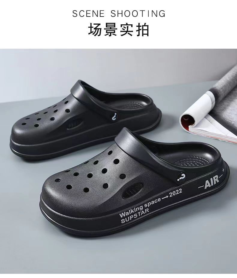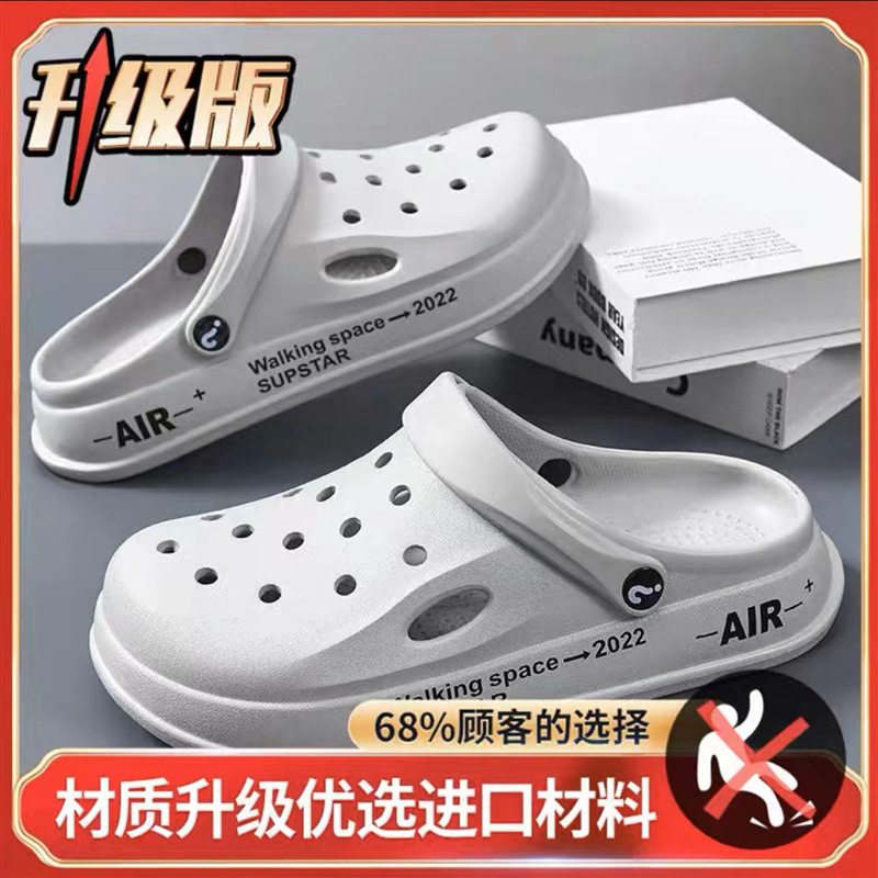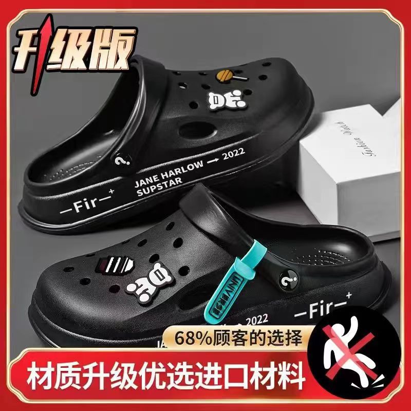 남성용 Crocs 2023 새로운 미끄럼 방지 두꺼운 밑창 캐주얼 겉옷 한국식 비치 소프트 밑창 남성용 간호사 발가락 슬리퍼