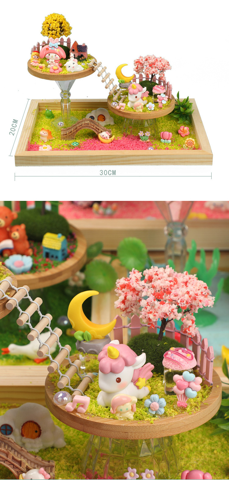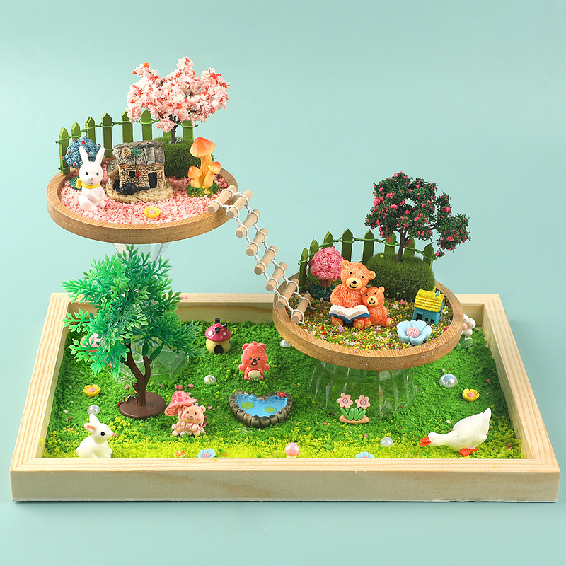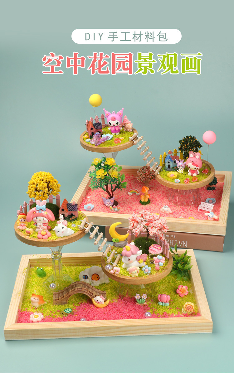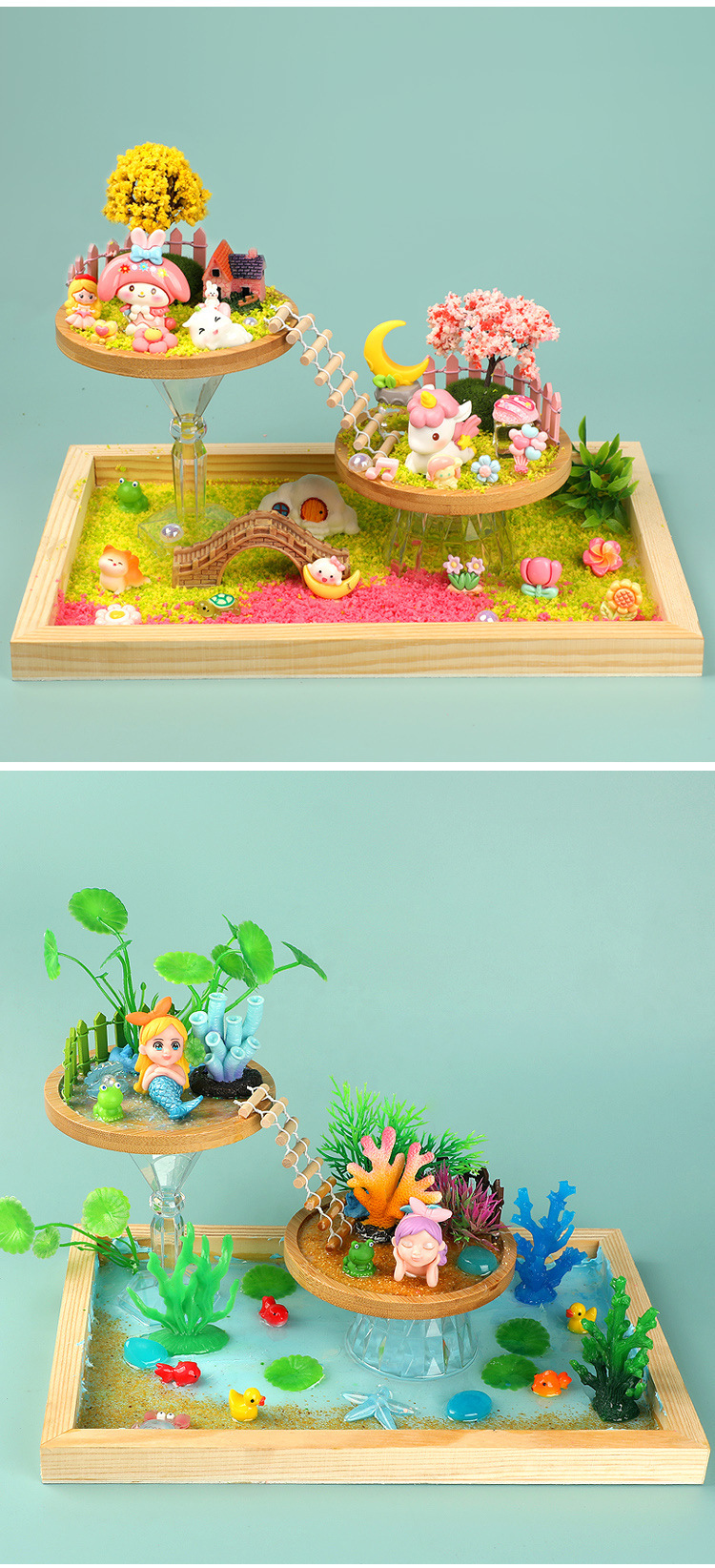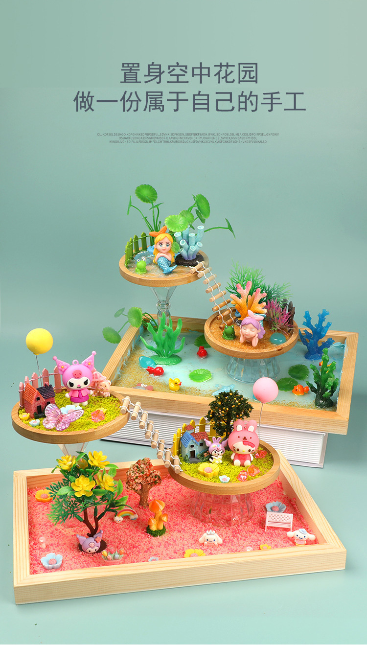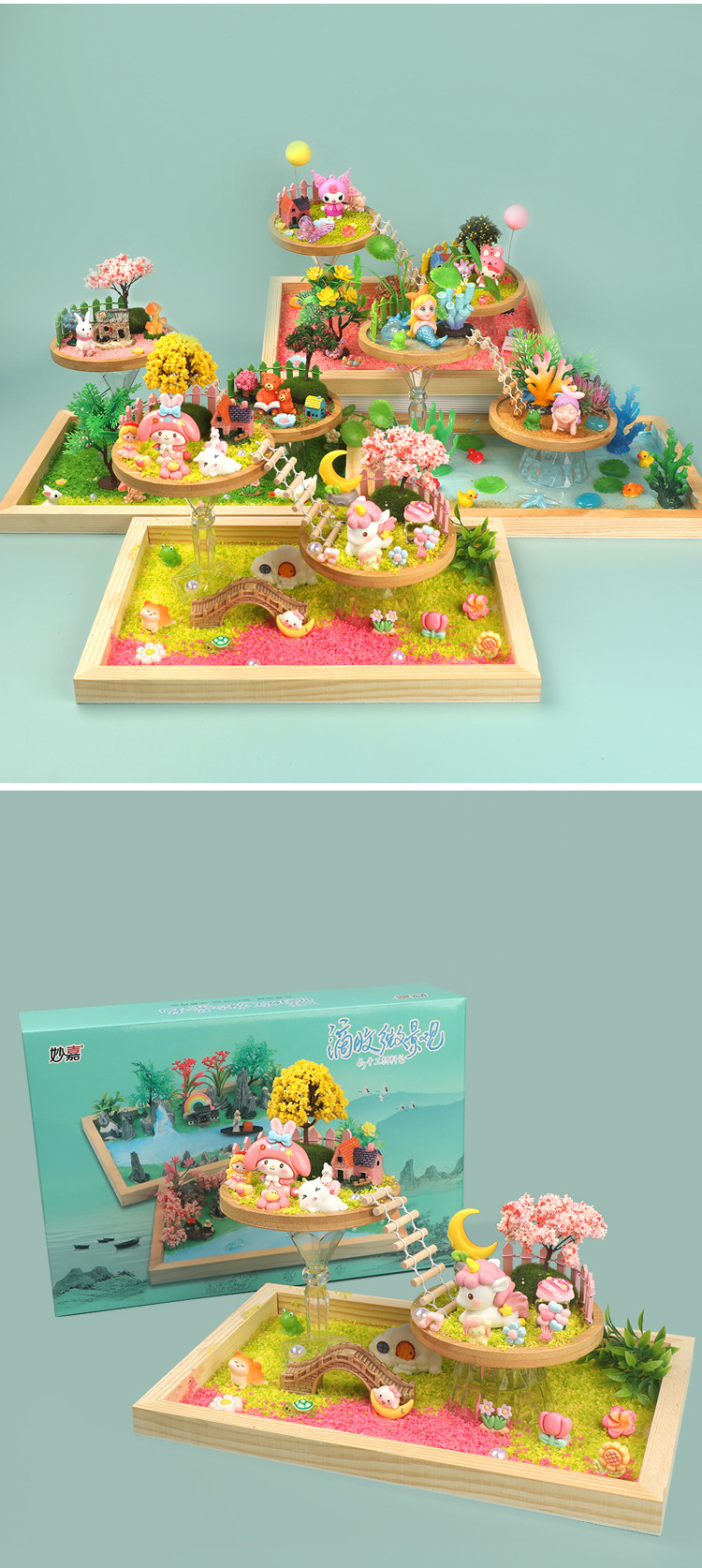 매달린 정원 접착제 드롭 마이크로 풍경 더블 레이어 마이크로 장면 모래 드로잉 어린이 수제 DIY 소재 가방 교육 장난감스토어 가기