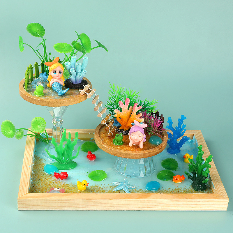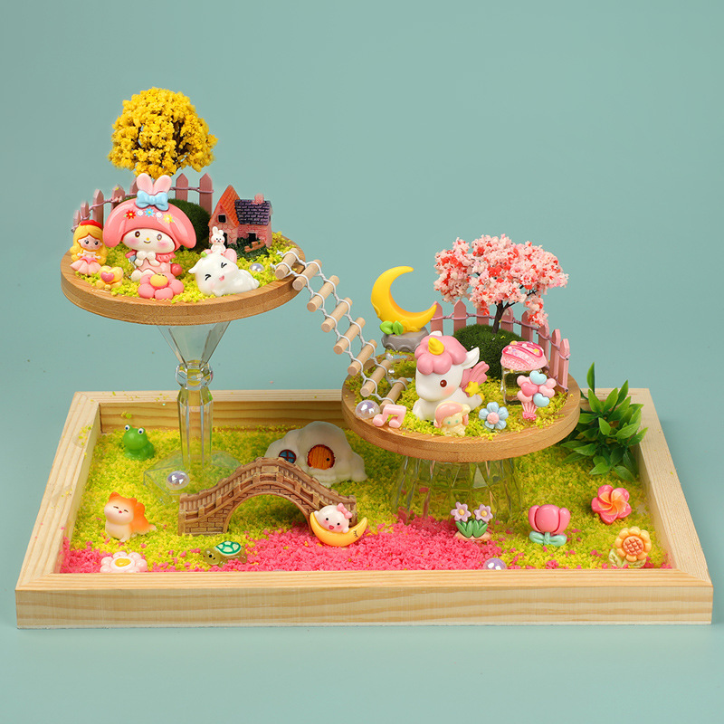 매달린 정원 접착제 드롭 마이크로 풍경 더블 레이어 마이크로 장면 모래 드로잉 어린이 수제 DIY 소재 가방 교육 장난감