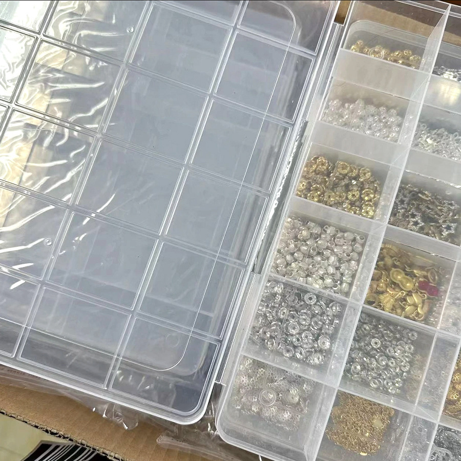 대형 24 구획 저장 상자 카드 슬롯 고정 구획 대용량 유리 구슬 diy 액세서리 보석 투명 전체