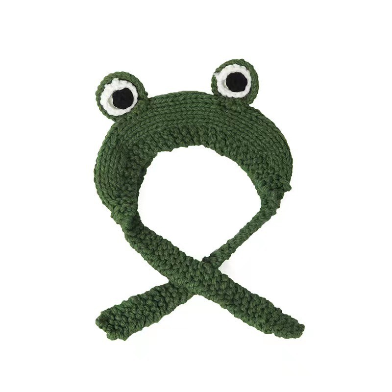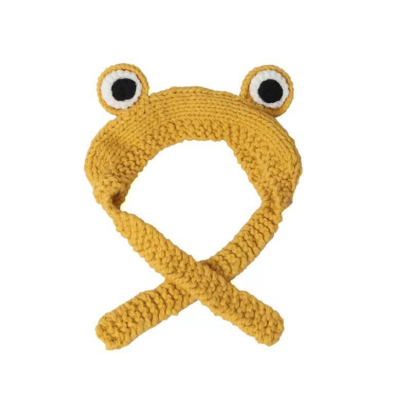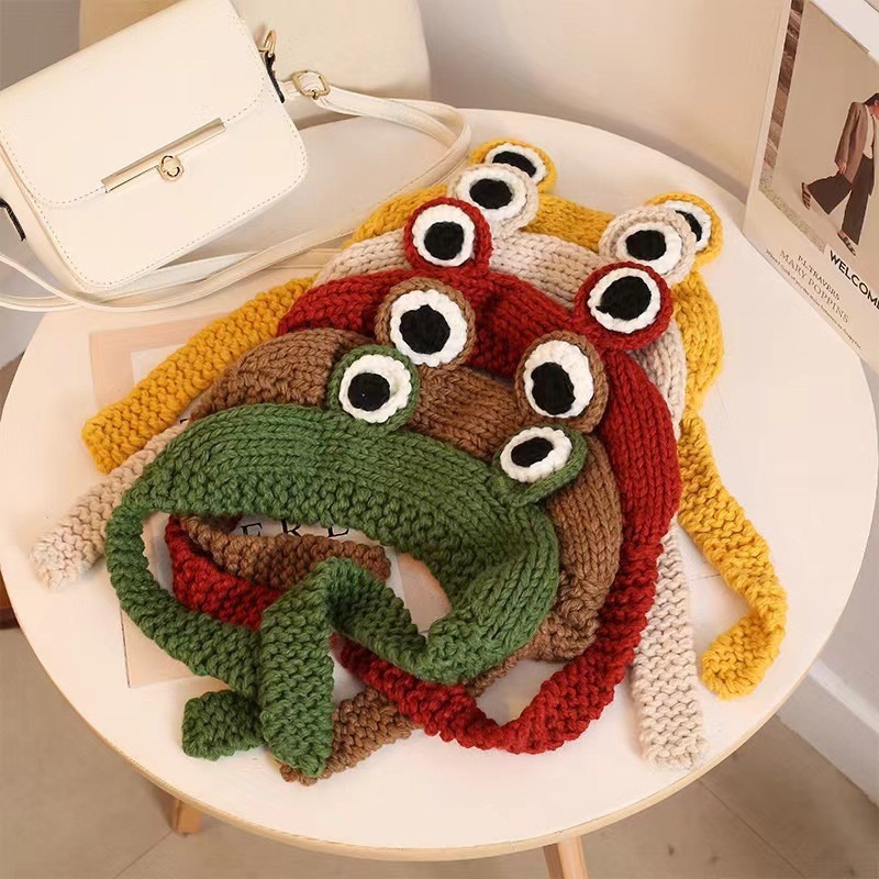 개구리 니트 양모 모자 가을과 겨울 한국 스타일 유행 짠 헤드 기어 귀여운 개구리 큰 눈 겨울 귀 보호 모자