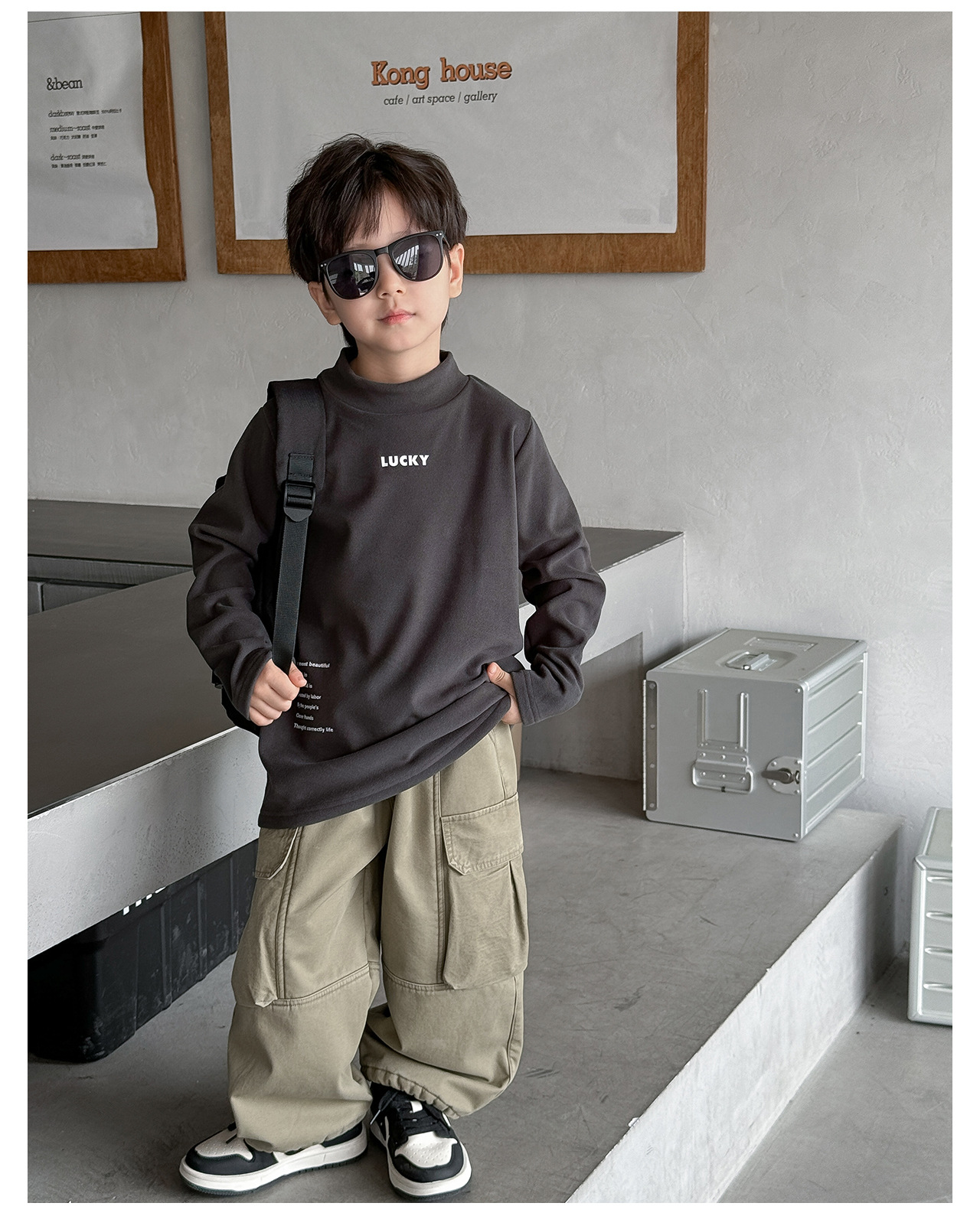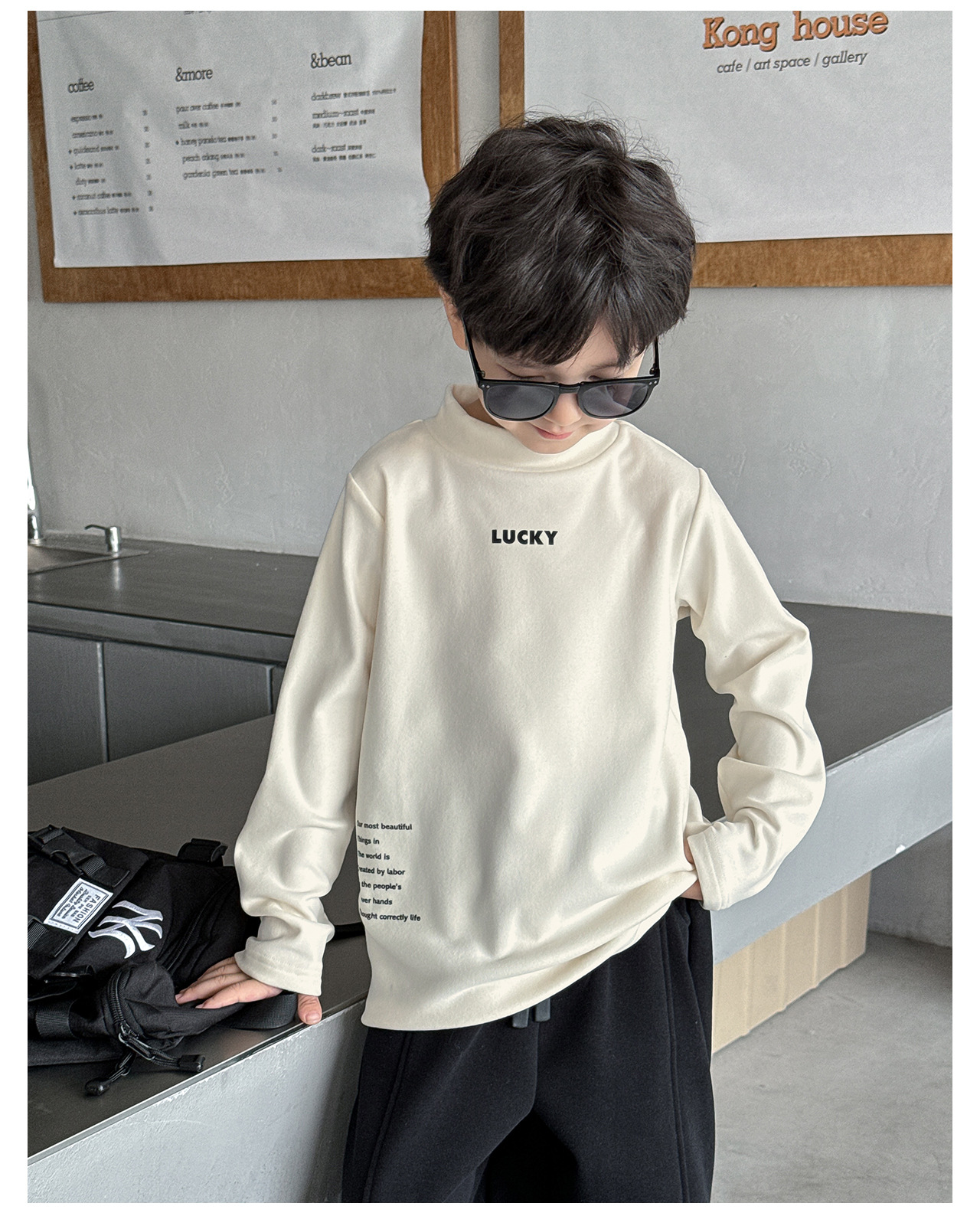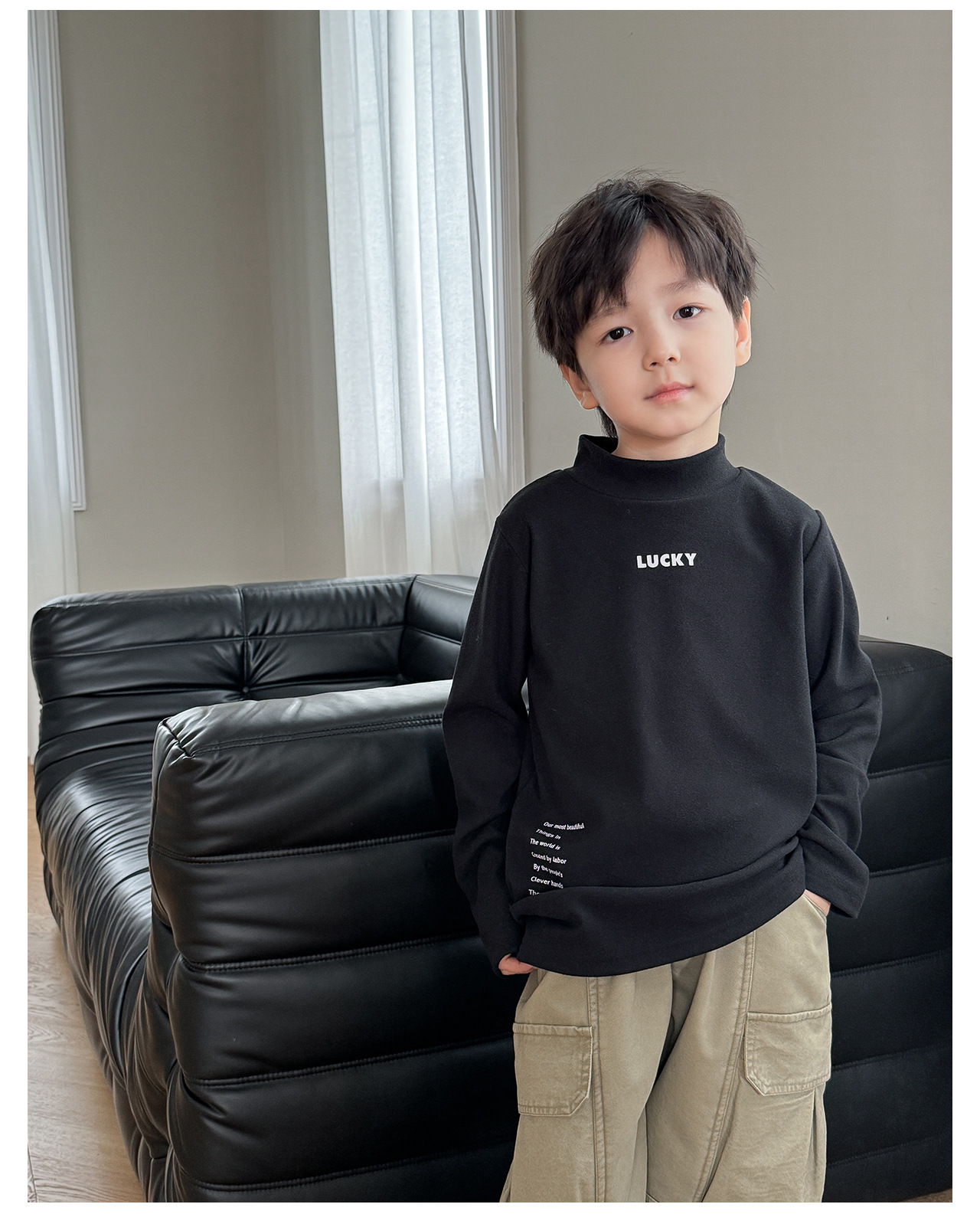어린이 쿨 2024 어린이 겨울 후저우 질리 아동복 올 매치 레터 티셔츠 하프 하이 칼라 벨벳 보이즈 베이스 셔츠스토어 가기