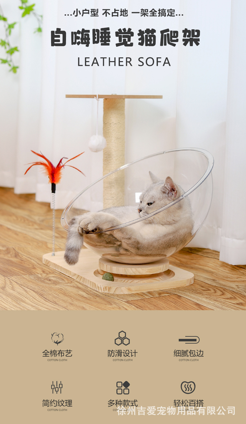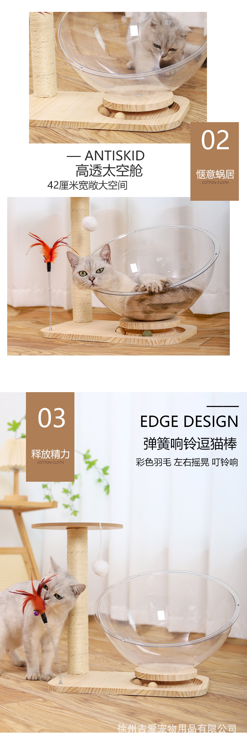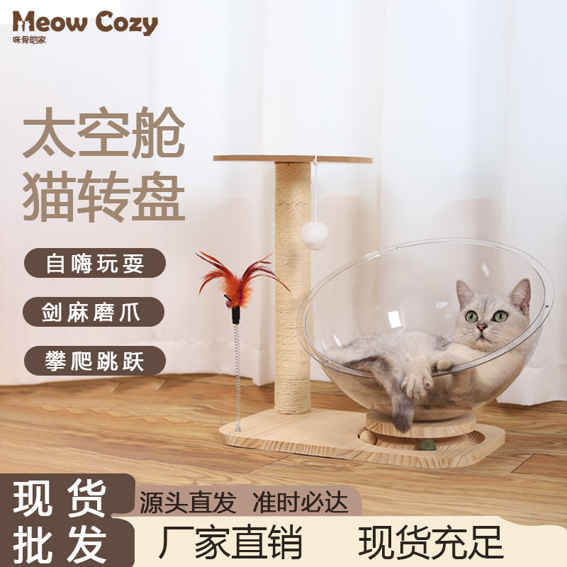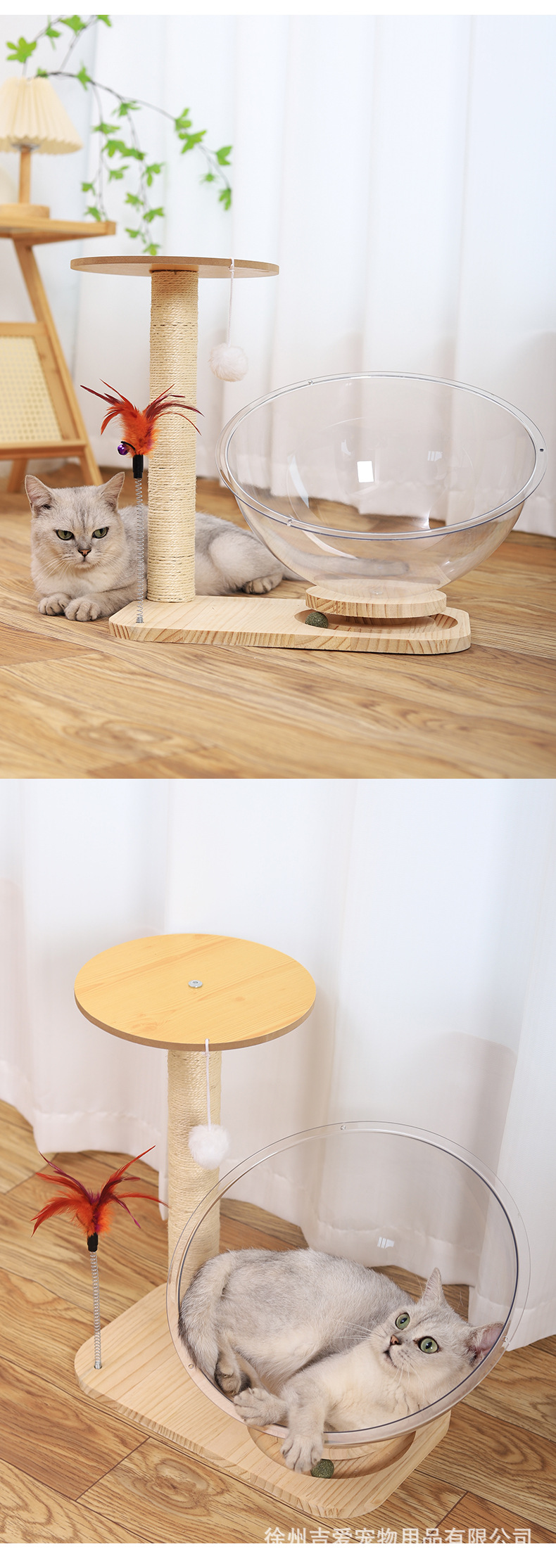 우주 캡슐 아크릴 고양이 솔리드 우드 턴테이블 고양이 둥지 시스 마 칼럼 고양이 긁는 보드 수면 및 올인원 포시즌 유니버설 재고