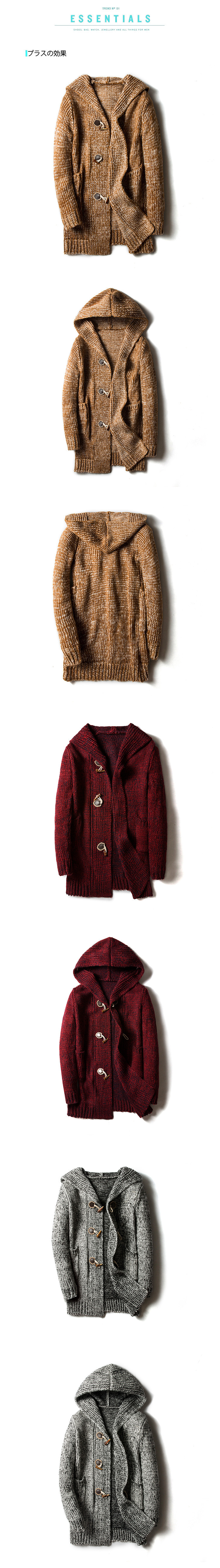 대외 무역 새로운 남성 긴 후드 카디건 스웨터 두꺼운 패션 혼 버클 플러스 사이즈 캐주얼 니트 코트