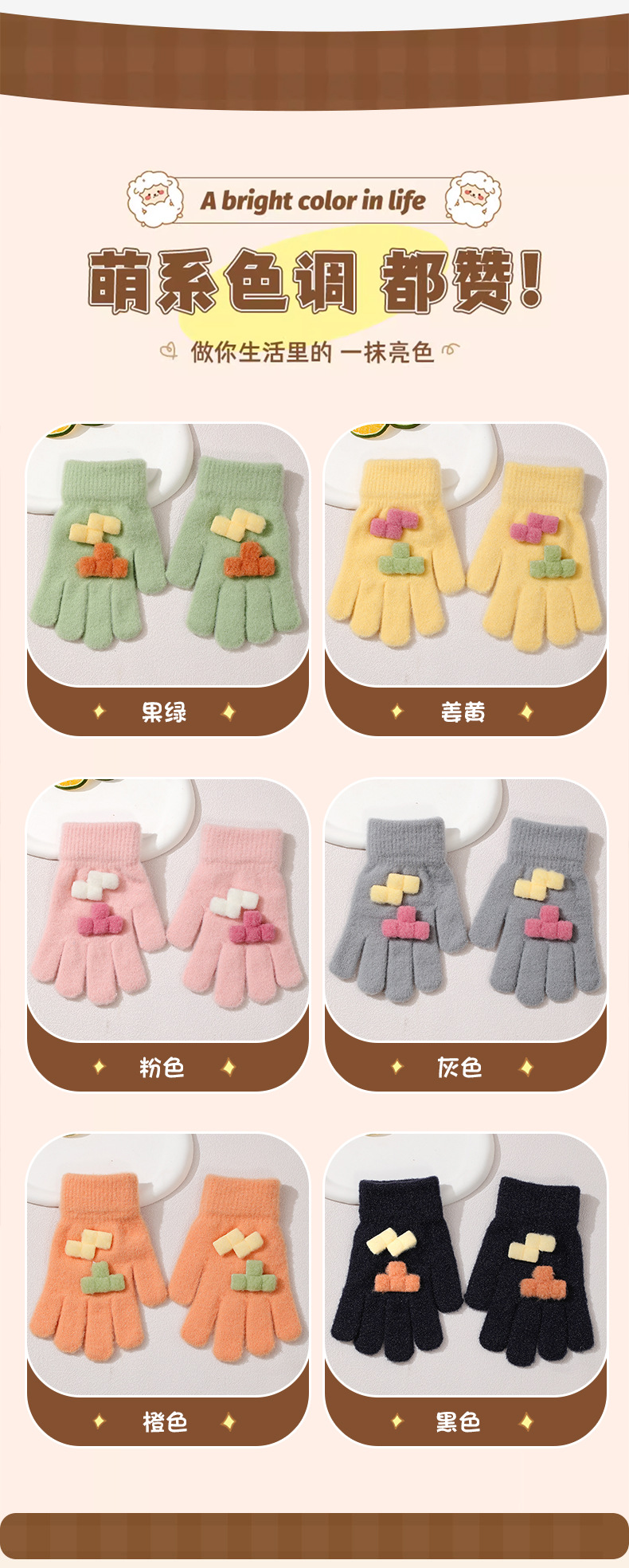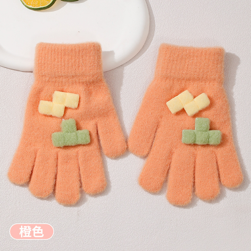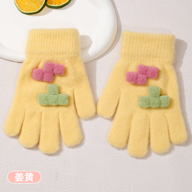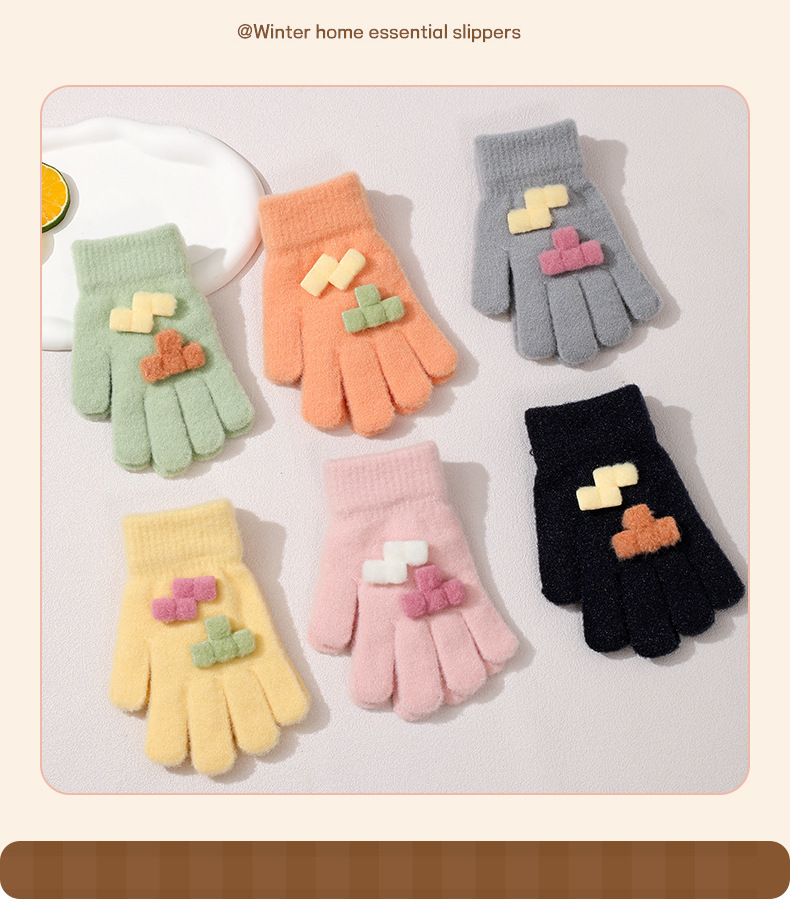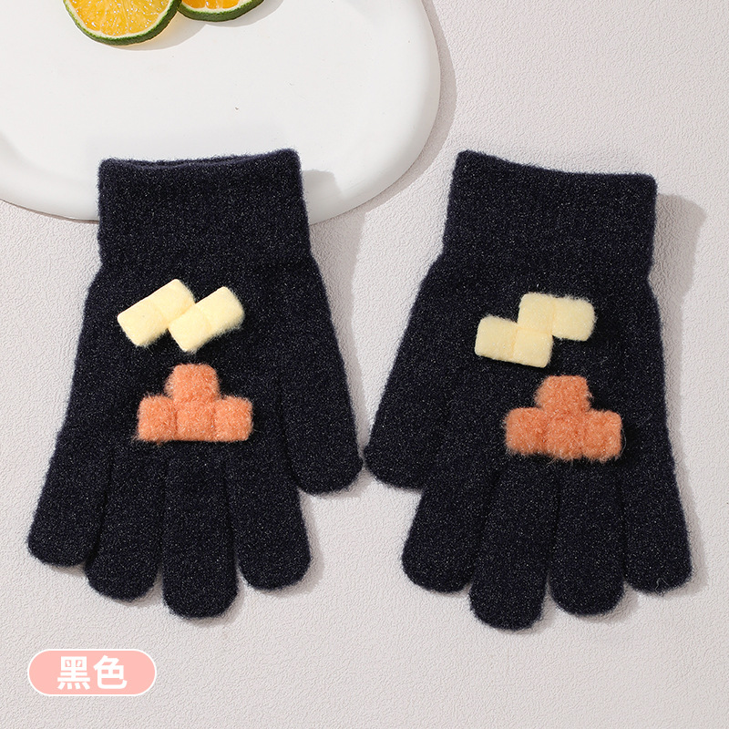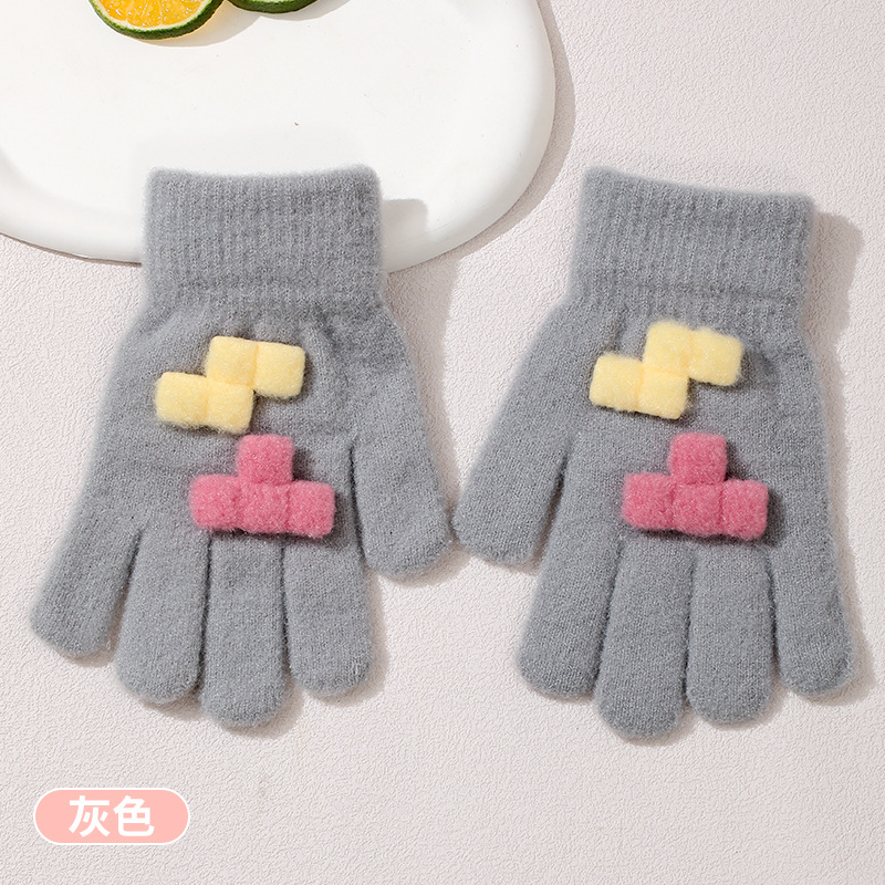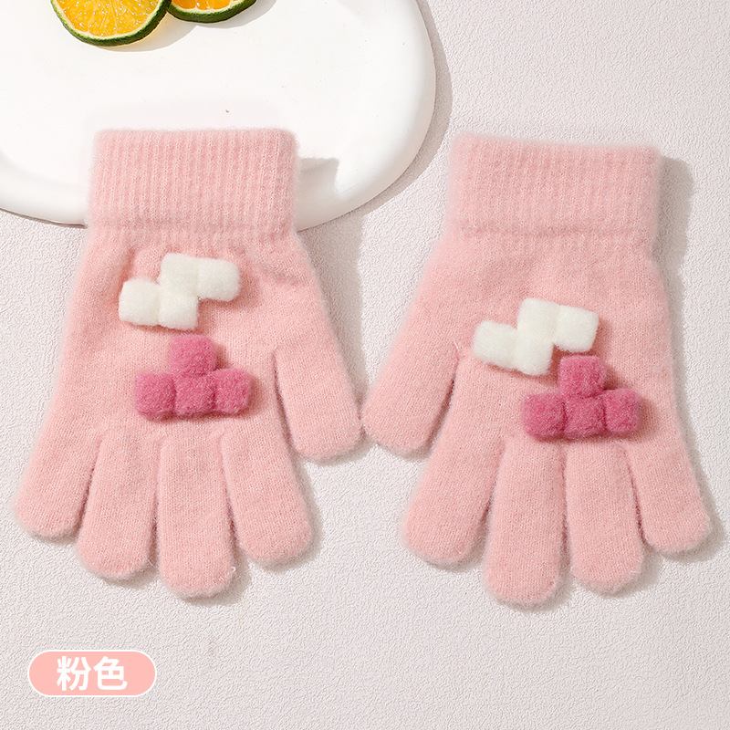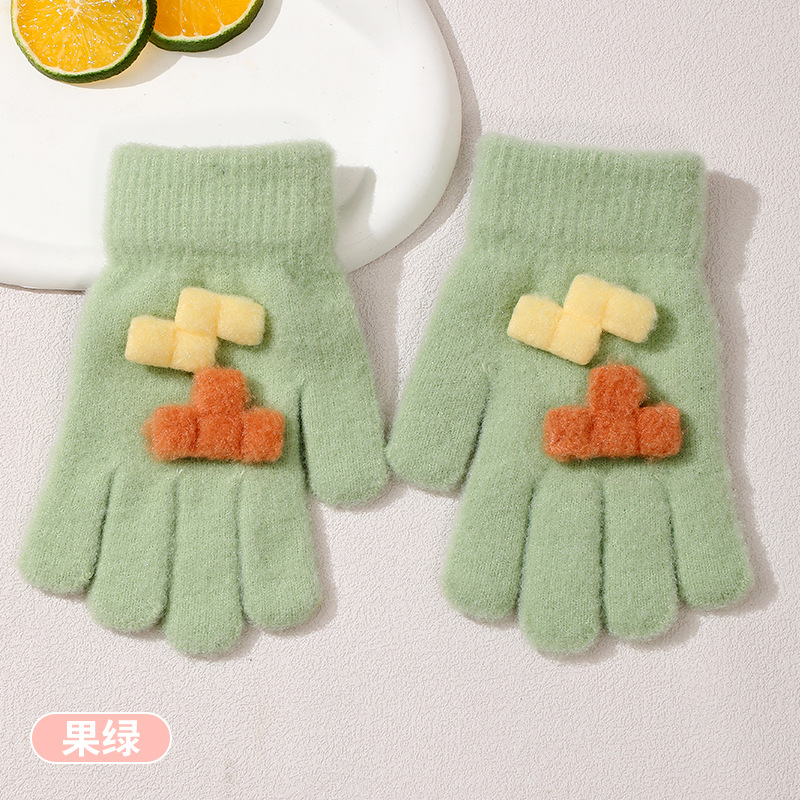 겨울 새로운 니트 두꺼운 감기형 다섯 손가락 귀여운 8-12 소년 소녀 아기 양모 어린이 장갑 야외 따뜻한스토어 가기
