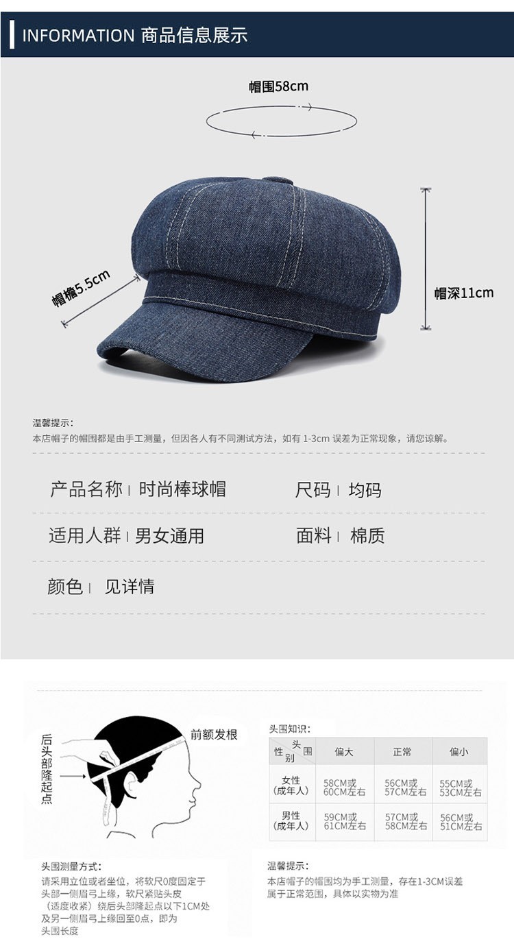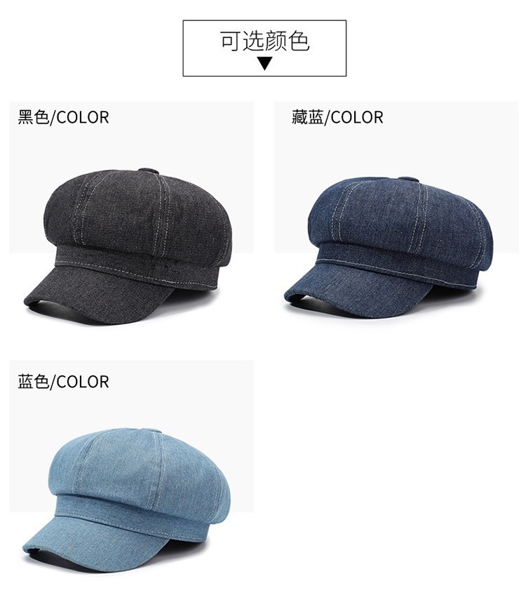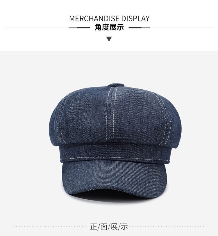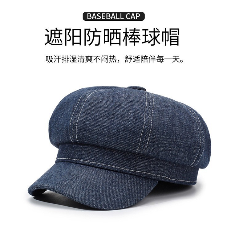 데님 베레 여성용 봄 레트로 팔각형 캡 페인터 캡 여성용 대형 클라우드 캡 쇼케이스 얼굴 작은 차양 모자스토어 가기