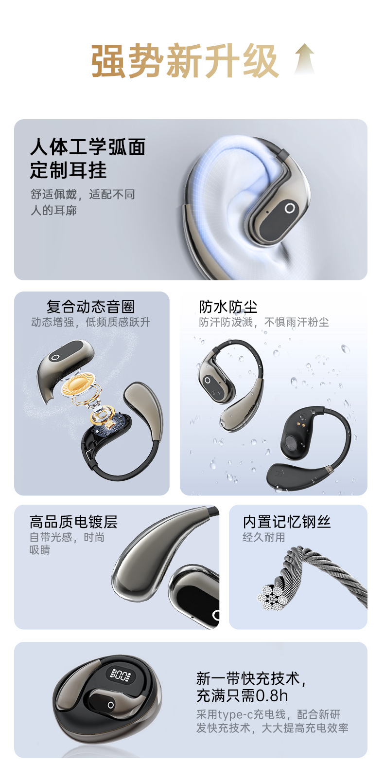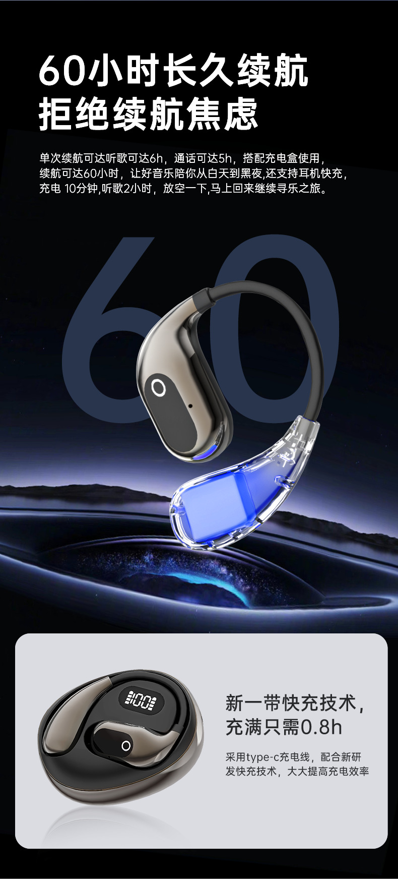 새로운 지능형 AI 번역 XG99 블루투스 헤드셋 긴 배터리 수명 OWS는 귀에 매달려 귀 헤드셋에 없습니다.